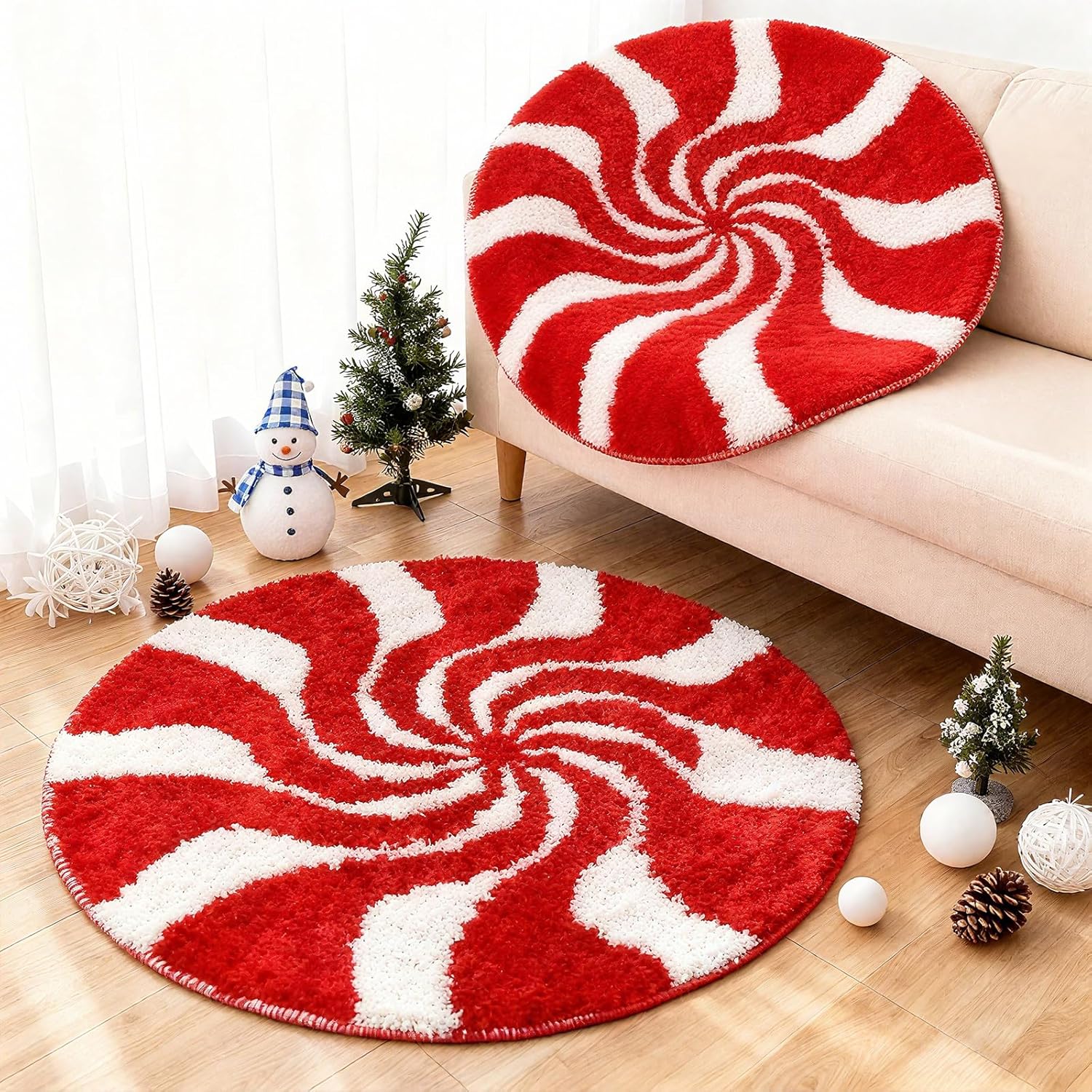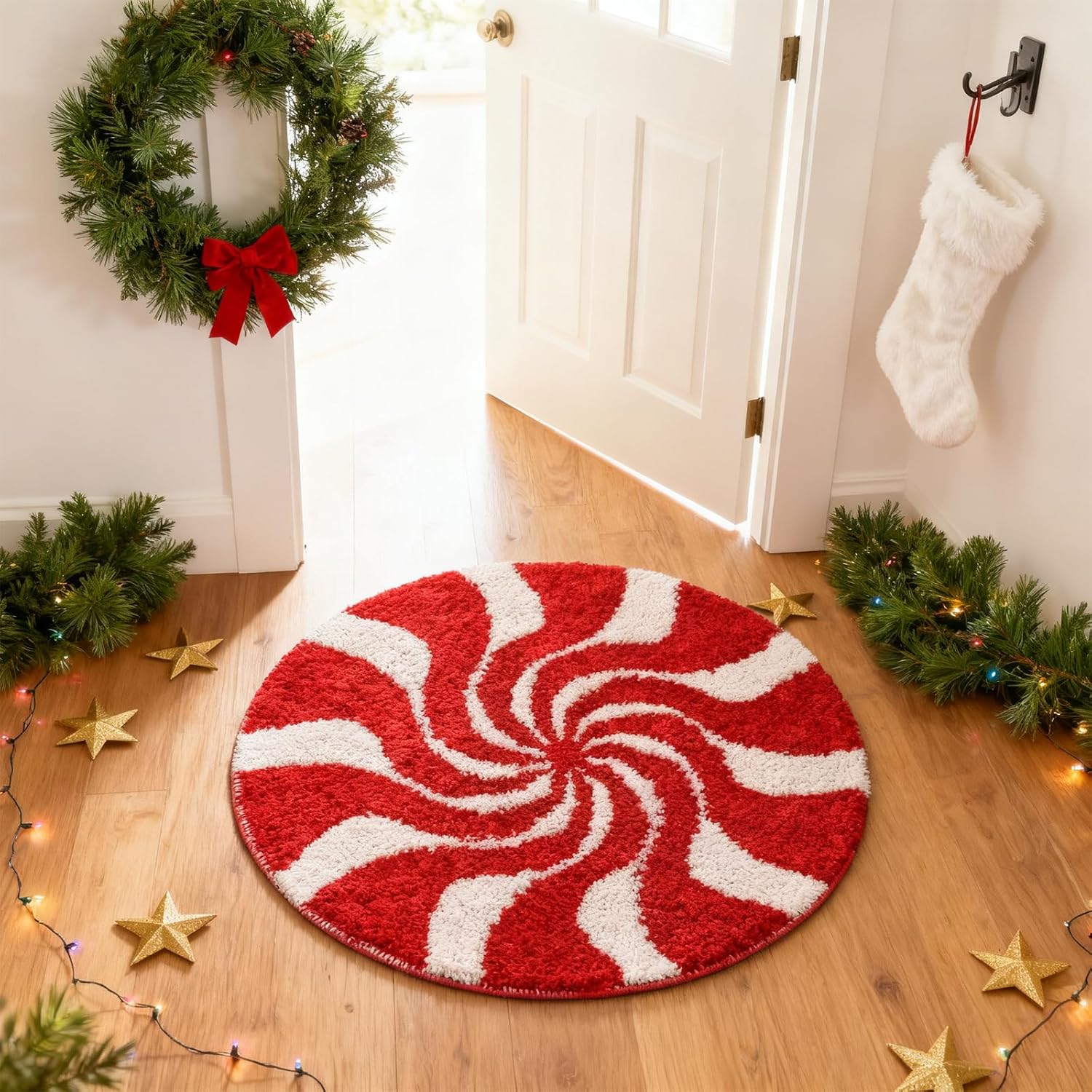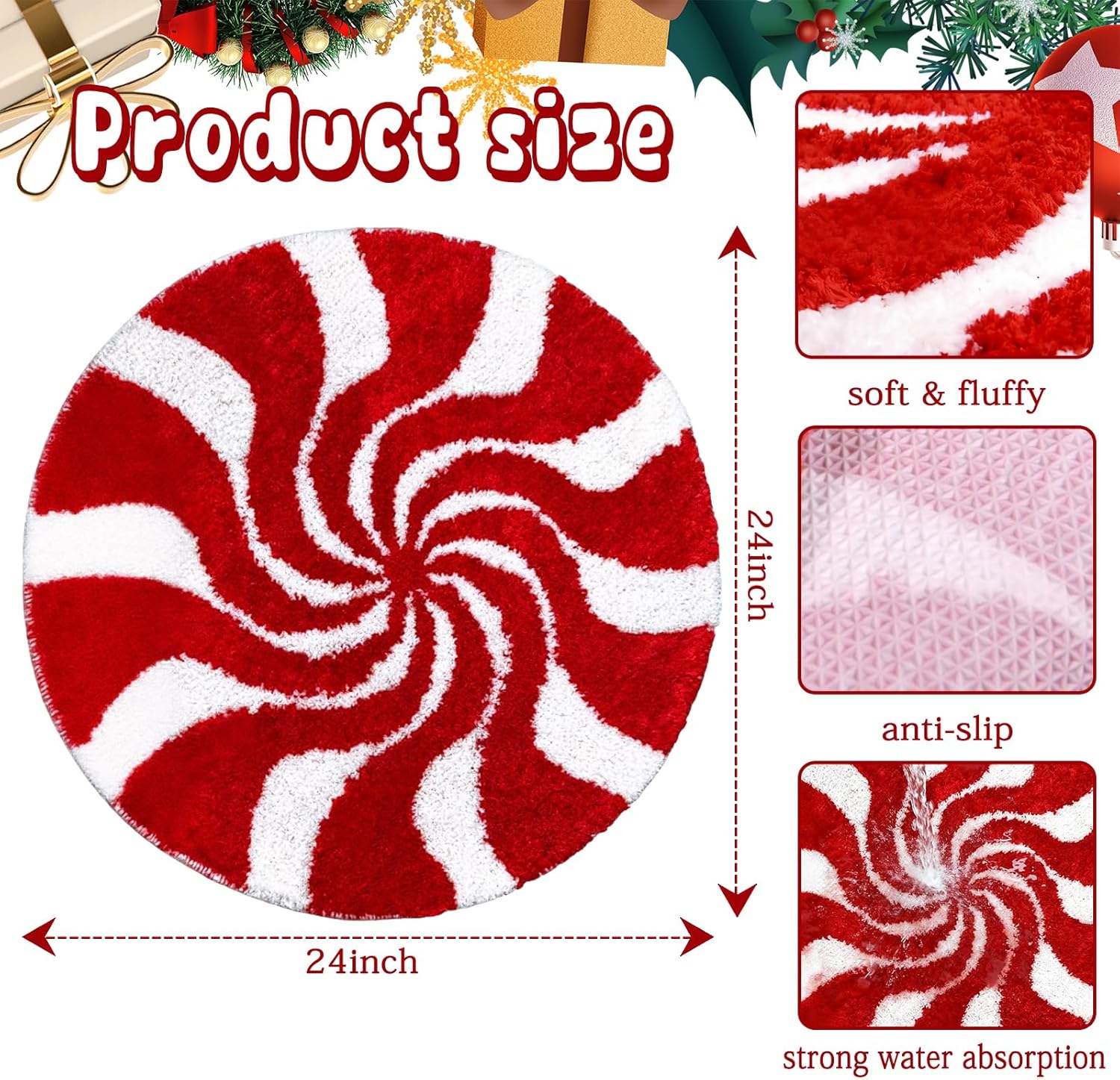 High Absorbency,Anti-Slip Safety:Made of soft tufted fabric with a TPR non-slip backing, our Christmas kitchen rug ensures excellent water absorption and secure footing. The round 24-inch design fits perfectly in front of the tub, sink, or vanity, providing both style and safety for your family during the holidays
