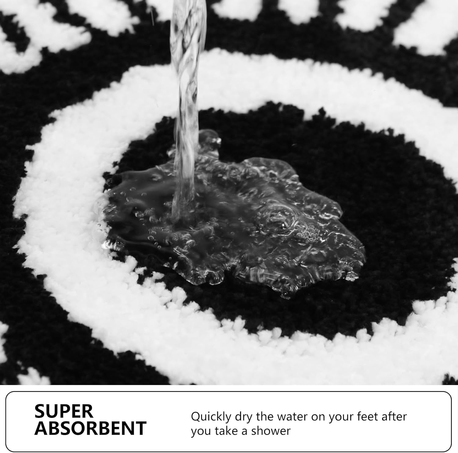 Ultra absorbente: el material de microfibra de la alfombrilla de baño absorbe rápidamente el agua de tus pies después de la ducha. Esta característica ayuda a salvar sus pisos de la humedad