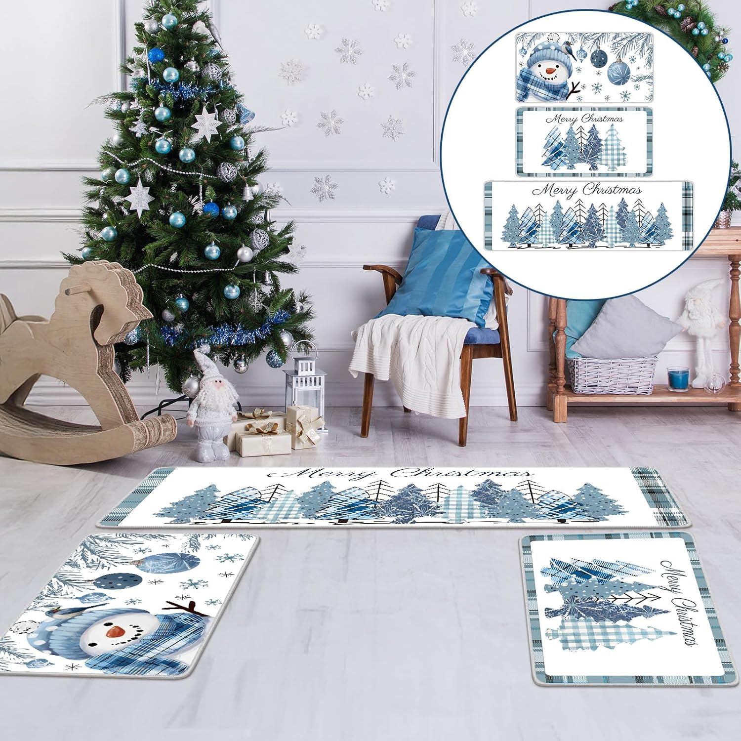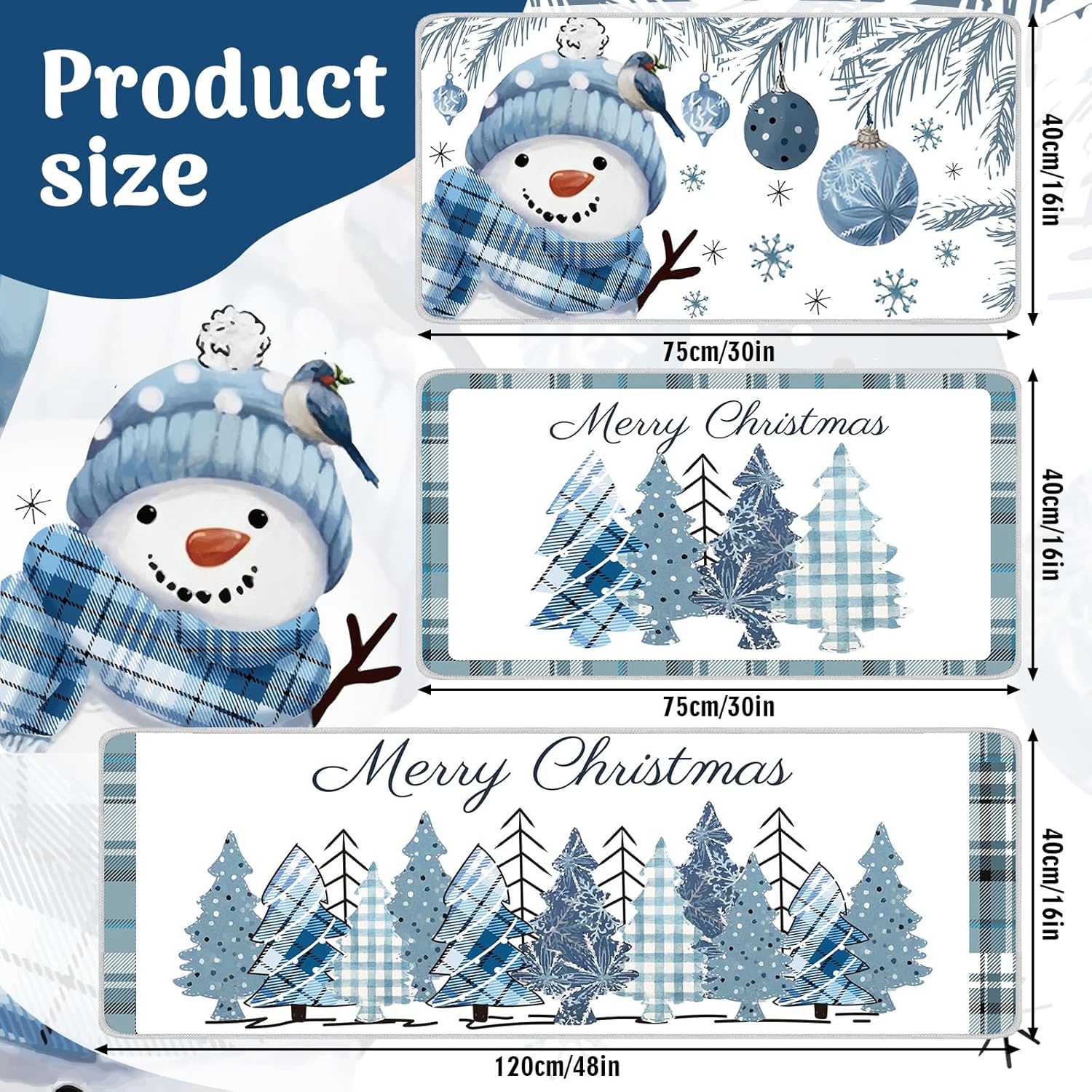 Juego de 3 tapetes de cocina de Feliz Navidad: este juego de 3 alfombras de cocina de Navidad ofrece un valor inigualable, agradable para uso personal o como un regalo conmovedor, estos tapetes de Navidad antifatiga para el suelo de la cocina añaden una decoración alegre y funcional, encarnando el espíritu de la temporada con alfombras de cocina azules