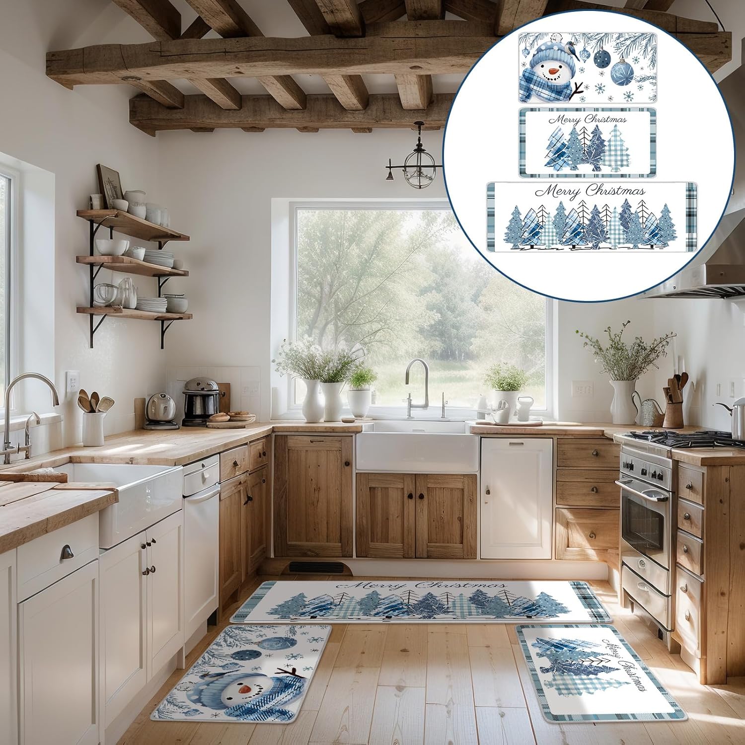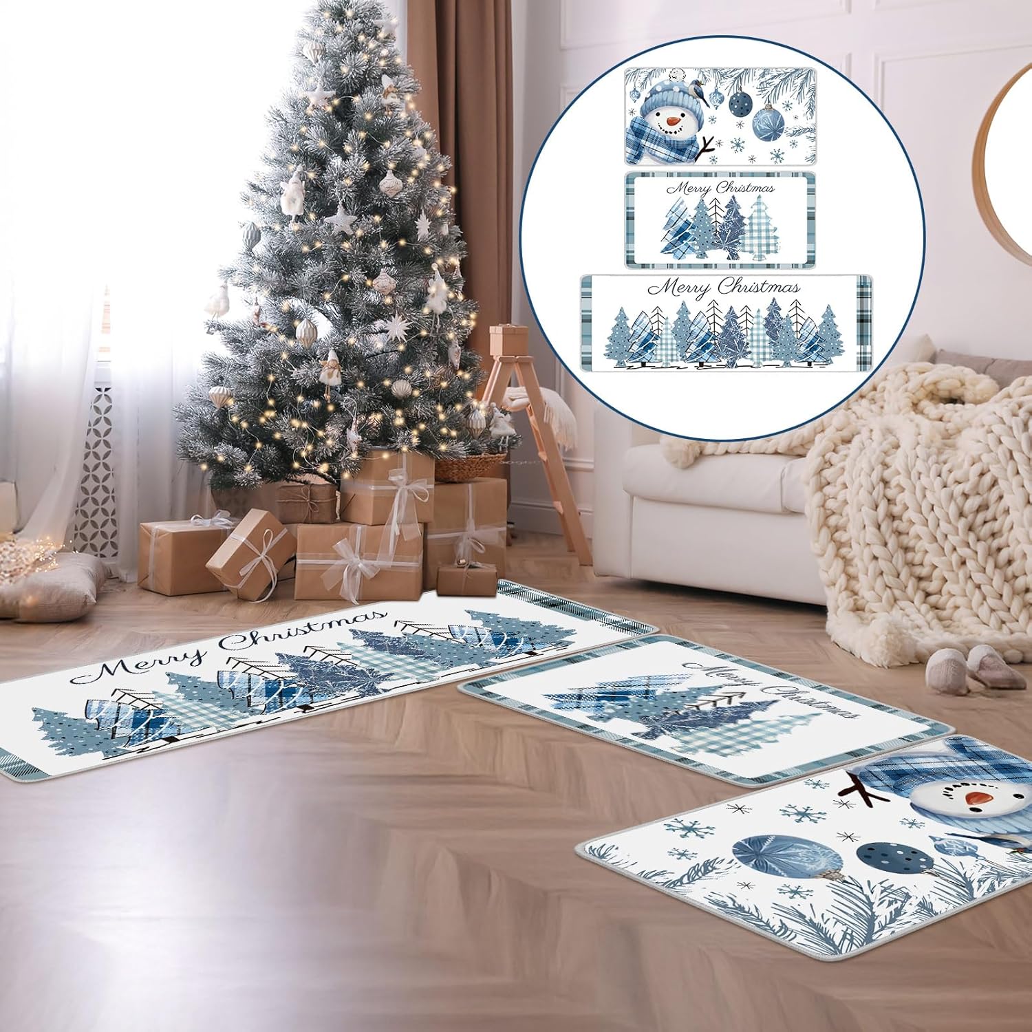 Encanto festivo y comodidad: transforma tu hogar en un país de las maravillas invernales con este encantador juego de alfombras de cocina de Navidad a