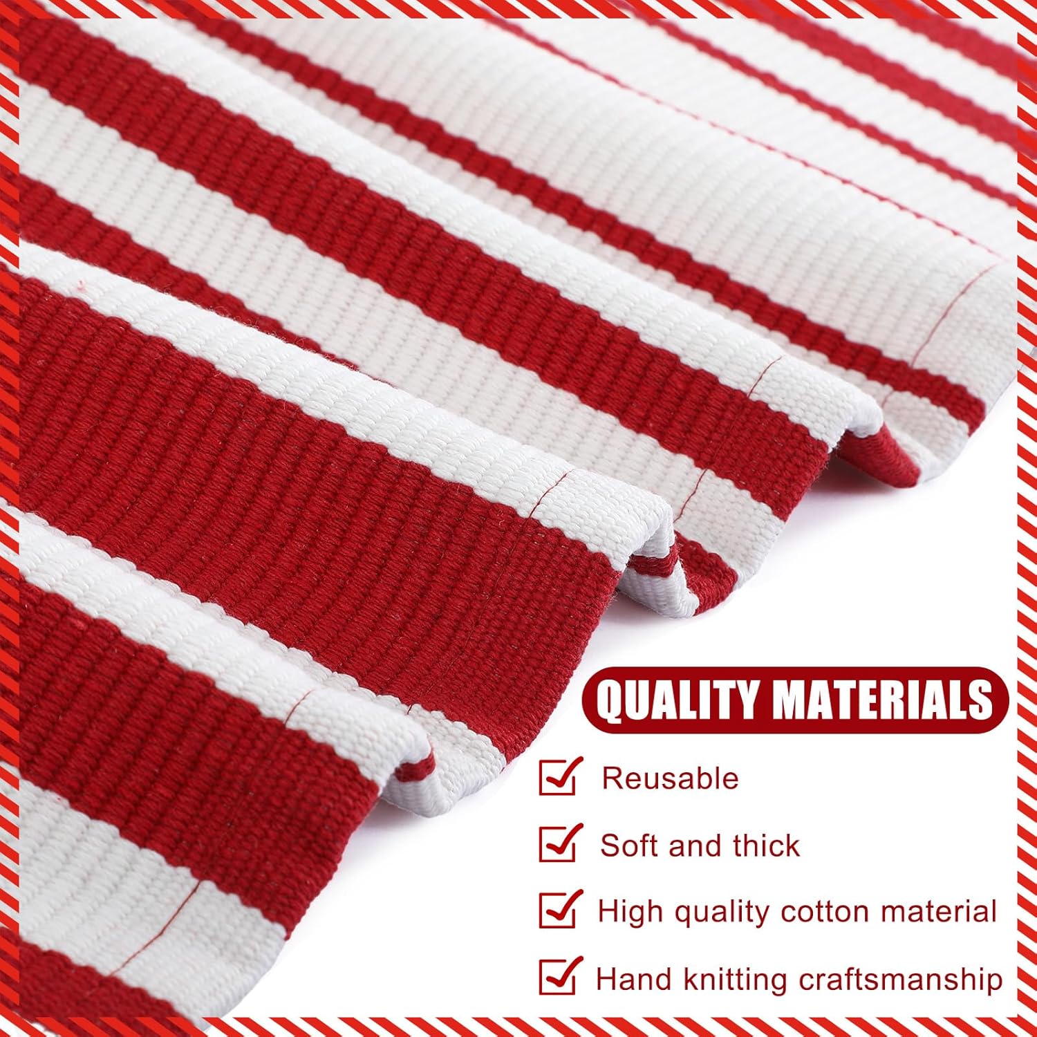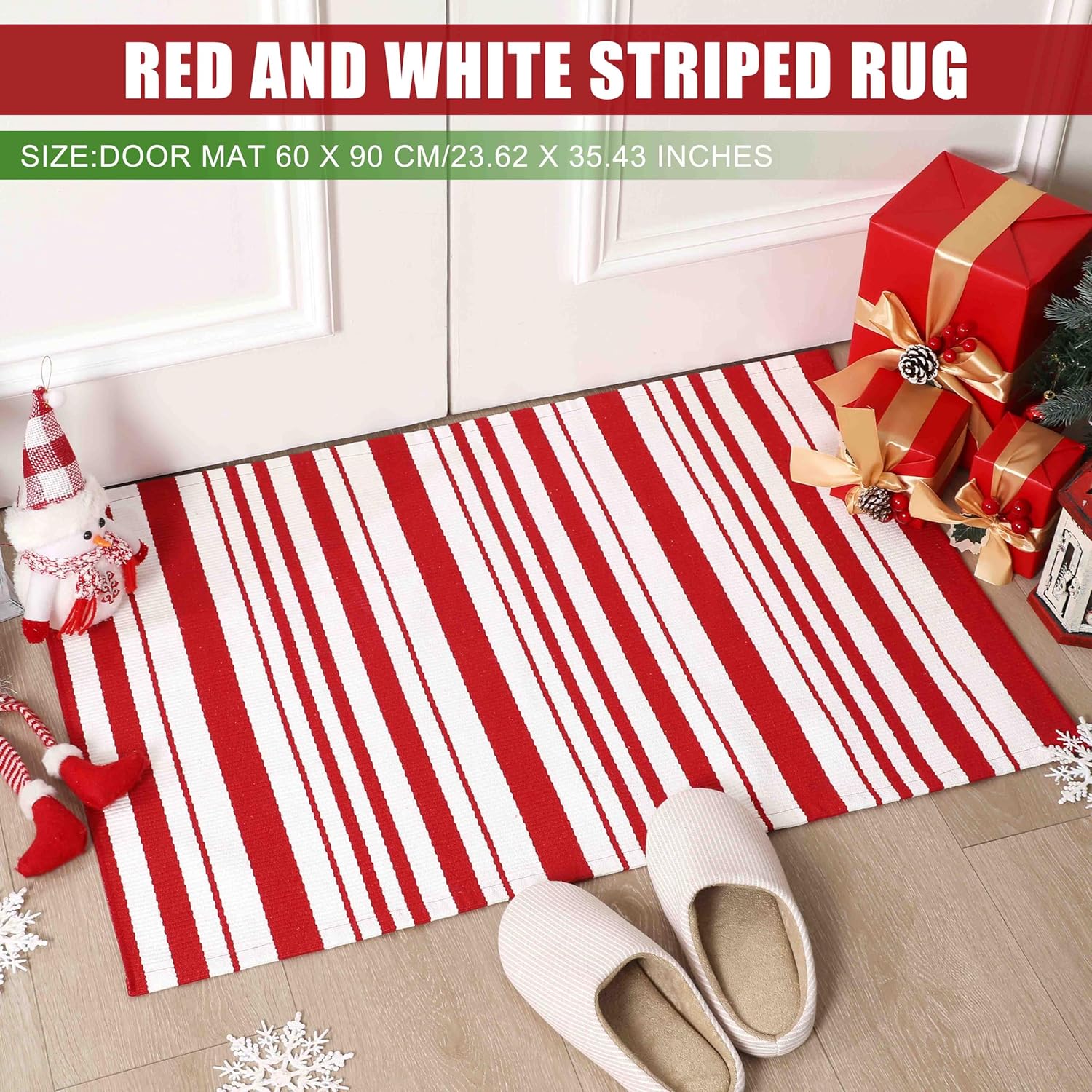 Recibirás: una alfombra de Navidad a rayas rojas y blancas cuenta con un diseño moderno y clásico, combina fácilmente con varios estilos de decoración; es una manera ideal de mejorar la decoración de Navidad, casa de campo y campo.