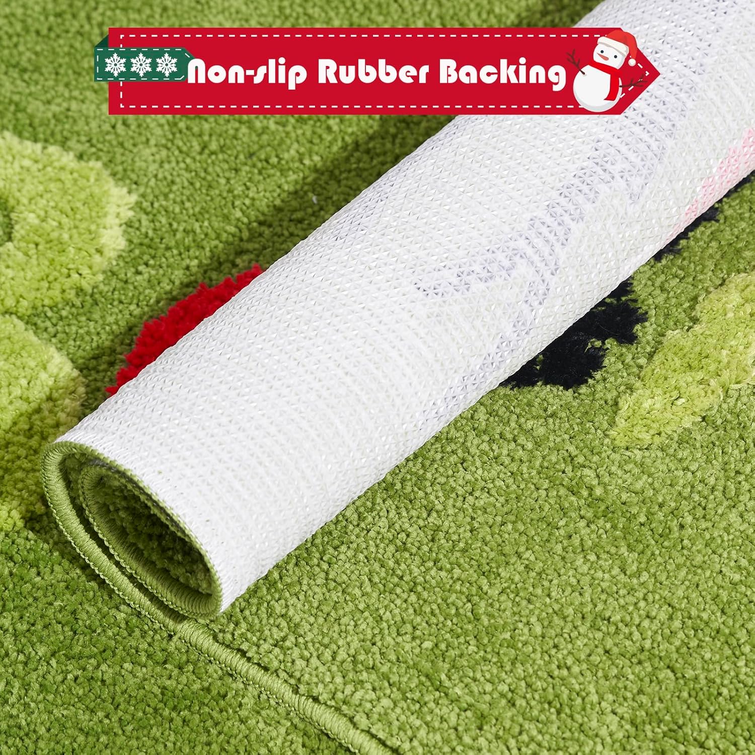 Paleta de colores festivos: con vibrantes colores navideños, esta alfombra de Navidad complementa tu decoración navideña sin esfuerzo, añadiendo un toque cálido y acogedor a cualquier habitación.