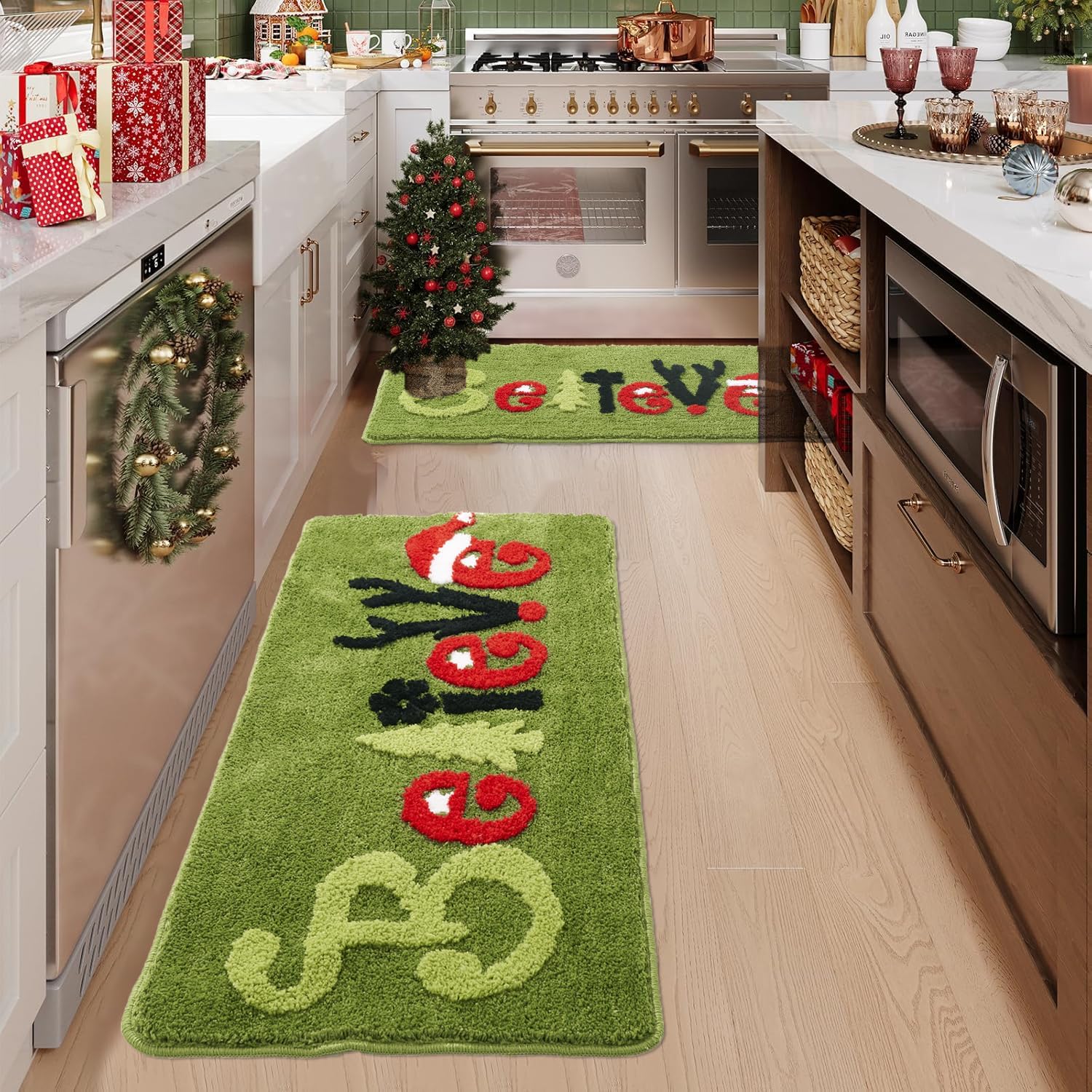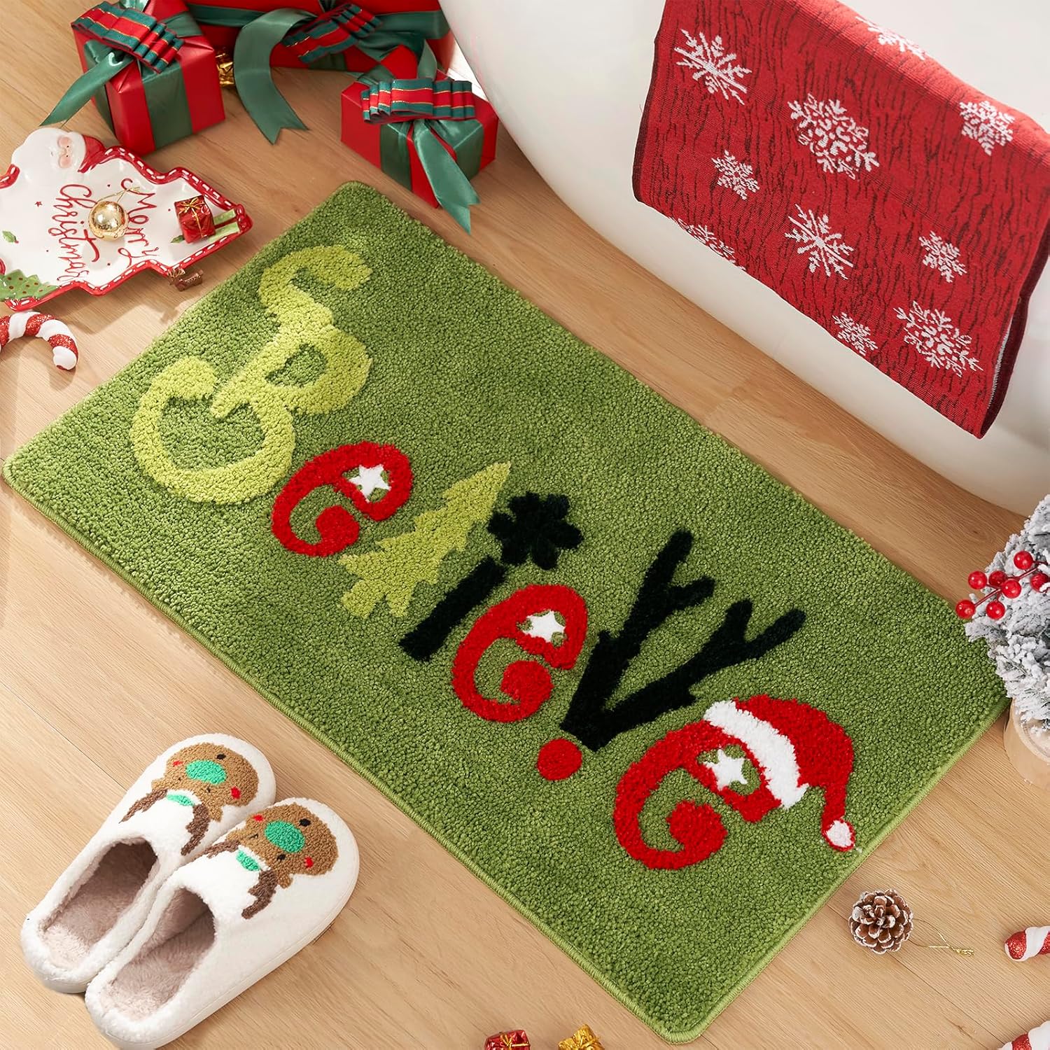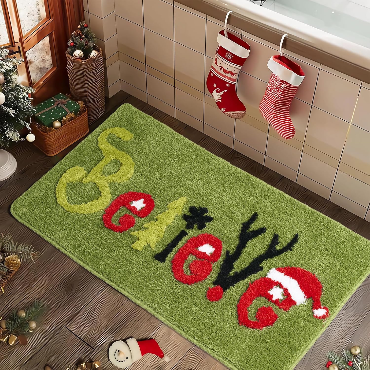 Mensaje inspirador para las fiestas: difunde el espíritu de la temporada con un tapete que cuenta con la palabra edificante “Believe” en un guión elegante.