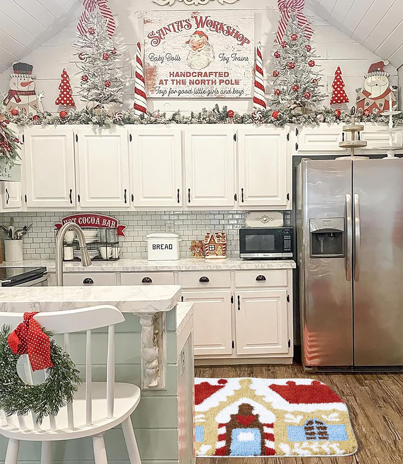 Una decoración perfecta para casa de jengibre. Esta novedosa alfombra de Navidad se puede utilizar como una bonita alfombra de baño de Navidad, alfombra de cocina retro de Navidad, pequeña alfombra de decoración de dormitorio de Navidad, entrada interior de Navidad / felpudo Regalo único de Navidad.