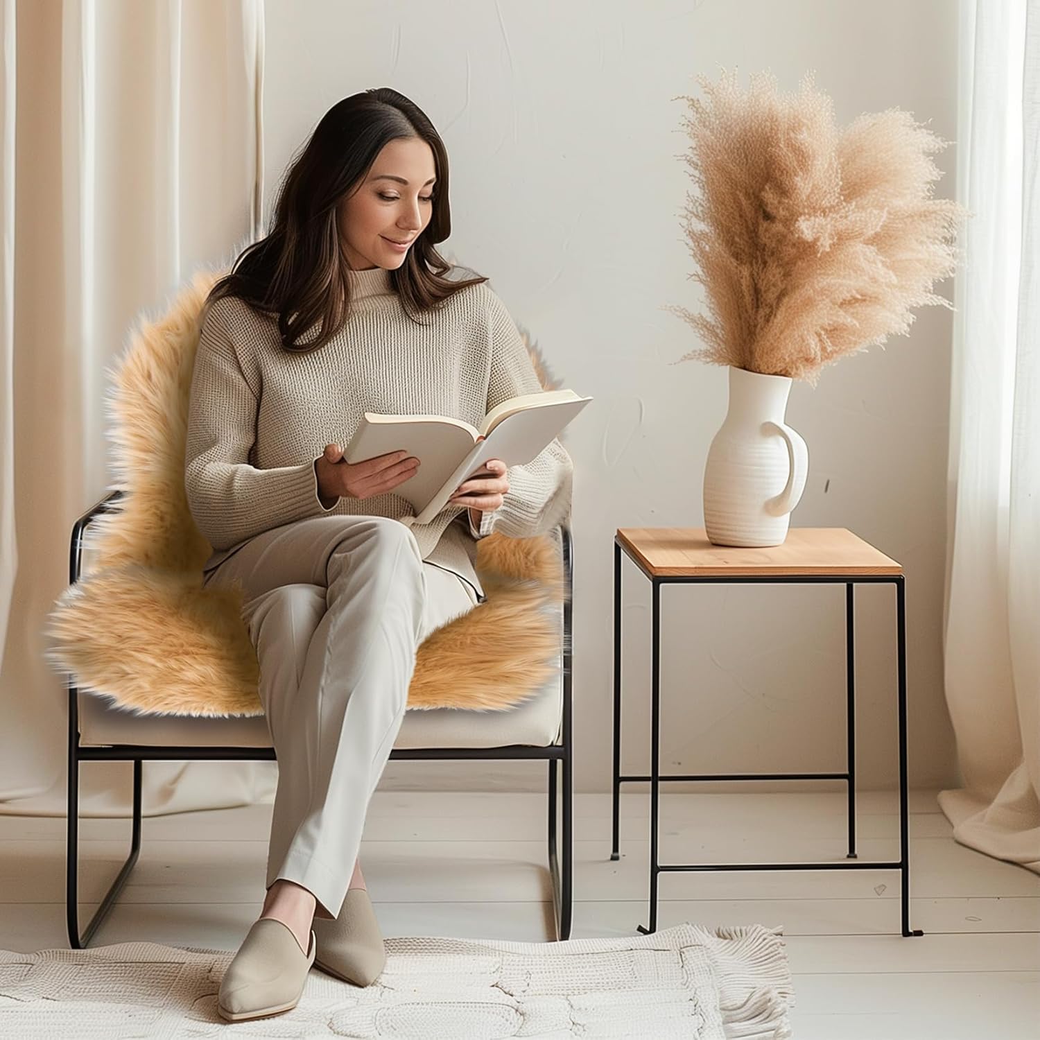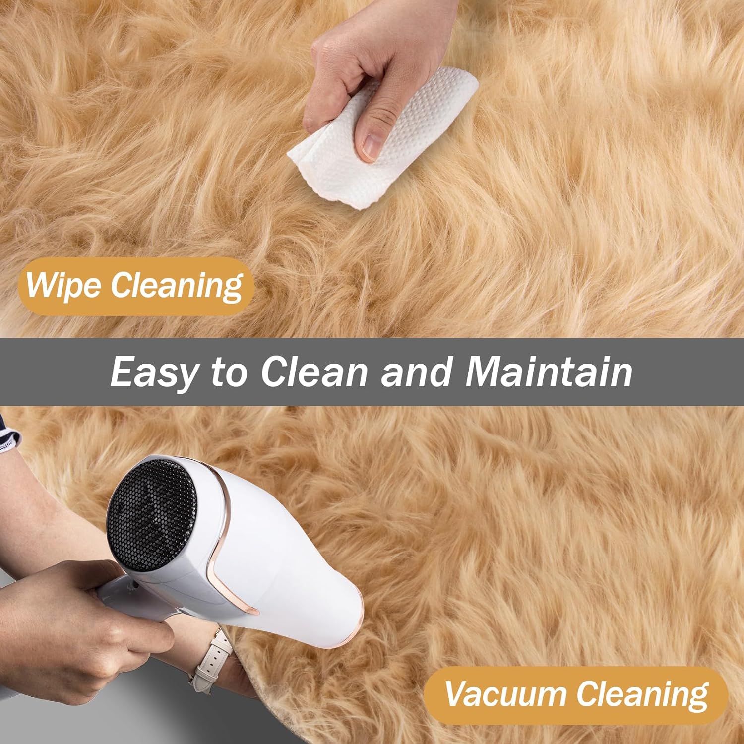 Easy to clean: When cleaning dust, you can use a small vacuum cleaner to vacuum. Faux sheepskin rug can be rinsed with clean water, dried promptly, and then blown along the fur with a hair dryer until it has a fluffy appearance, combing it with a comb if necessary