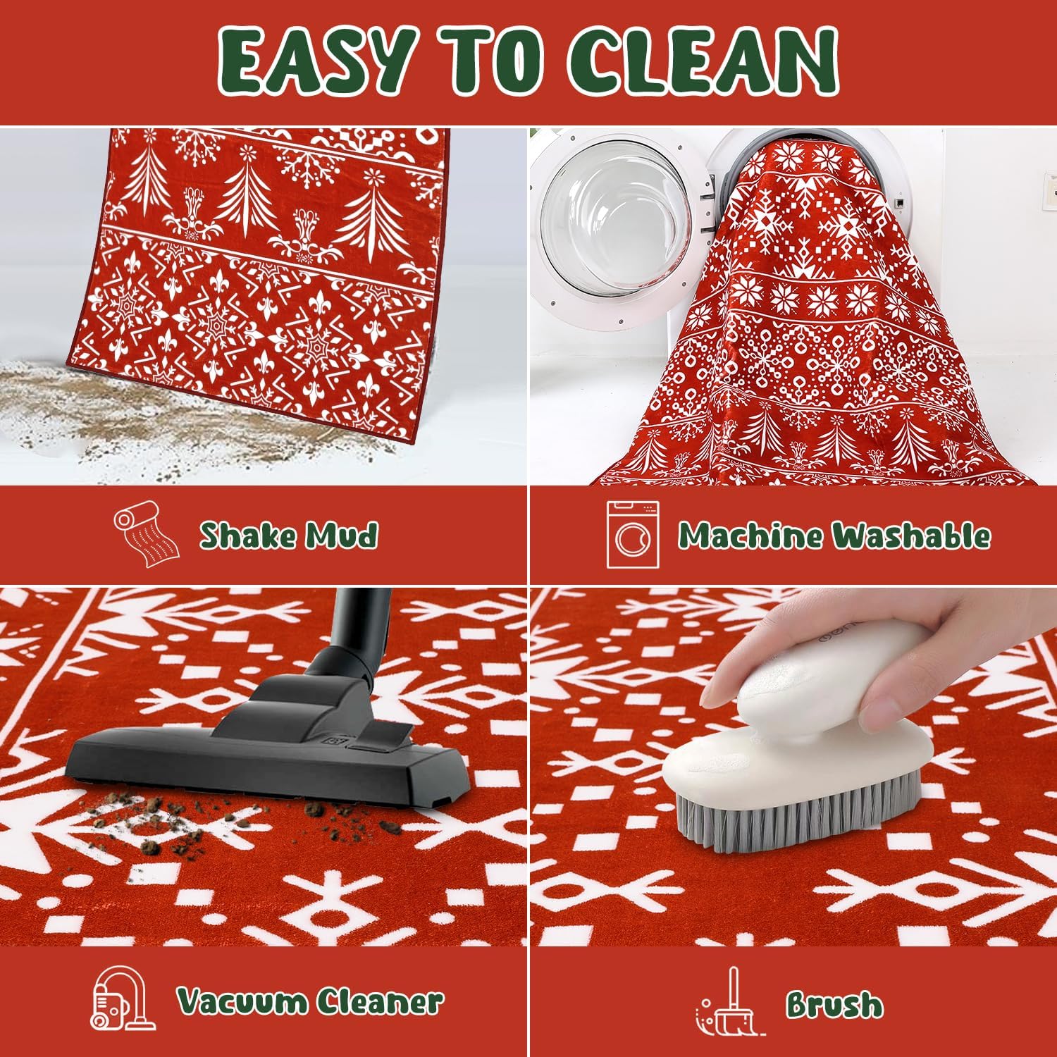 Alfombra lavable a máquina: este tapete de Navidad está diseñado para soportar múltiples lavados sin decoloración ni desprendimiento, asegurando que permanezca vibrante y duradero. Su fácil mantenimiento lo hace ideal para hogares ocupados, lo que permite una reutilización conveniente mientras conserva sus llamativos colores y calidad. Perfecto para la vida cotidiana