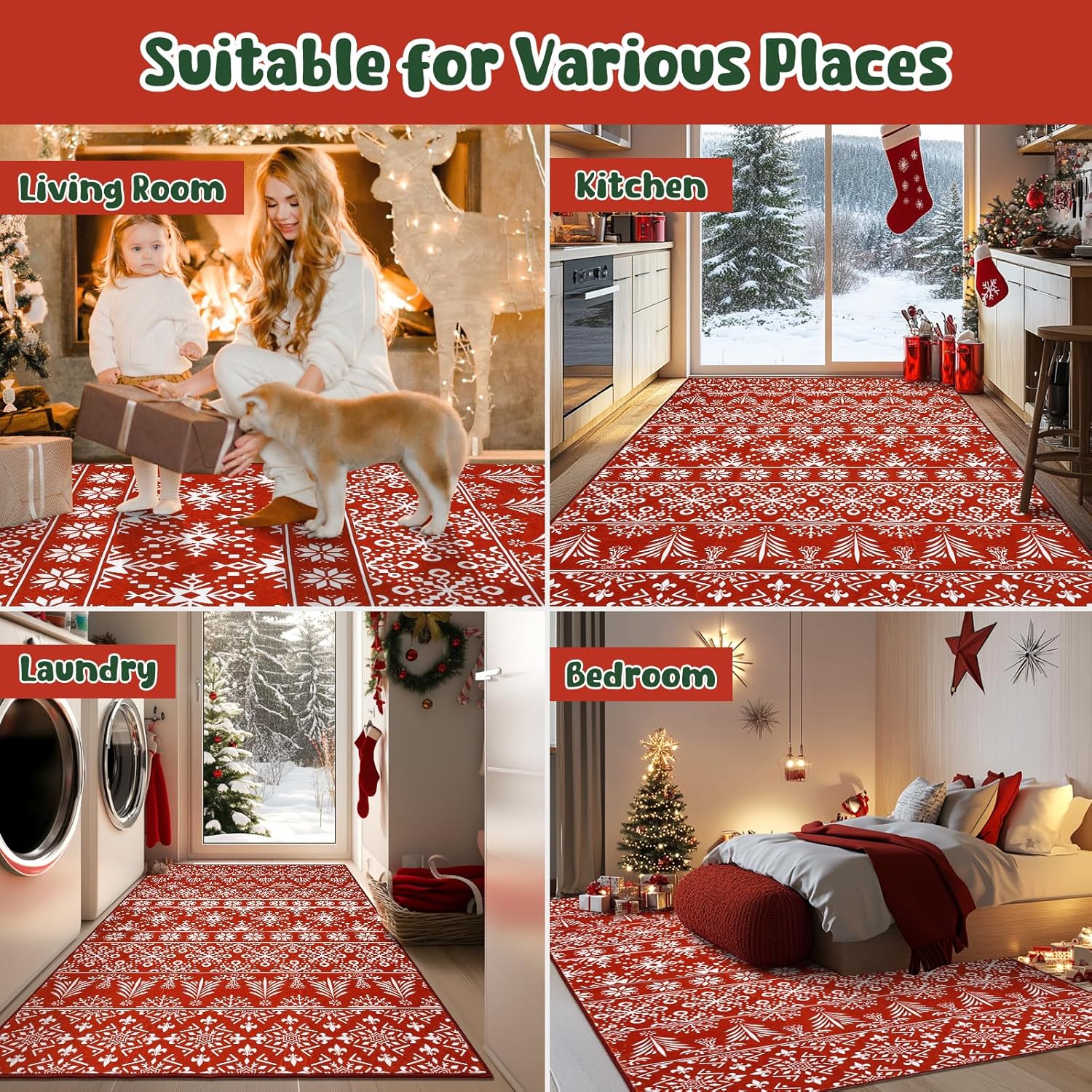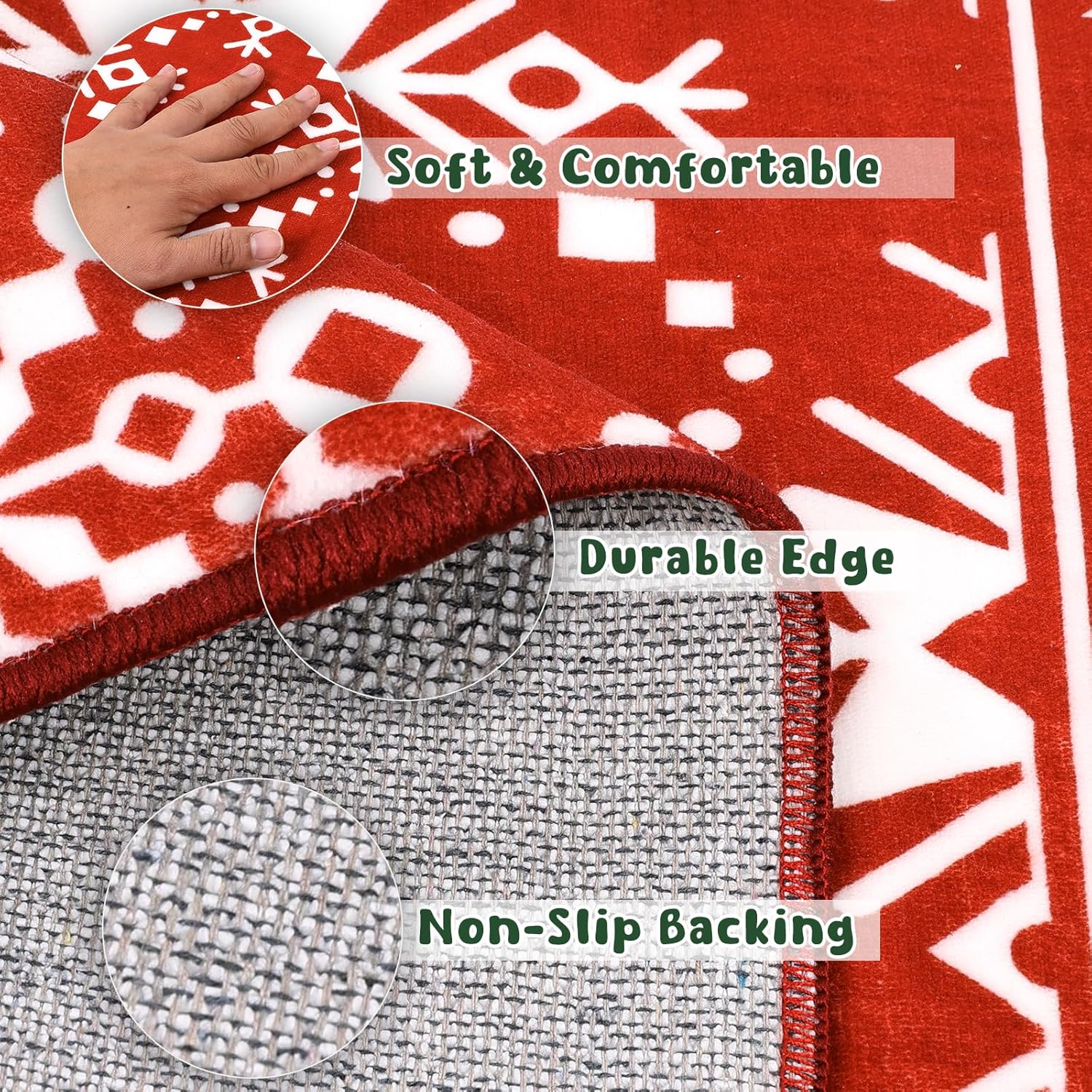 Alfombra antideslizante y segura: con una parte trasera de goma TPR antideslizante duradera, esta alfombra de Navidad para dormitorio garantiza la estabilidad en varias superficies del suelo, reduciendo el riesgo de resbalones y caídas. Ideal para hogares con niños y mascotas, proporcionando un ambiente seguro y seguro