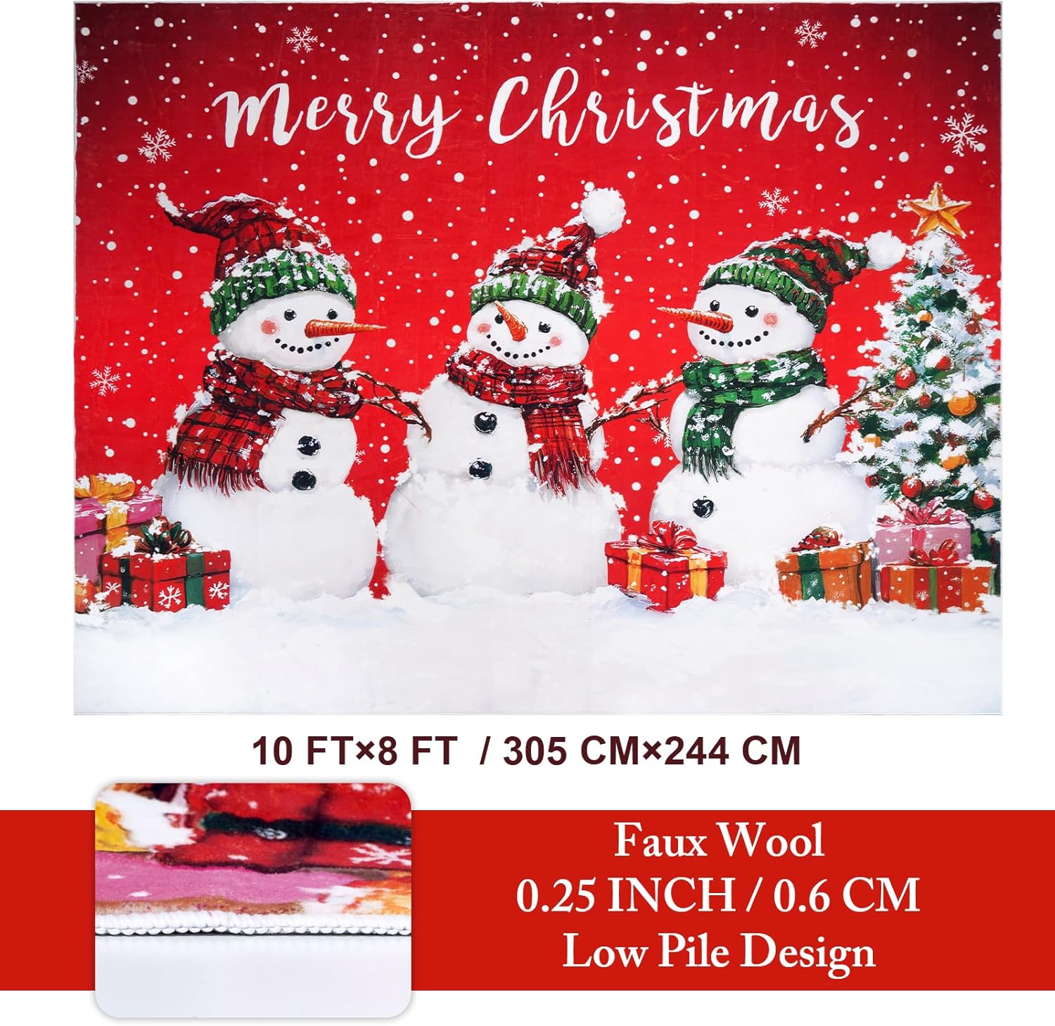 Diseño de muñeco de nieve navideño: nuestra alfombra de Navidad de 8 x 10 (aprox. 25.4 cm) está diseñada con 3 muñecos de nieve y árboles de Navidad. Esta encantadora alfombra roja seguramente infundirá tu espacio con el espíritu alegre de la temporada navideña.