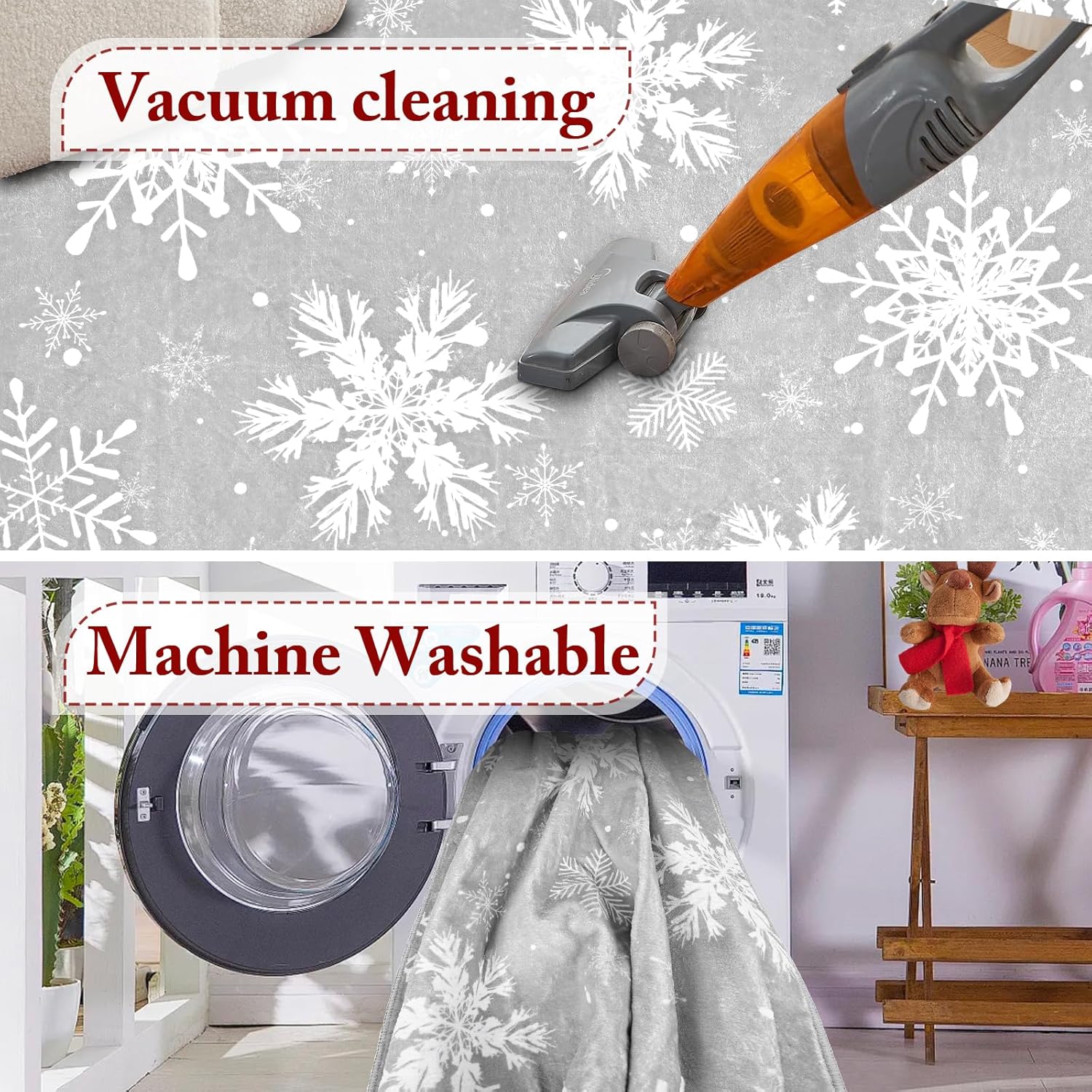 Alfombras lavables: los tapetes de Navidad con copos de nieve en el exterior se pueden lavar a máquina, aspirar, escoba o espolvorear. El mantenimiento diario es fácil y conveniente, el polvo y la suciedad en la superficie se pueden quitar fácilmente