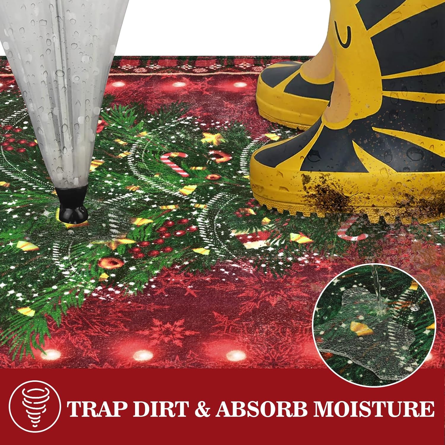Antideslizante: la alfombra de Navidad para dormitorio está hecha de goma TPR antideslizante, esta alfombra se mantiene firmemente en su lugar en laminado, madera y otras superficies lisas del suelo, reduciendo el riesgo de resbalones y caídas mientras protege tus suelos de arañazos