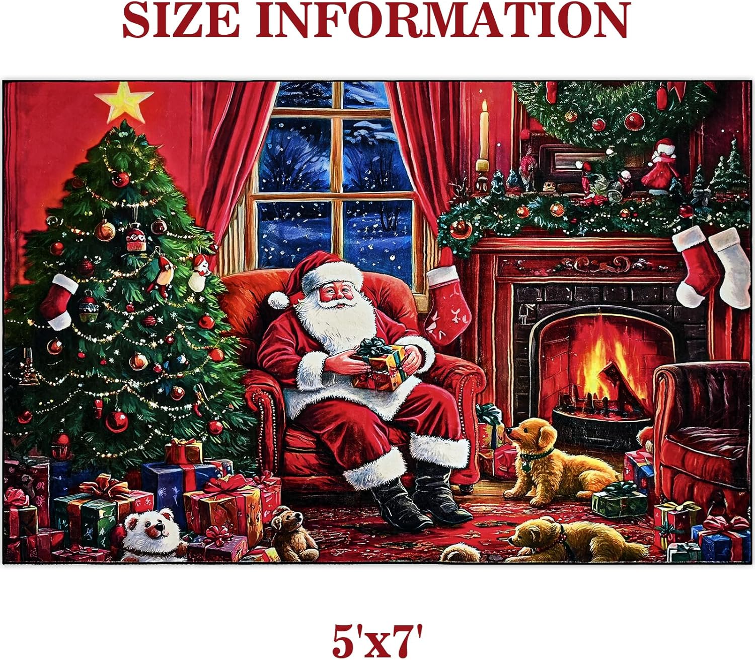 Tamaño: nuestras alfombras de Navidad miden 5 x 7 (aprox. 213.4 cm) y cuentan con un grosor de 0.3 (aprox. 0.8 cm) con bordes reforzados overlock. Adecuado para salas de estar, dormitorios, habitaciones de niños y oficina, puede mejorar la calidez y comodidad del hogar
