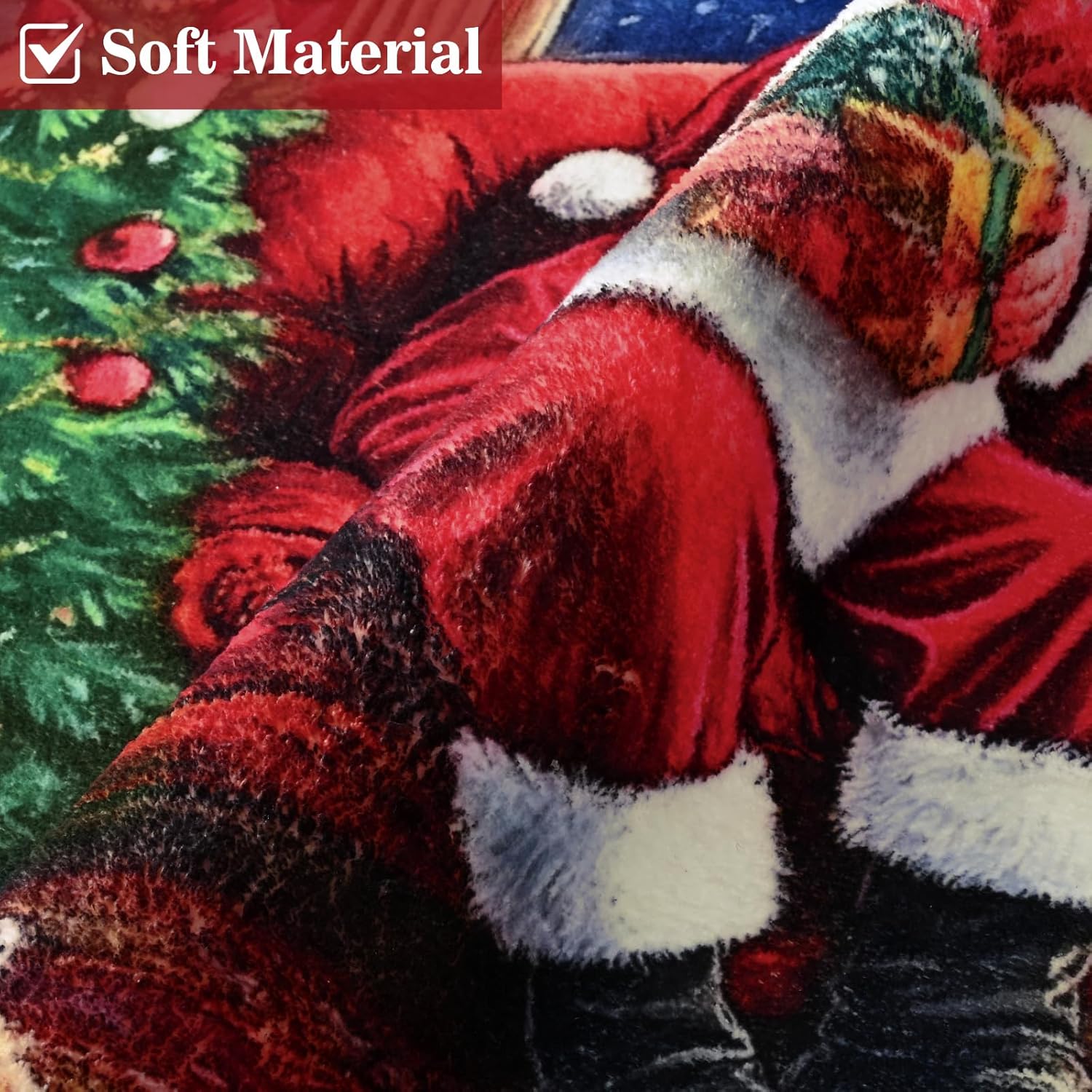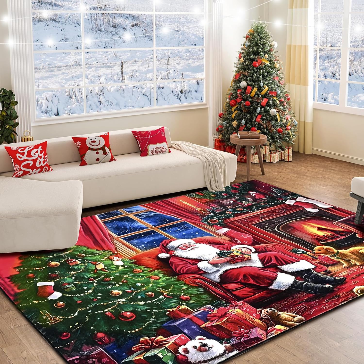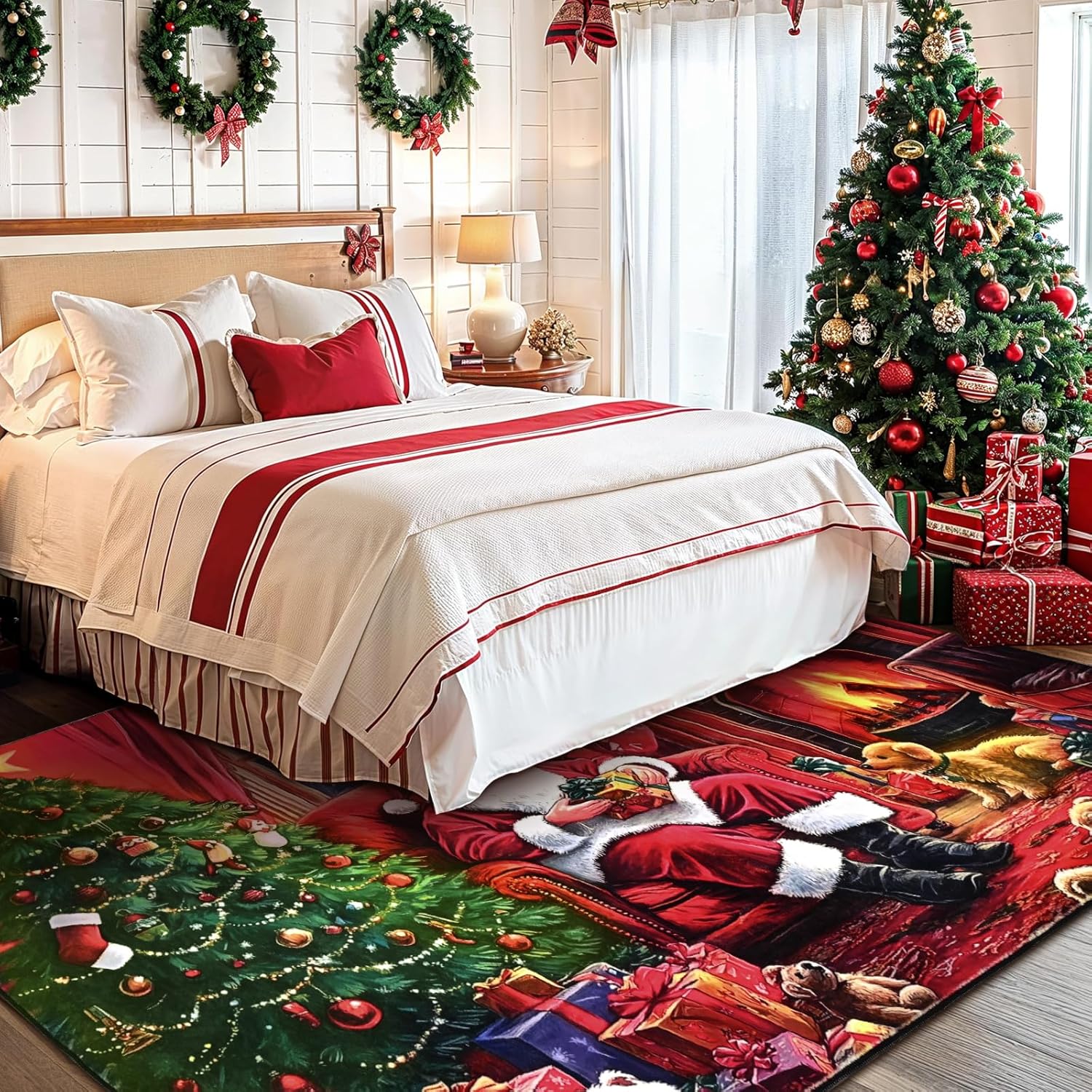 Alfombra de Navidad: nuestra alfombra de estilo navideño está impresa con patrones de Papá Noel y árbol de Navidad, añade un toque festivo a cualquier espacio, por lo que es una opción ideal para decorar tu hogar durante la temporada de vacaciones