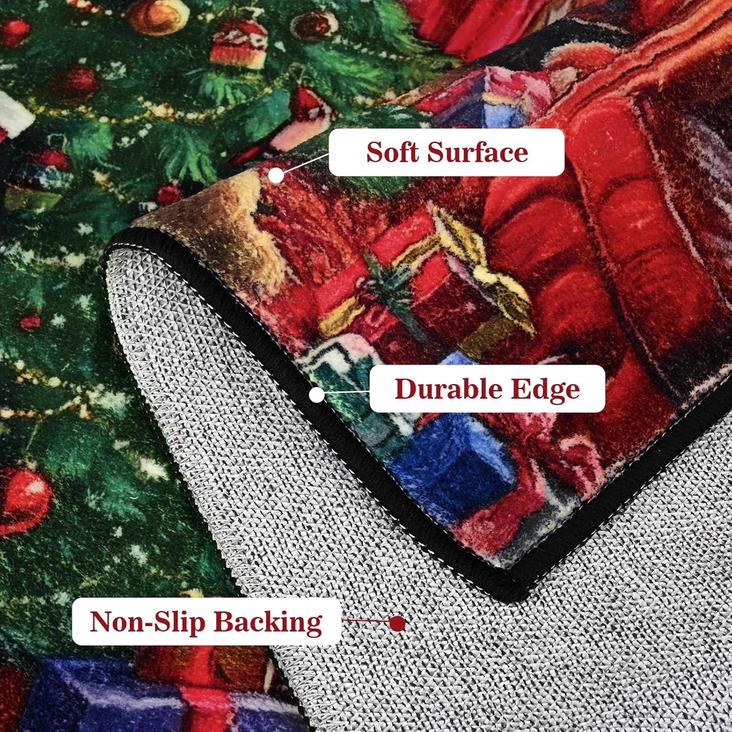 Antideslizante: la alfombra de Navidad para dormitorio está hecha de goma TPR antideslizante, esta alfombra se mantiene firmemente en su lugar en laminado, madera y otras superficies lisas del suelo, reduciendo el riesgo de resbalones y caídas mientras protege tus suelos de arañazos