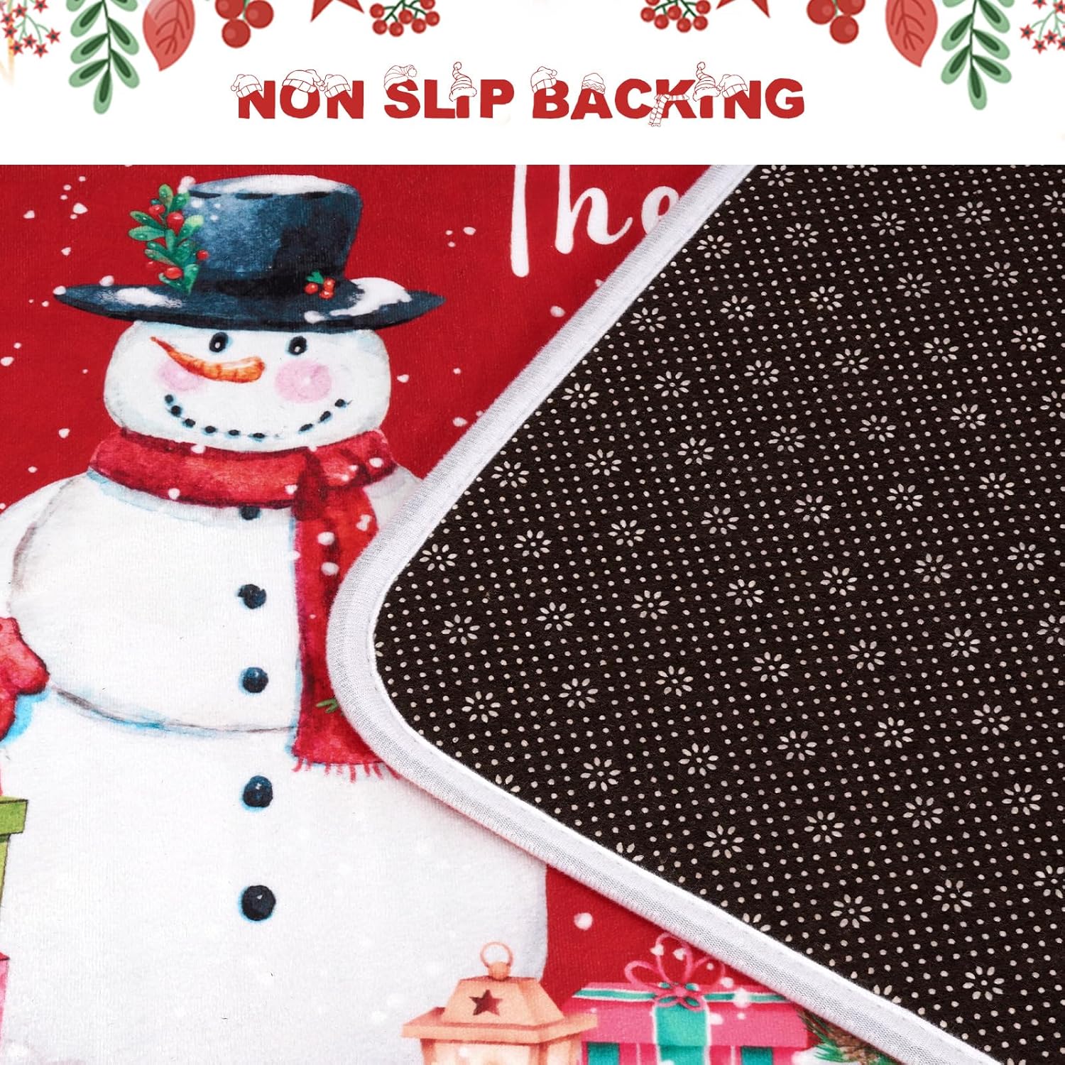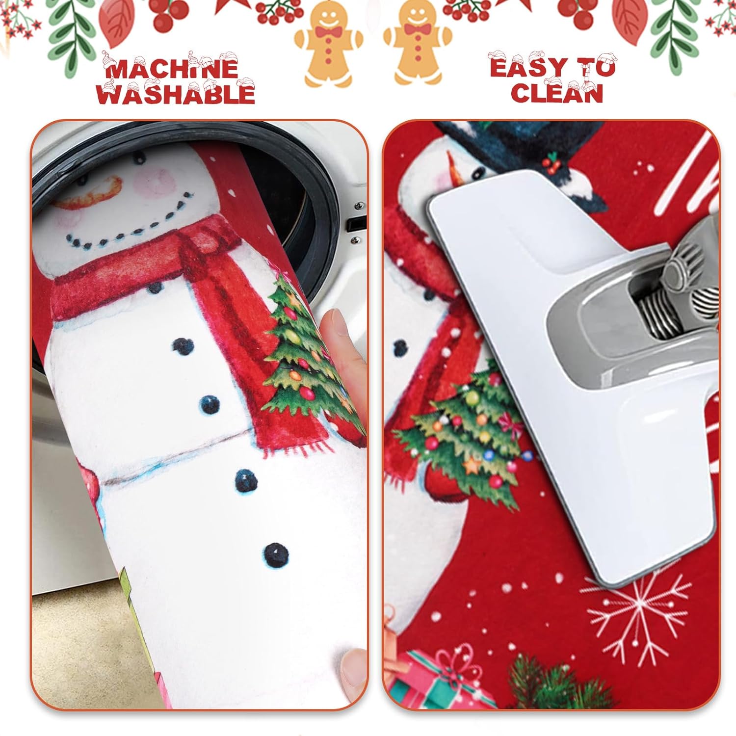 Suave y cómodo: estas alfombras de cocina de Navidad de muñeco de nieve rojo antideslizantes y lavables proporcionan un apoyo suave para ayudar a mejorar la circulación y para garantizar que puedas estar de pie cómodamente mientras trabajas en la cocina o lavandería.
