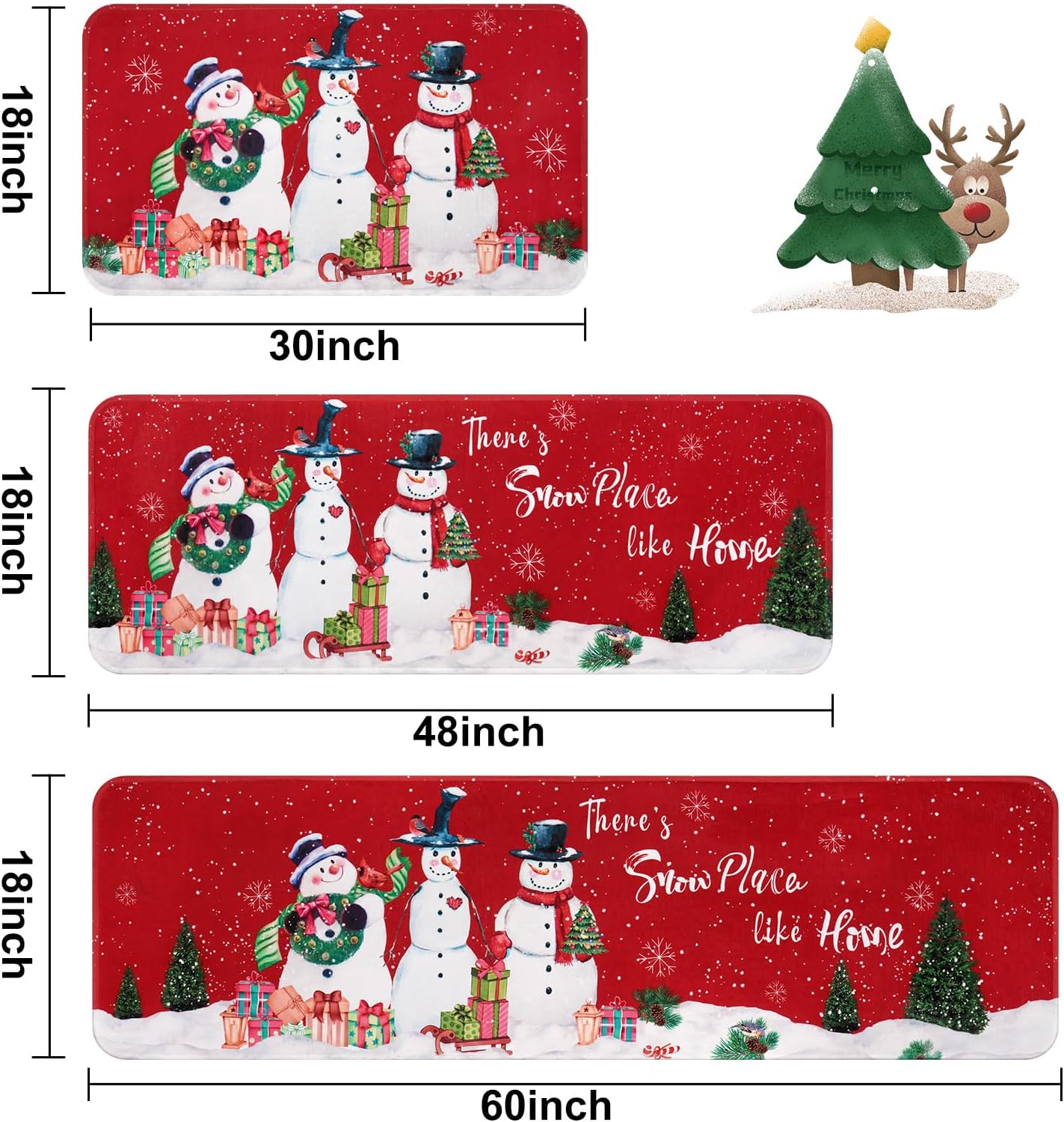 Juego de alfombras de Navidad: el juego de 3 alfombras de cocina de Navidad mide el tamaño de 60 x 18 (aprox. 45.7 cm) + 48 x 18 (aprox. 45.7 cm) + 30 x 18 (aprox. 45.7 cm). Los tapetes de cocina de nieve de invierno acolchados antifatiga hacen que sea del tamaño adecuado para la mayoría de las áreas del hogar, se pueden utilizar para satisfacer diferentes necesidades, funcionarán bien con tu familia