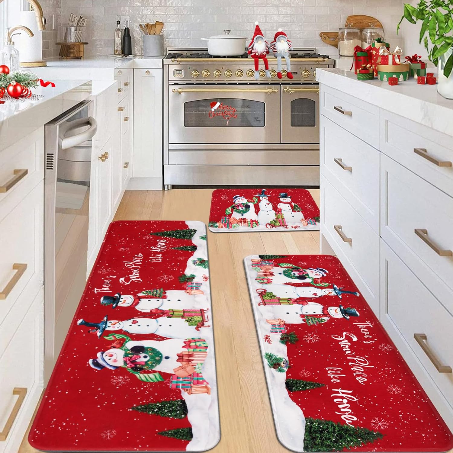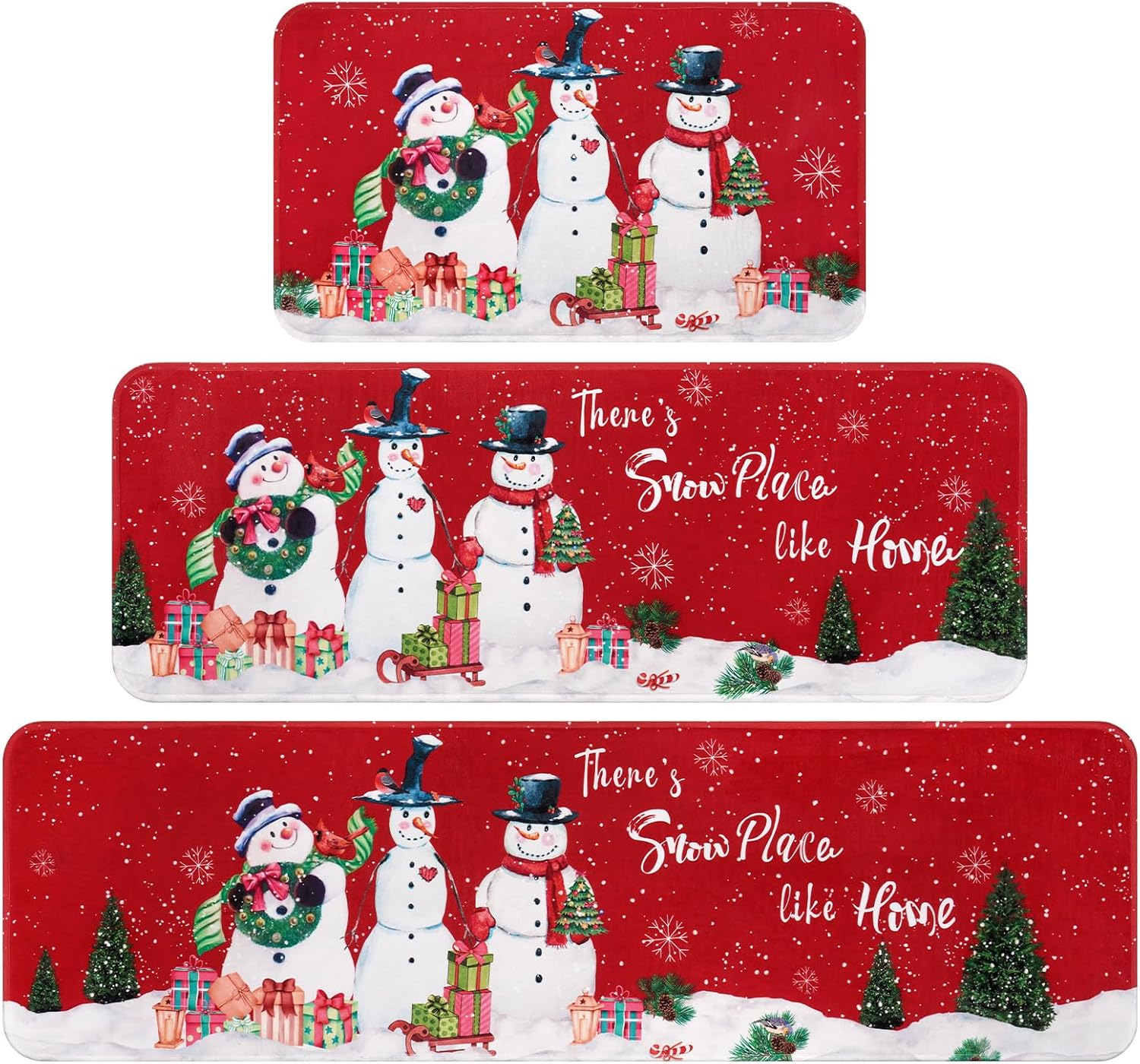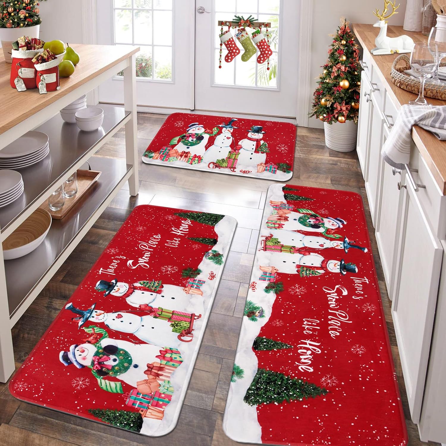 FRAMICS Tapete de cocina de Navidad, 3 unidades, diseño de muñeco de nieve de invierno, para el suelo de la cocina, alfombras de cocina de árbol de Navidad, antideslizantes, lavables, decoraciones de