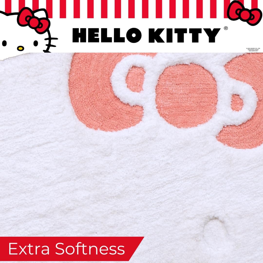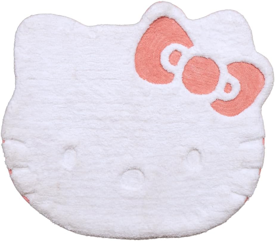 Diseño Hello Kitty: aporta un toque de encanto a tu espacio con nuestra alfombra de Hello Kitty. Con forma de cara icónica de Hello Kitty con su característico lazo rosa, esta alfombra suave y adorable añade estilo y funcionalidad a cualquier habitación para un ambiente divertido y acogedor.