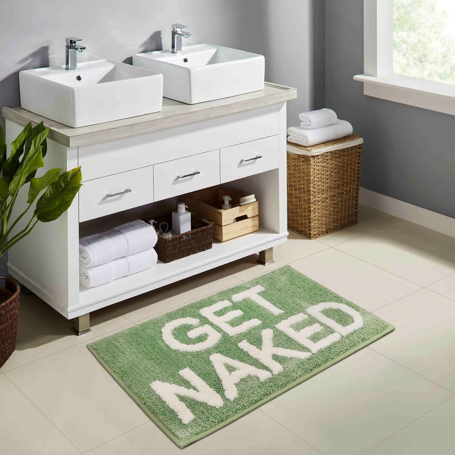 Get Naked Rug – Alfombra de baño antideslizante y absorbente de 17 x 24 pulgadas, alfombra de baño lavable a máquina para lavabo de baño, ducha, color verde