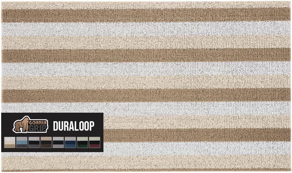 Gorilla Grip Premium Loop alfombra de gran tamaño, suave, decorativa, a rayas, con parte trasera resistente, con cerdas trenzadas, para entrada, para interiores y exteriores, fácil de limpiar