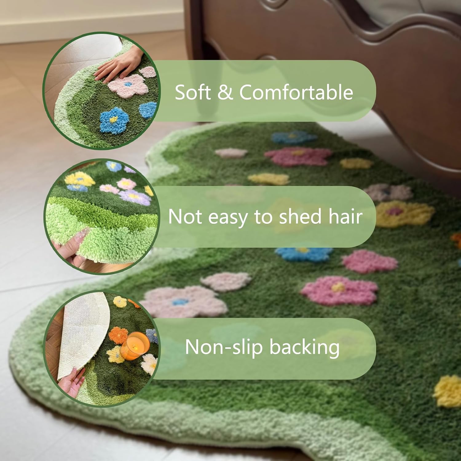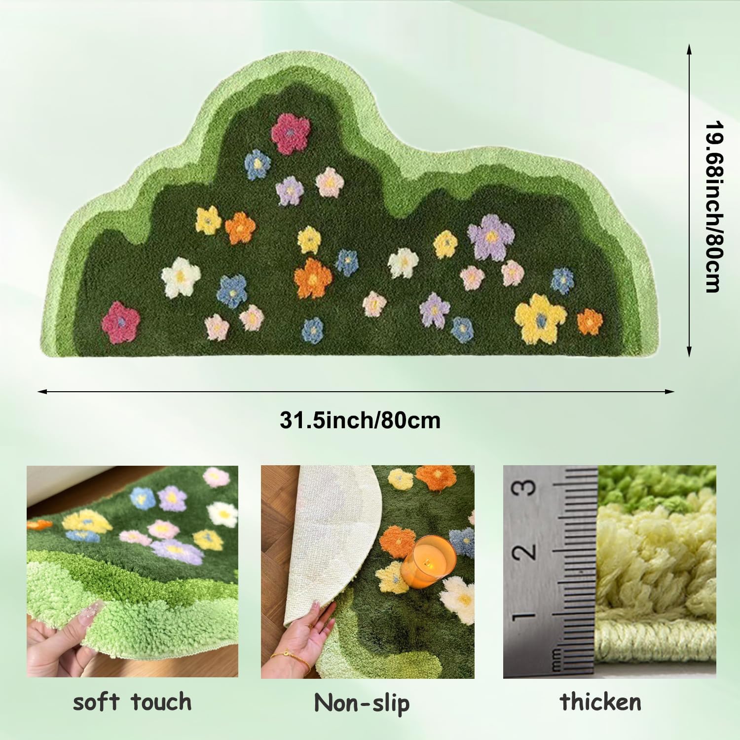 【Material Composition】This moss carpet is made of thickened ultra-fine fiber wool, which has a soft touch. It has anti fading properties and can maintain its appearance for a long time in daily use, reducing the trouble of frequent replacement.