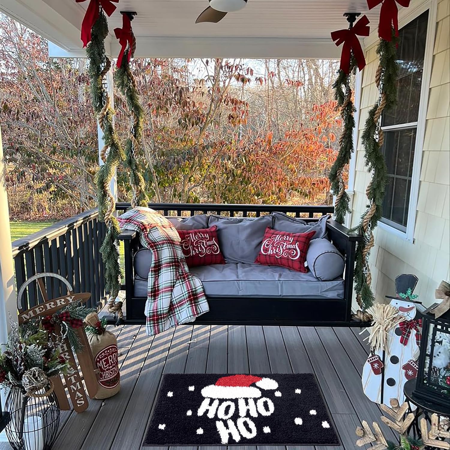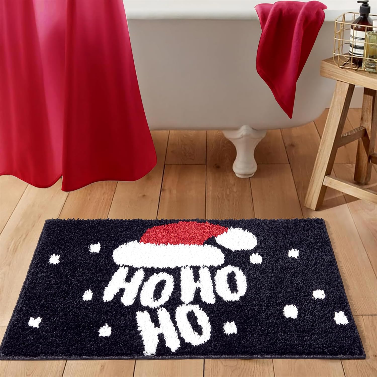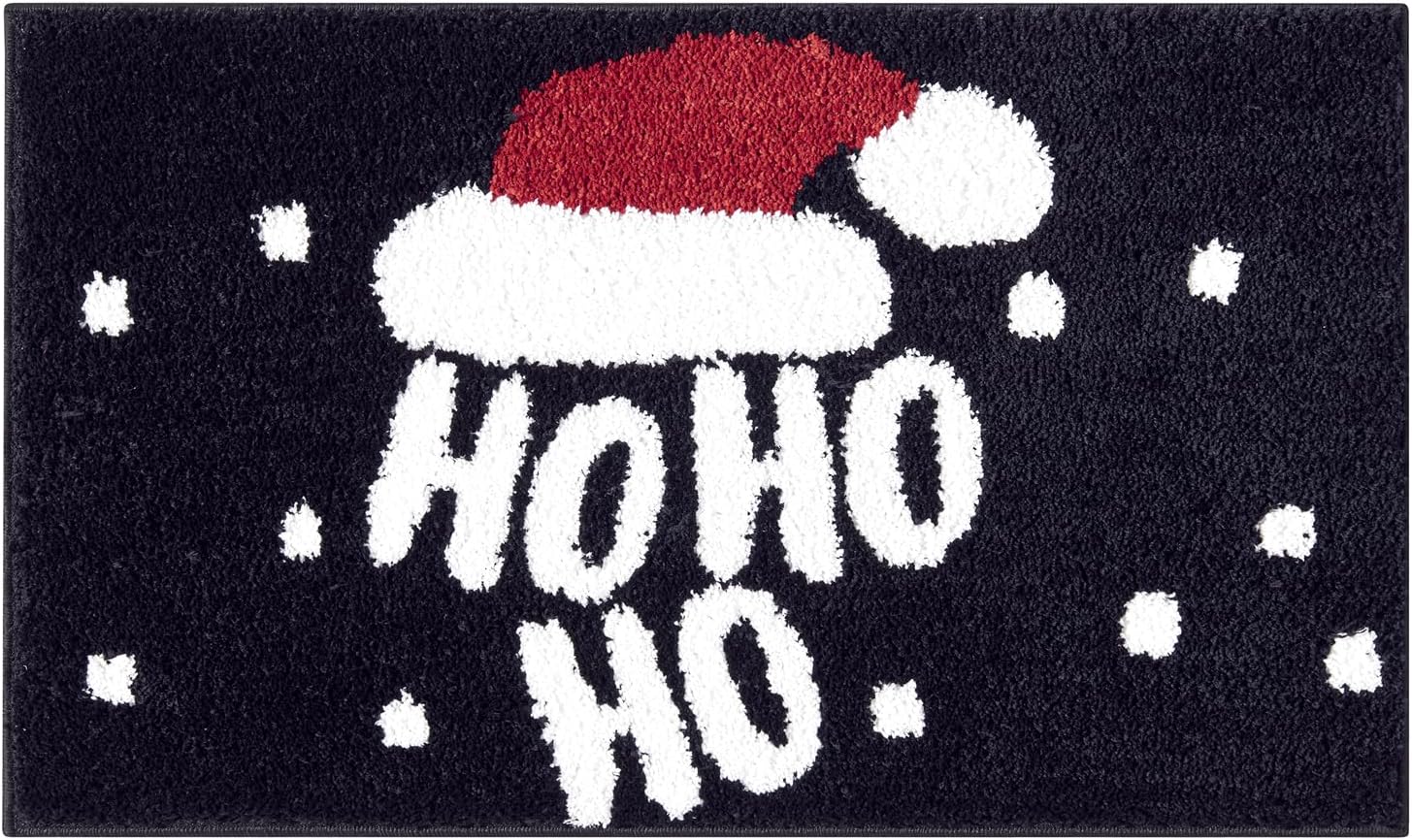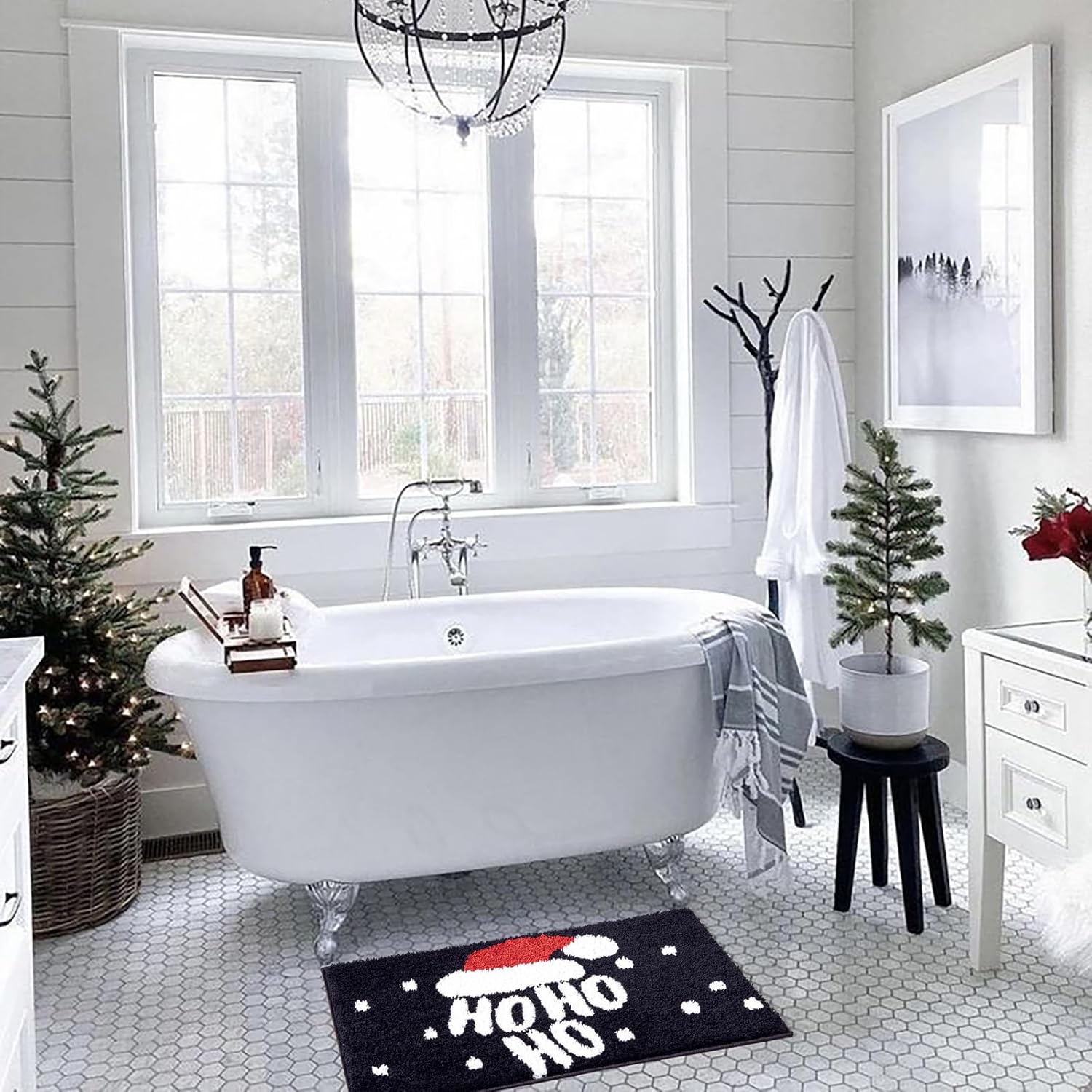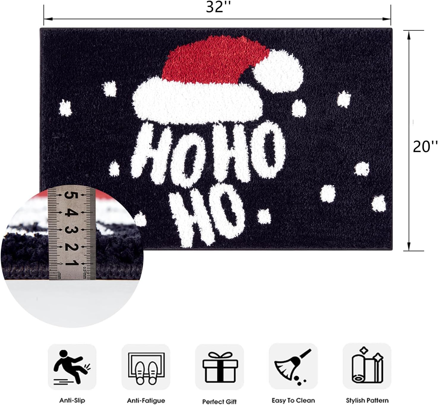 Ho – Tapete de baño navideño lavable, antideslizante, 20 pulgadas de ancho x 32 pulgadas de largo, gorro de Navidad festivo de Papá Noel, decoración de alfombras de baño, microfibra lanuda absorbente,