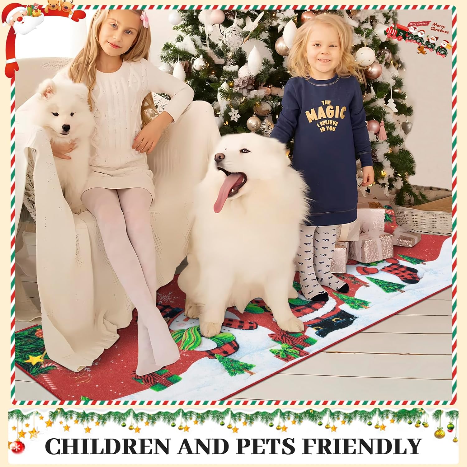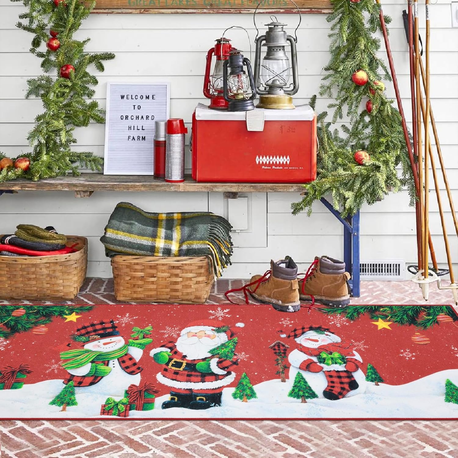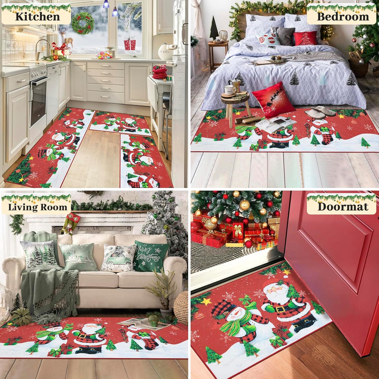 Alfombras de cocina vintage de diseño exclusivo: esta brillante y hermosa alfombra de Navidad está diseñada con Papá Noel, muñeco de nieve, árbol de Navidad clásico adecuado para la mayoría de diseños de interiores, no se decolora con colores fuertes y diseños diversificados, lo que traerá un ambiente cálido y festivo. Añade un efecto vívido y profundo a cualquier habitación. La alfombra de pasillo de granja es una decoración perfecta para la decoración de vacaciones de invierno.