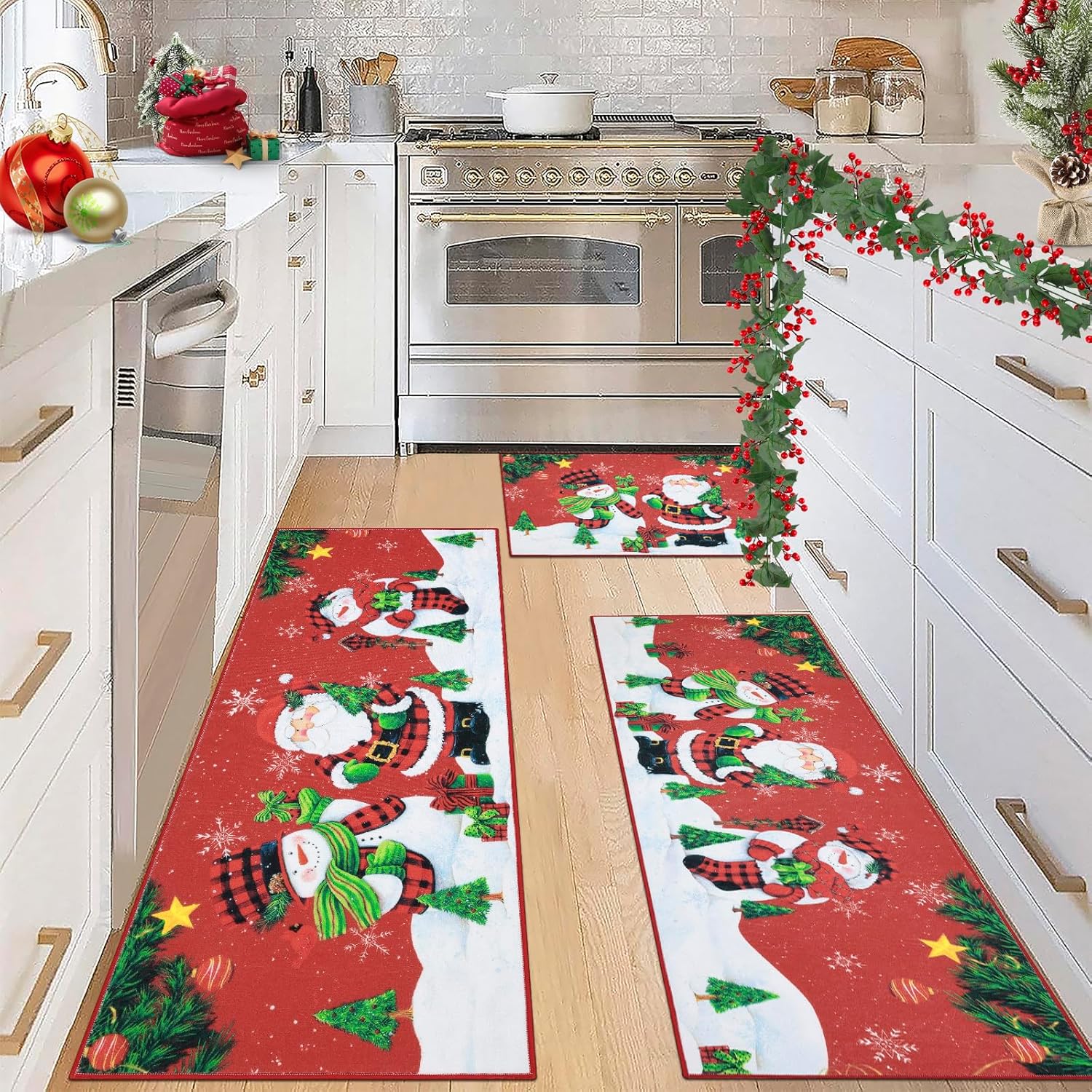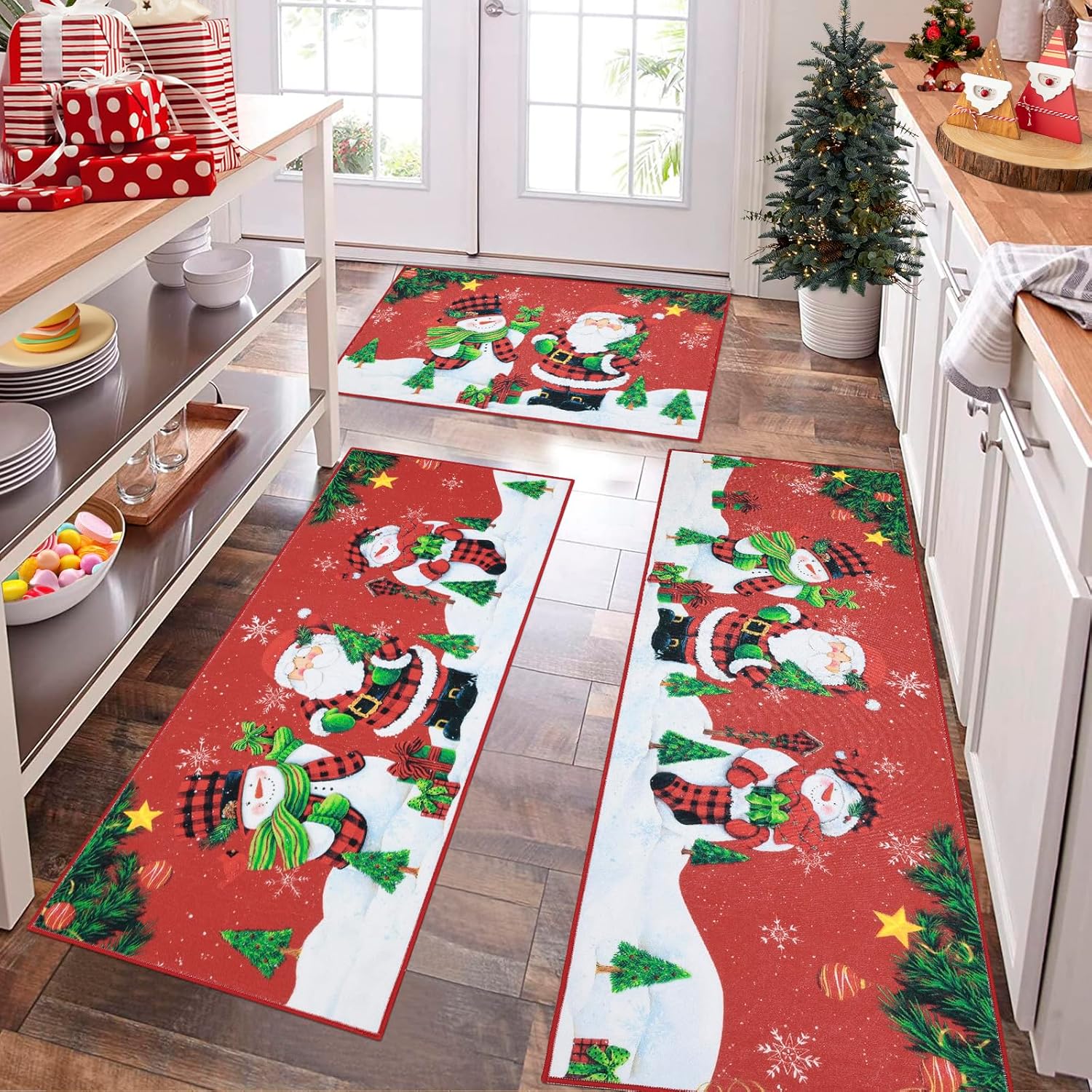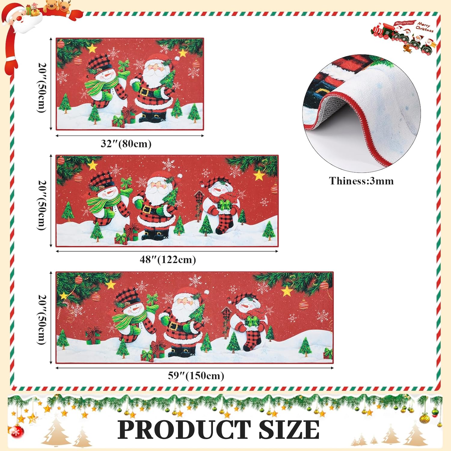 Alfombras y tapetes de cocina duraderos: la alfombra de cocina de estilo invierno con patrón atractivo está hecha de material de poliéster de alta calidad y tiene aproximadamente 0.15 (aprox. 0.4 cm) de grosor, que no se atrapa en las puertas y no representa peligro de tropiezos. Perfecto para felpudos interiores, tapetes de fregadero de cocina y otras decoraciones del hogar. Este juego de alfombras de cocina con temática navideña incluye los siguientes tamaños: 20 x 32 (aprox. 81.3 cm) + 20 x 48 (aprox. 121.9 cm) + 20 x 59 (aprox. 149.9 cm), adecuado para la mayoría de diseños de cocina, pero también se puede utilizar por separado para diferentes ocasiones.