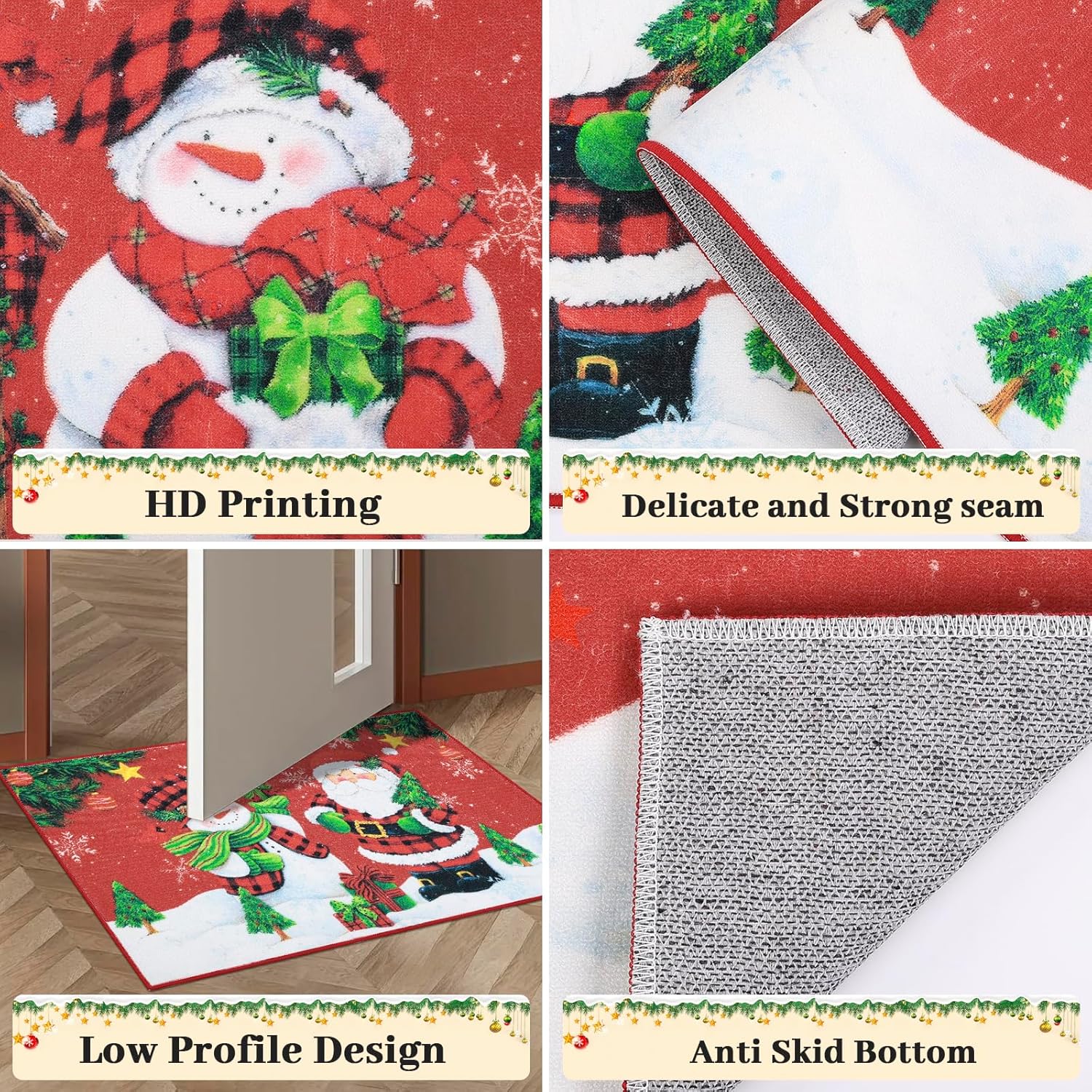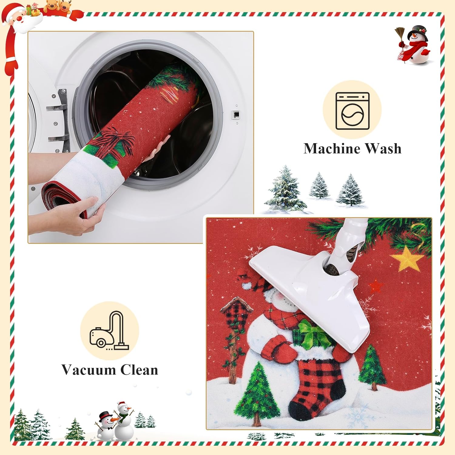 Tapetes lavables a máquina y de secado rápido: las alfombras totalmente lavables a máquina para Navidad son adecuadas para todo tipo de lavanderías grandes y pequeñas. Muy fácil de limpiar. Puedes meter el tapete de entrada en la lavadora, lavarlo en agua fría y colgarlo para secar o secar al aire. Las alfombras antideslizantes para cocina se pueden secar rápidamente y adoptan la tecnología avanzada de costuras. Las fibras fáciles de limpiar son perfectas para familias con niños o perros.
