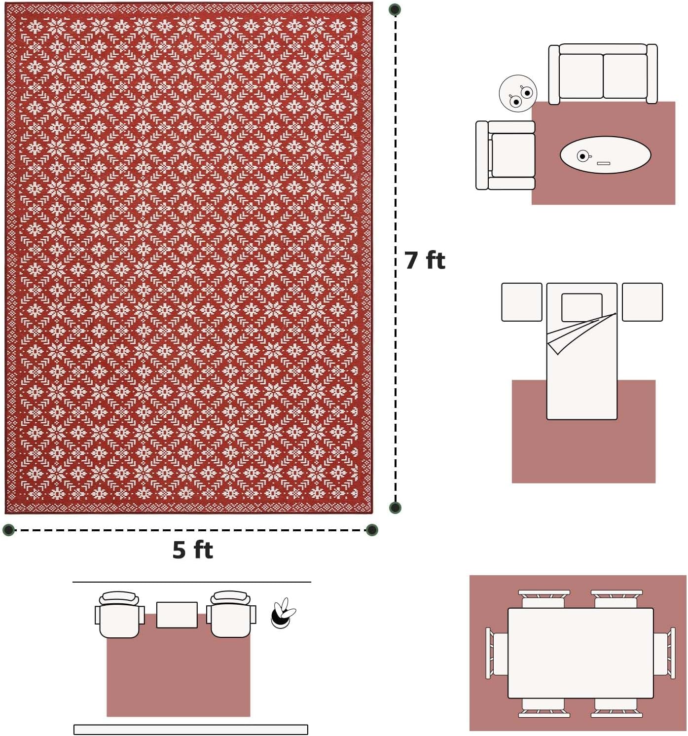 Feliz estado de ánimo: da la bienvenida a la temporada más feliz con nuestra alfombra roja de Navidad, donde el encanto del punto se reinventa en impresión. Un patrón de copo de nieve atemporal en tonos listos para las vacaciones se siente cálido y clásico. El diseño de punto recuerda las tradiciones artesanales hogareñas. Todos los ingredientes para reuniones acogedoras