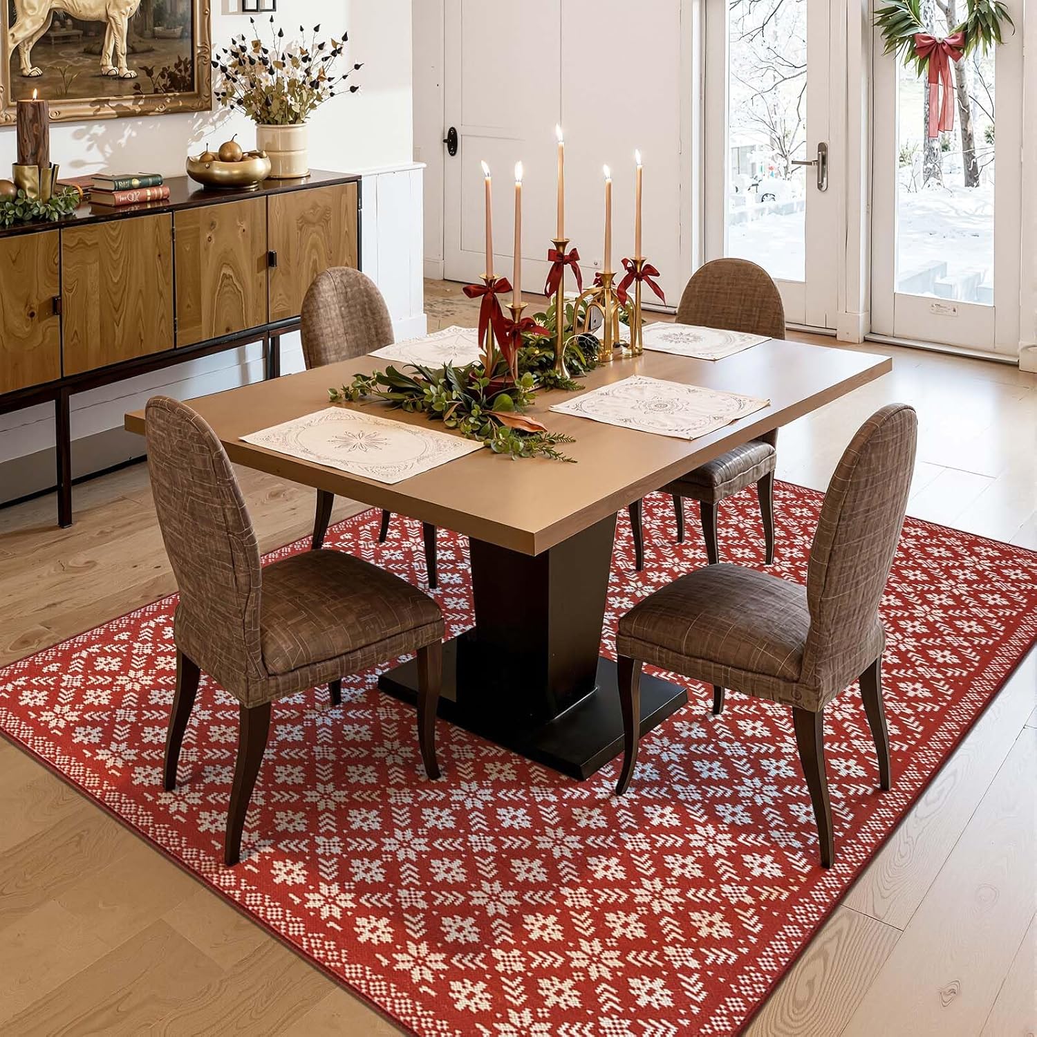 Cuidado fácil de las vacaciones: el juego sucede. Los derrames ocurren. El cabello pasa. Sin estrés. Nuestra alfombra de Navidad lavable lo mantiene fácil durante toda la temporada. Mételo en la lavadora, sécalo en secadora y listo. Evita el blanqueador, dale una aspiradora rápida cuando sea necesario. Refresca en cualquier momento, luego vuelve a la fiesta