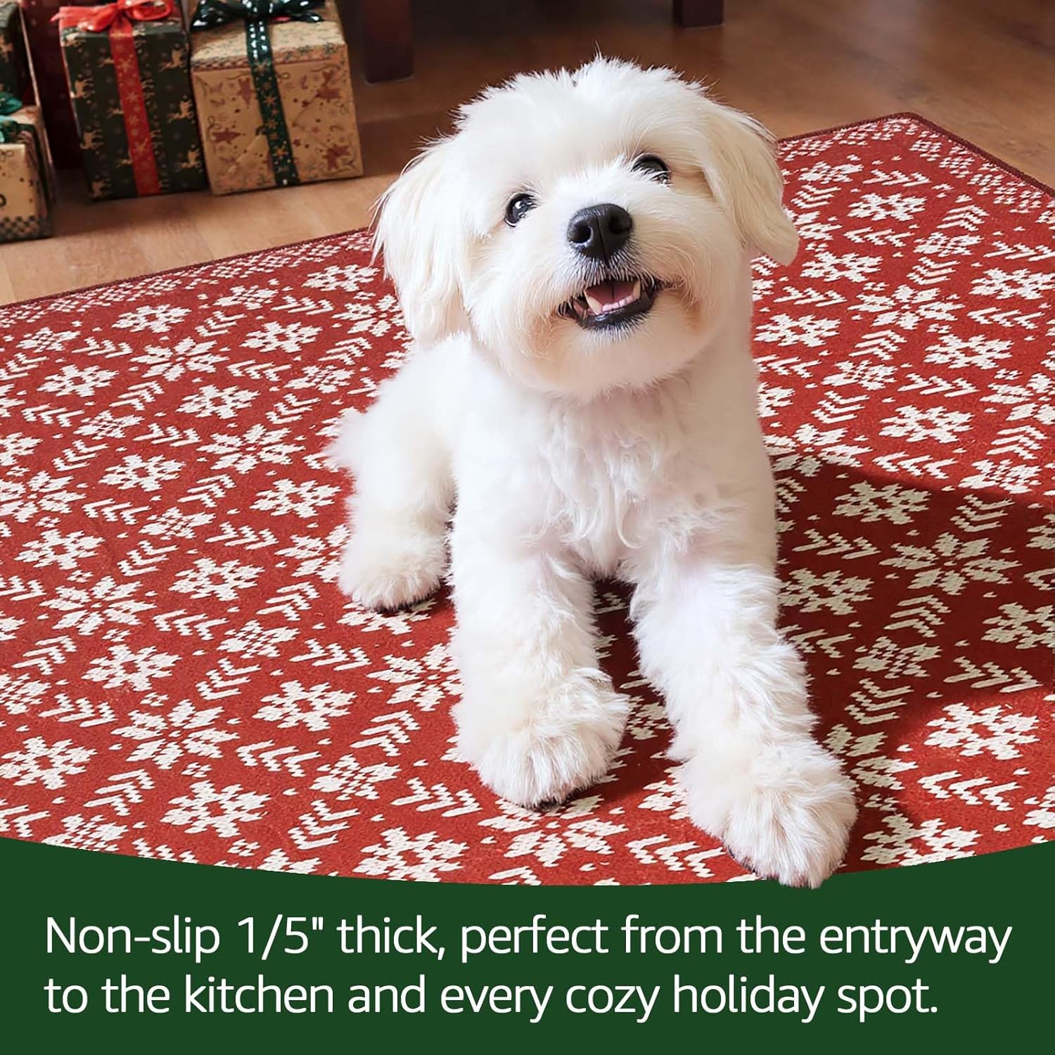 Apto para familias y mascotas: perfecta para pies pequeños y amigos peludos por igual, esta pequeña alfombra de Navidad crea un lugar acogedor para sentarse, jugar o acurrucarse. Disfruta de momentos tranquilos, golosinas navideñas o diversión festiva sencilla juntos