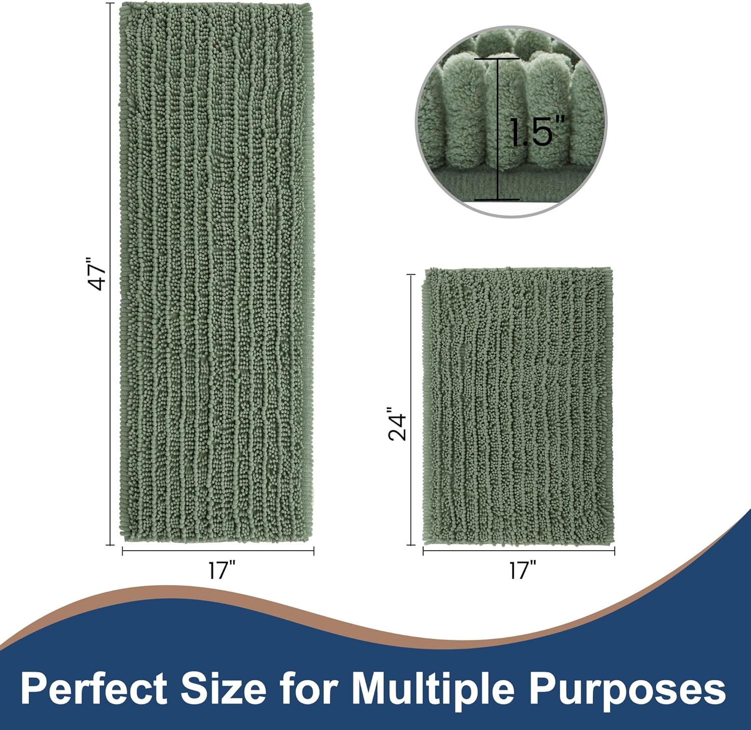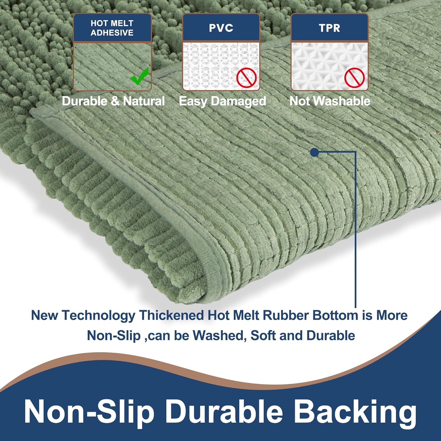 🎀Respaldo grueso antideslizante de fusión caliente: tapetes de baño de lujo H.VERONNEX (47 x 17 (aprox. 43.2 cm) más 17 x 24 (aprox. 61.0 cm), verde salvia), con versión gruesa actualizada antideslizante SBE/spray termofusible en la parte inferior, el tapete antideslizante duradero para cocina/baño no se desvanece manteniendo el tapete en su lugar incluso cuando está mojado, mantiene firmemente los tapetes de baño firmemente en su lugar para mayor seguridad, protegiéndote a ti y a la familia de cualquier posible sotavento. labios o caer en el cuarto de baño.
