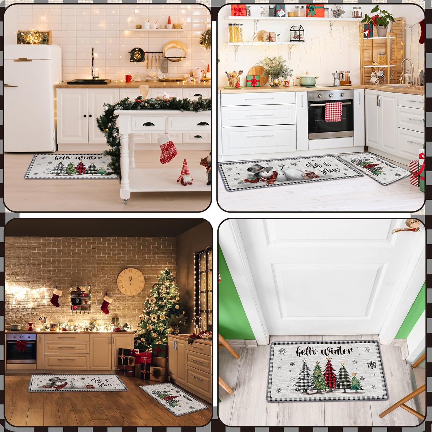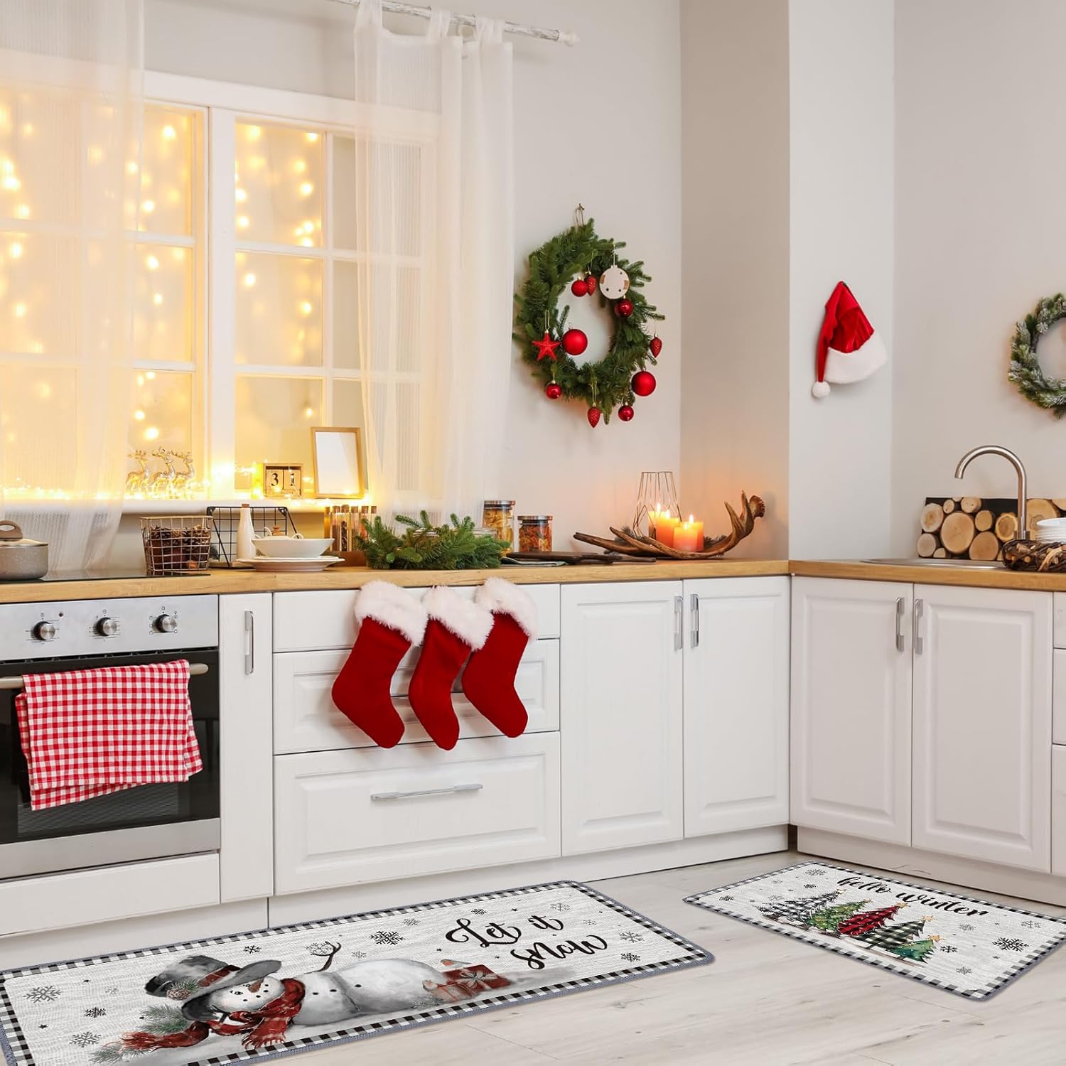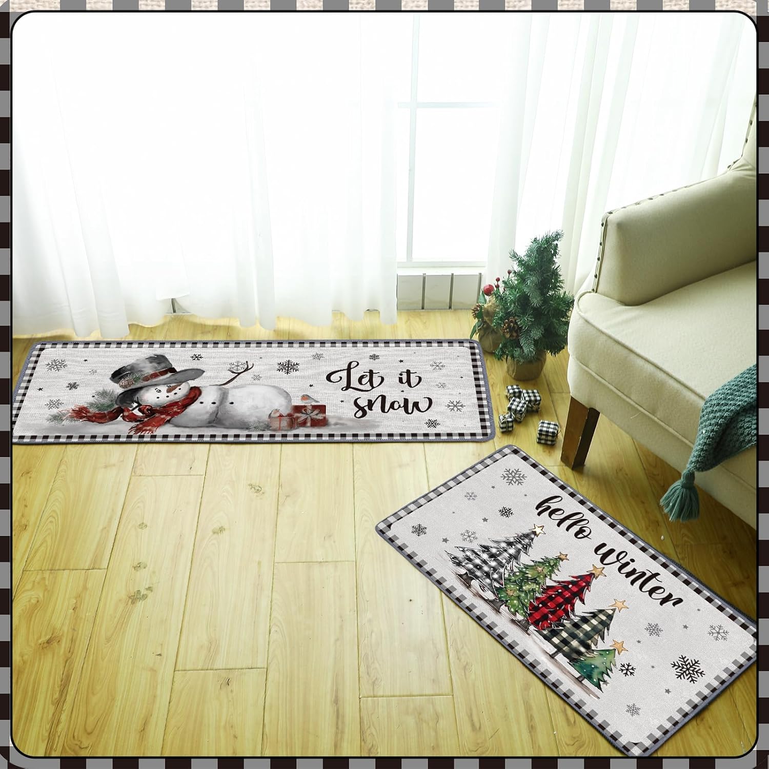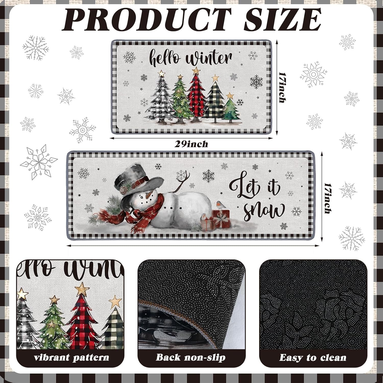 Juego de 2 alfombras de cocina con diseño de muñeco de nieve de invierno con diseño de copo de nieve, tapete de cocina Let It Snow para Navidad, invierno, decoración de vacaciones, 17 x 29 y
