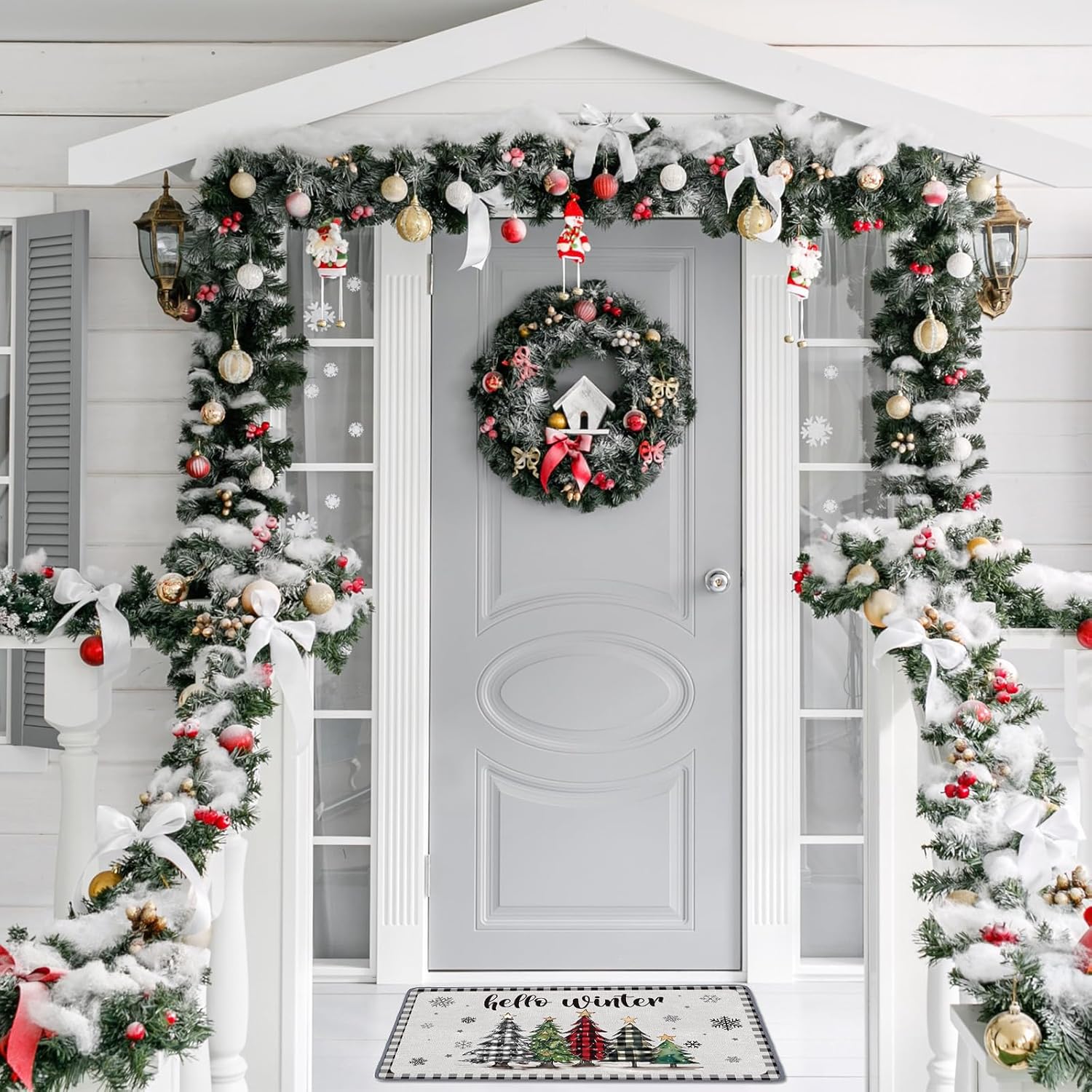 Ampliamente aplicado: nuestro tapete de bienvenida de Navidad se puede aplicar ampliamente a tu oficina, hogar, baño, cocina, lavandería, garaje, sala de estar, porche, puerta delantera y muchos otros lugares, que no solo es una alfombra, sino también una decoración