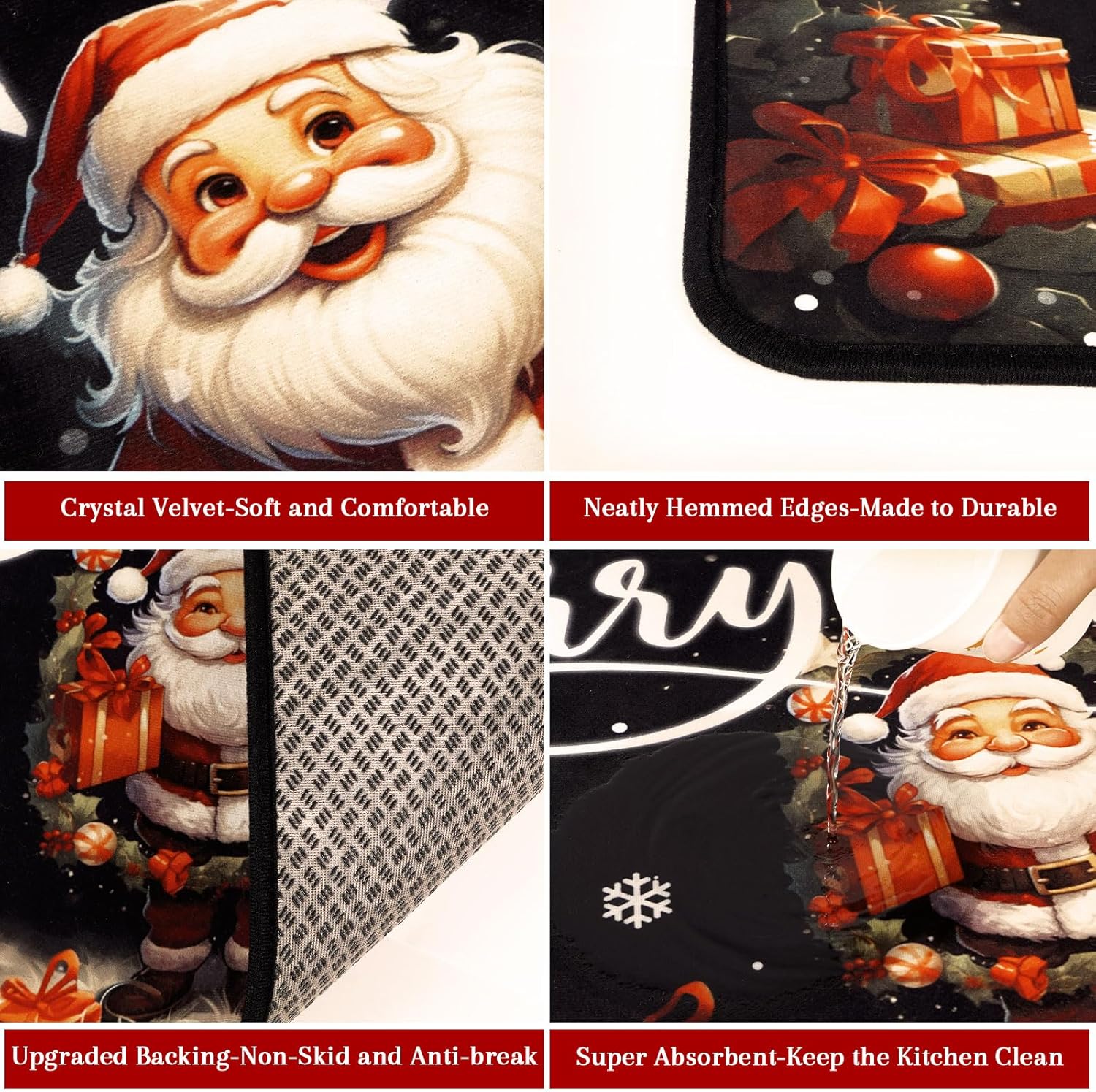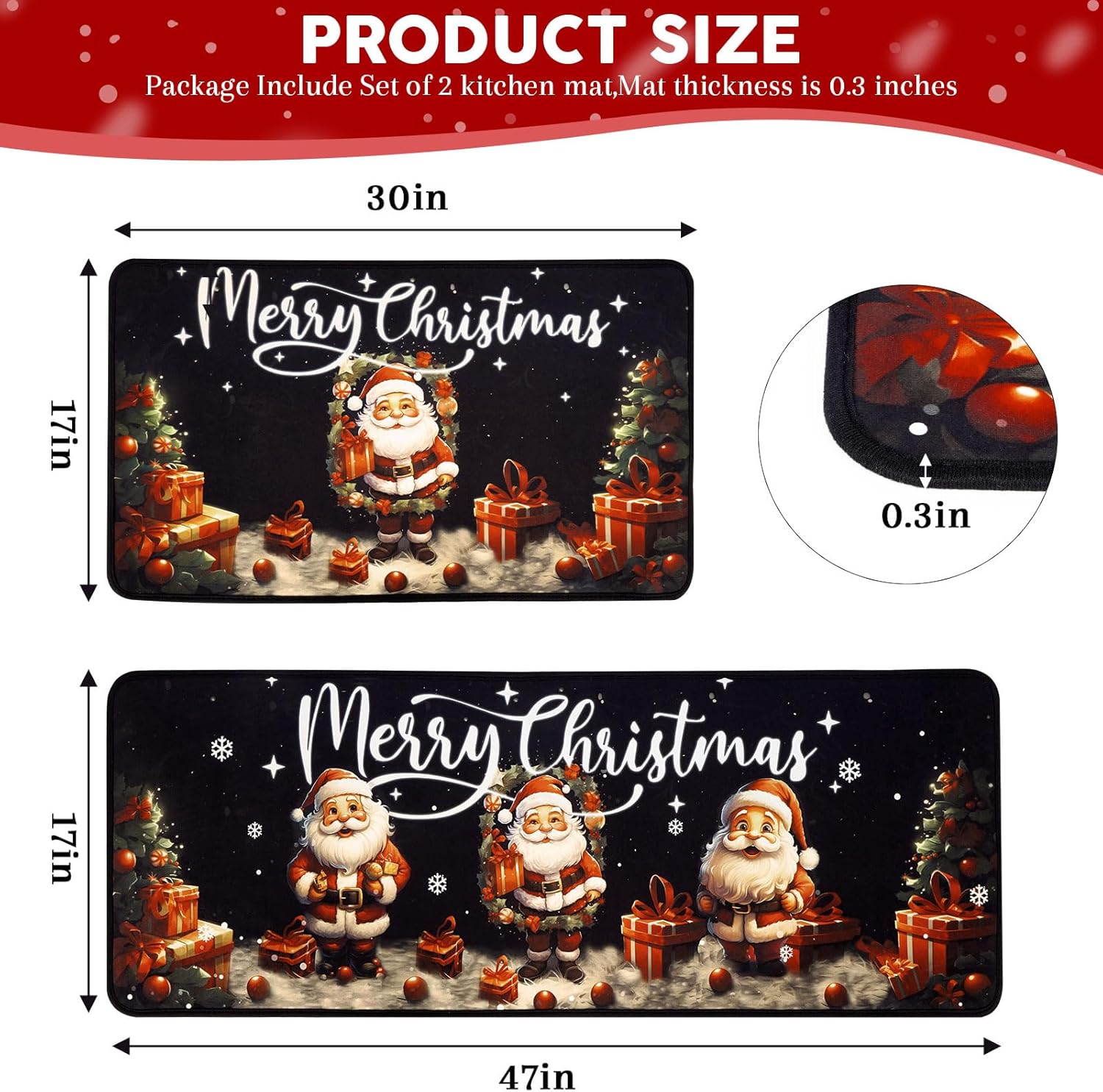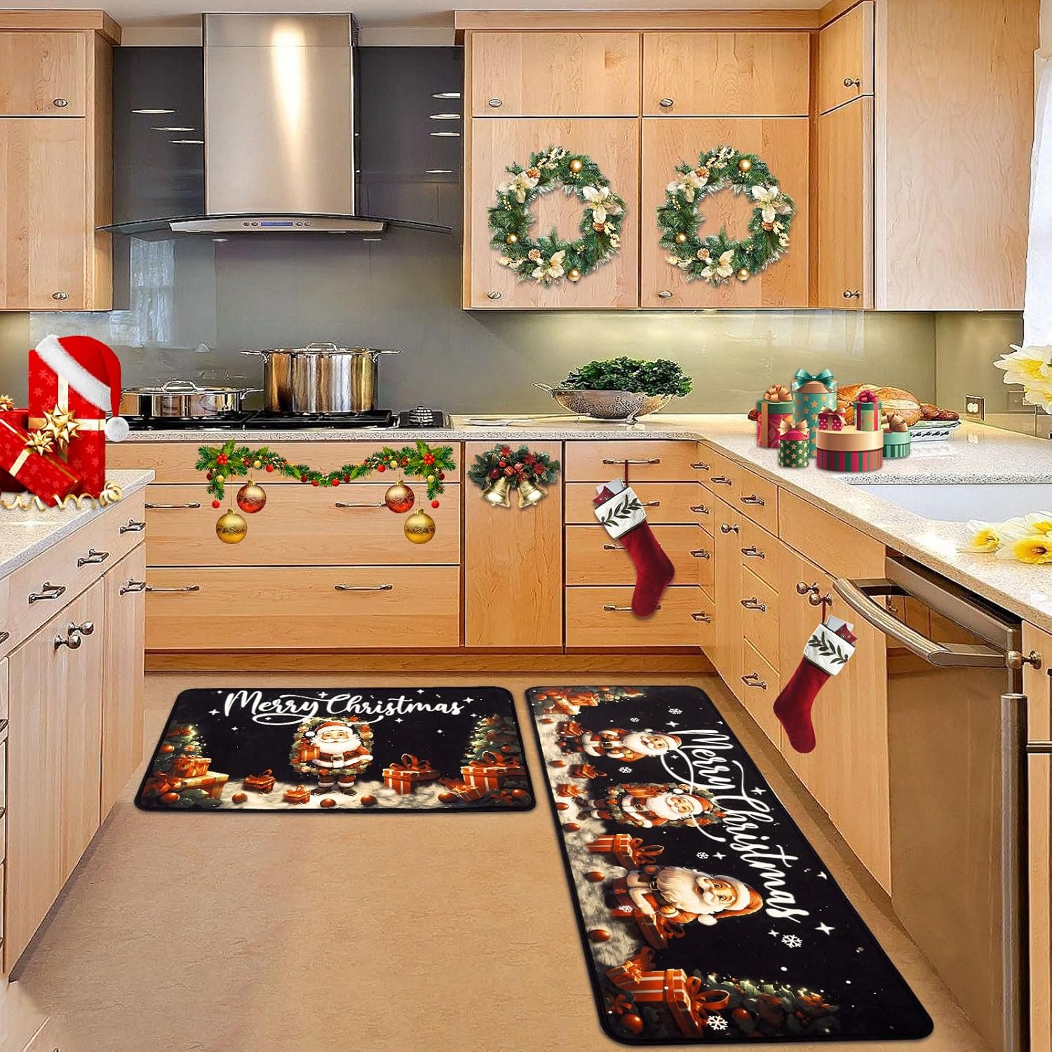 Juego de 2 alfombras de cocina con texto en inglés «Merry Christmas», bonito Papá Noel y regalo de Navidad, tapete antideslizante lavable para el suelo, 17 x 30 + 17 x 47 pulgadas