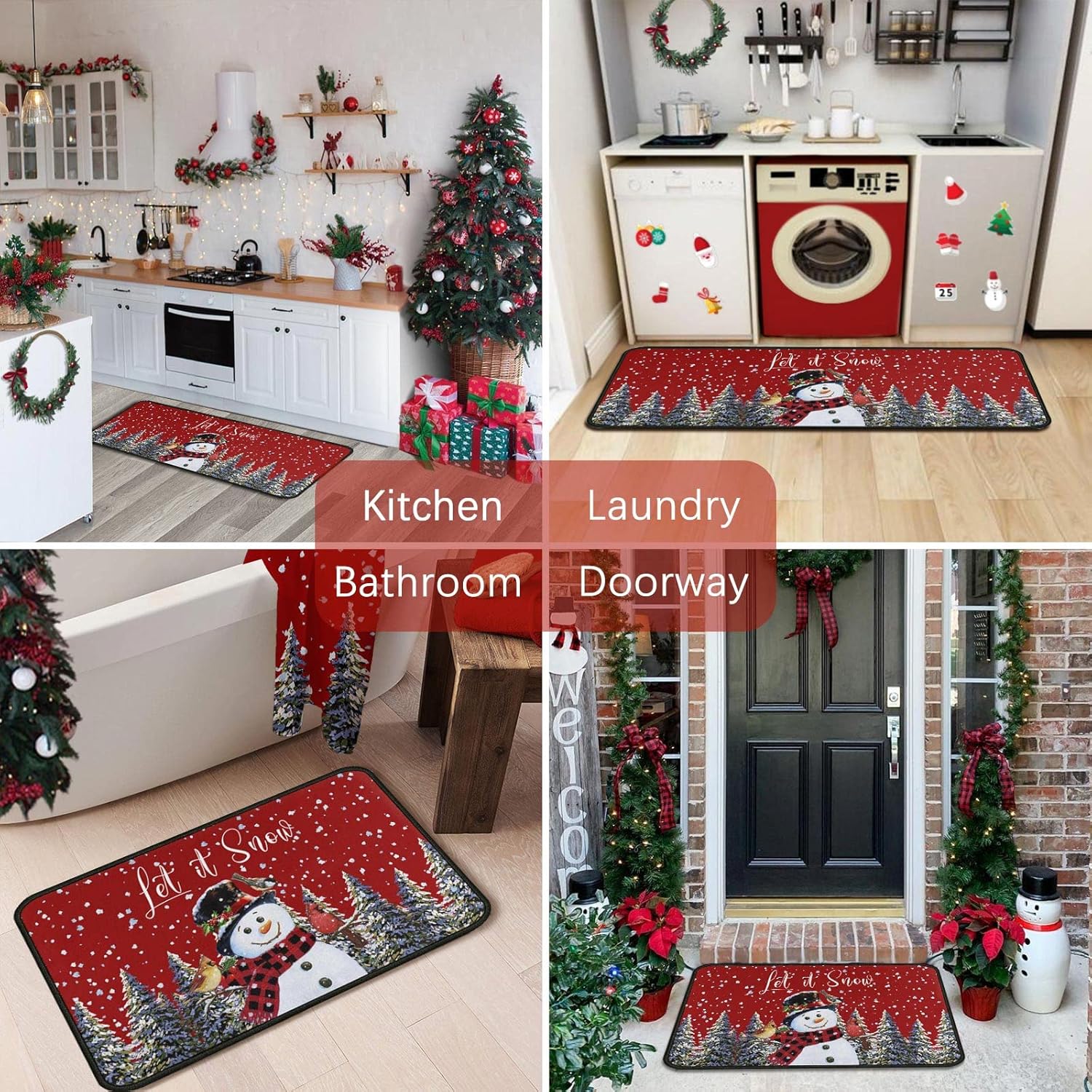 Multiuso: ¡La alfombra para el suelo de la cocina va más allá de la cocina! Utilízalos como tapetes de escritorio de pie, tapetes de oficina, felpudos, alfombras de dormitorio, tapetes de baño o incluso en la habitación de tu hijo. Estas decoraciones navideñas de cocina son un complemento práctico a cualquier espacio, añadiendo comodidad y estilo dondequiera que las coloques.