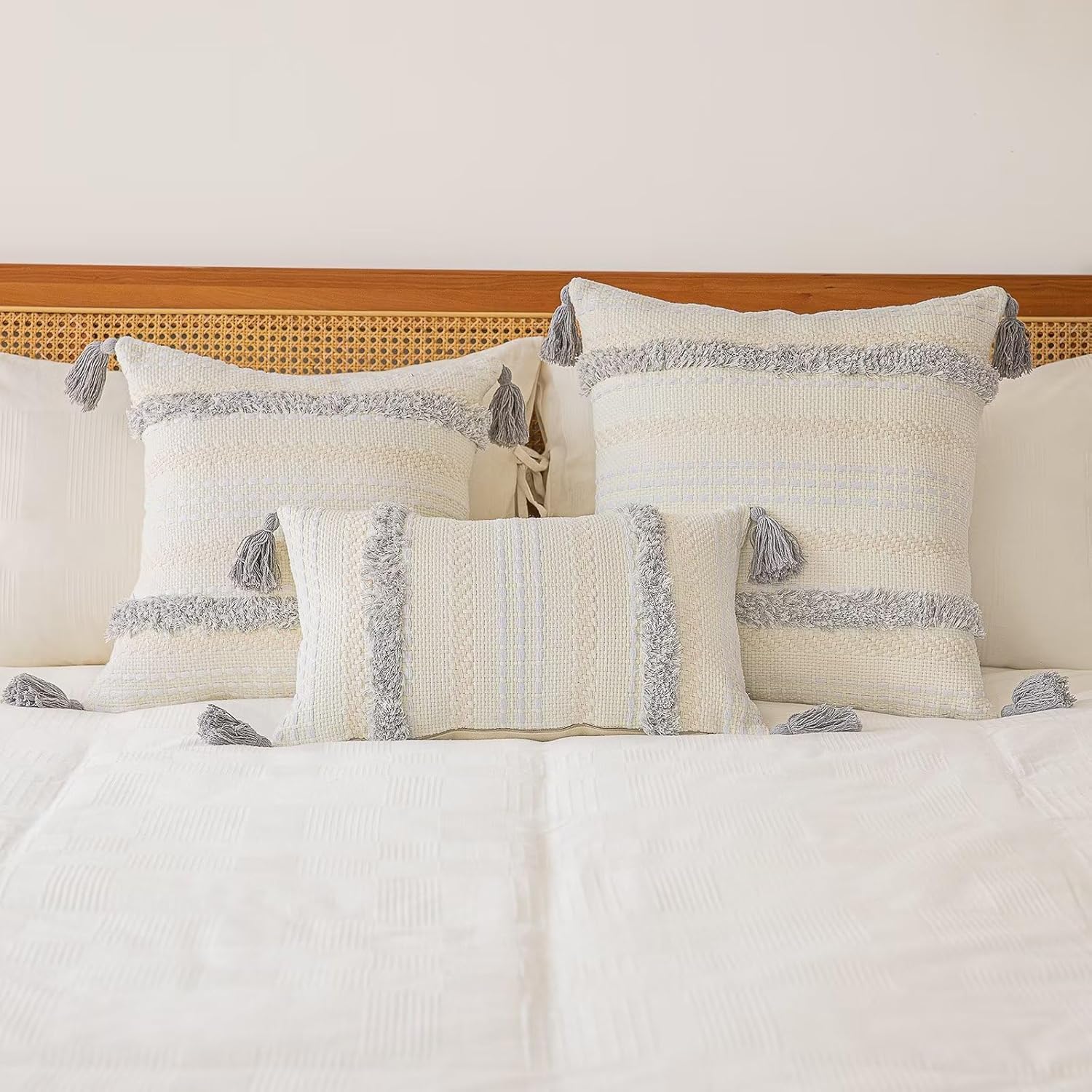 Elegante para la decoración del hogar: estas fundas de almohada decorativas con texturas bohemias mezcladas y mechones 3D únicos son perfectas para colocar en el sofá, cama, sillón, banco, dormitorio, sala de estar, fiesta, oficina, etc. e incluso se puede utilizar como almohadas para exteriores, trae muchos estilos de decoración diferentes a tu hogar o cualquier otro lugar, incluyendo bohemio, nórdico, bohemio moderno, granja, marroquí, chic desgastado y más, estas fundas de almohada texturizadas te impresionarán a ti y a todos.