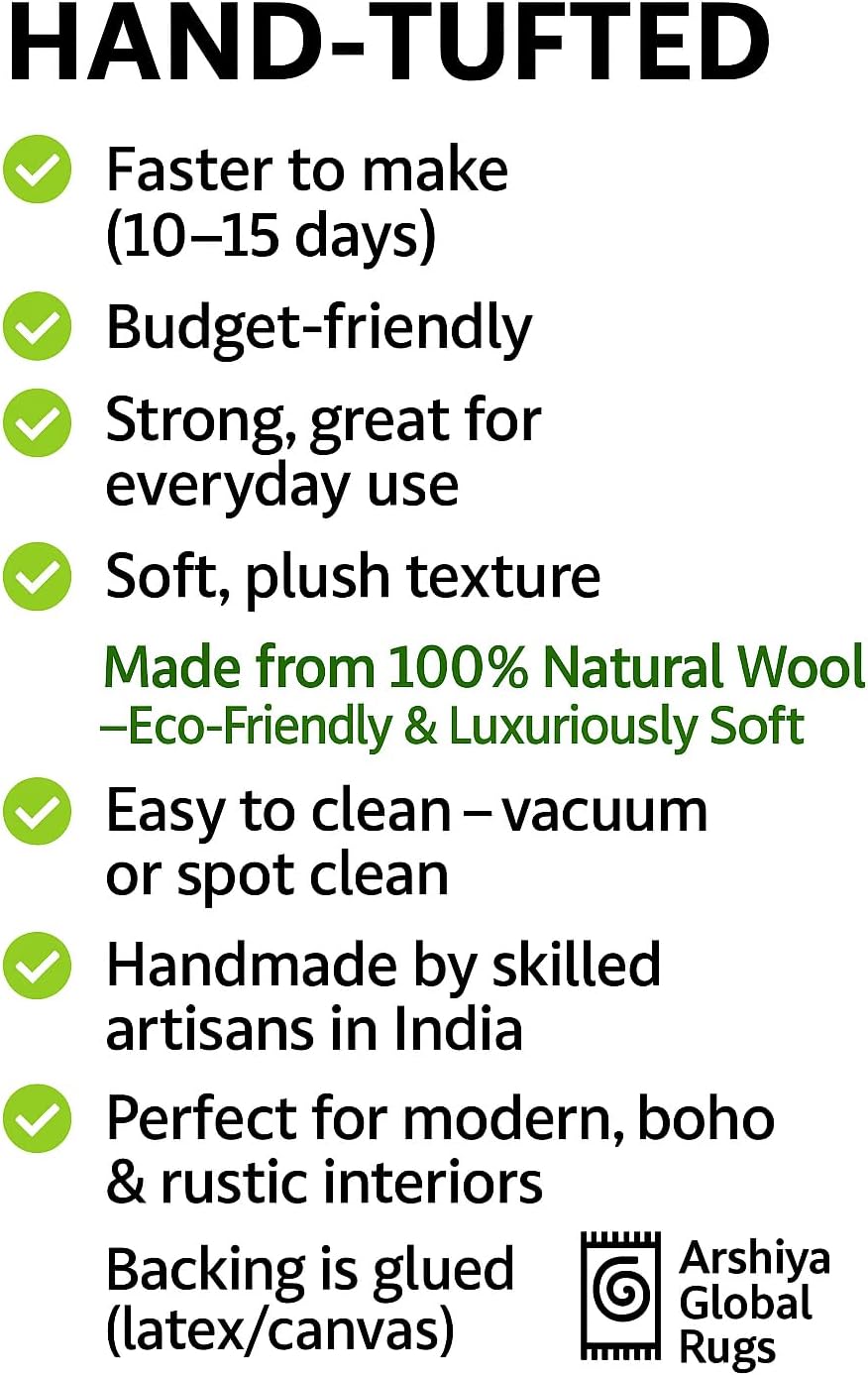 100% Natural Hand-Tufted Wool Rug – Designed for exceptional softness and warmth, this premium area rug fits beautifully in living rooms, bedrooms, nurseries, entryways, hallways, and more.