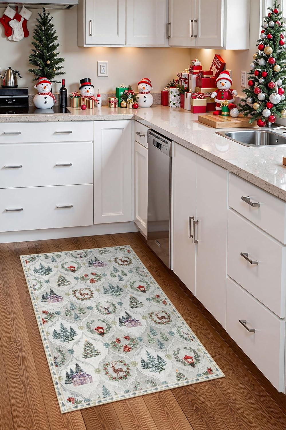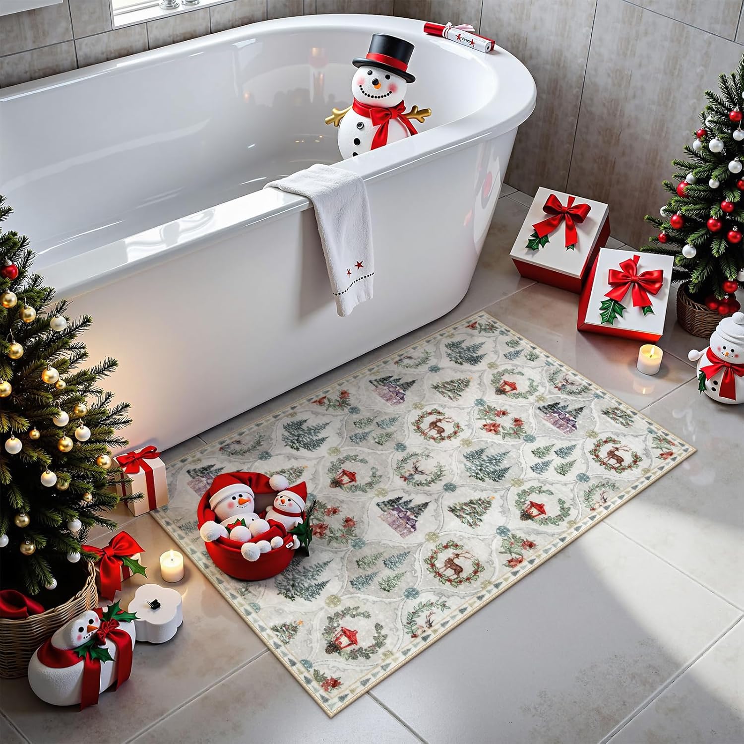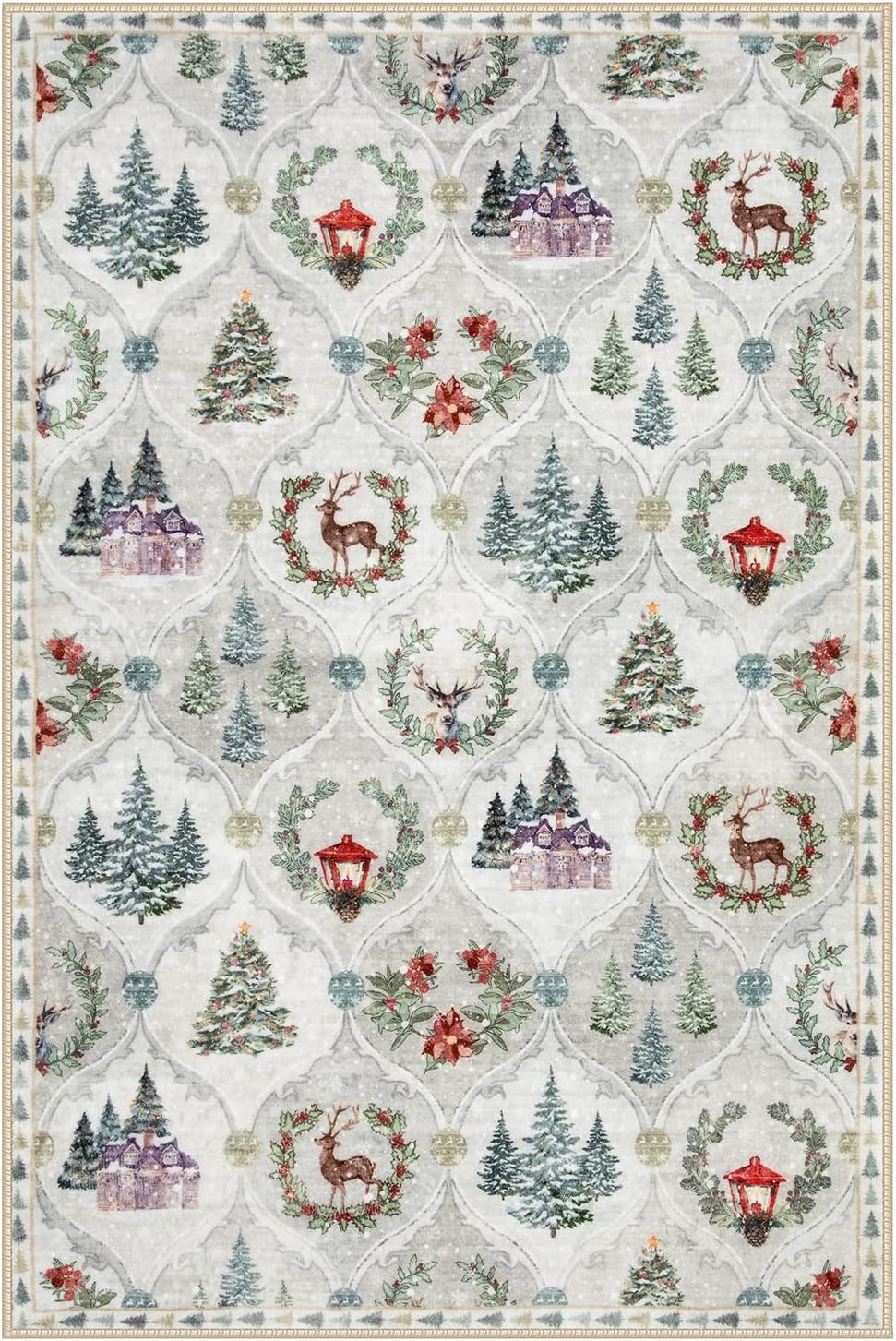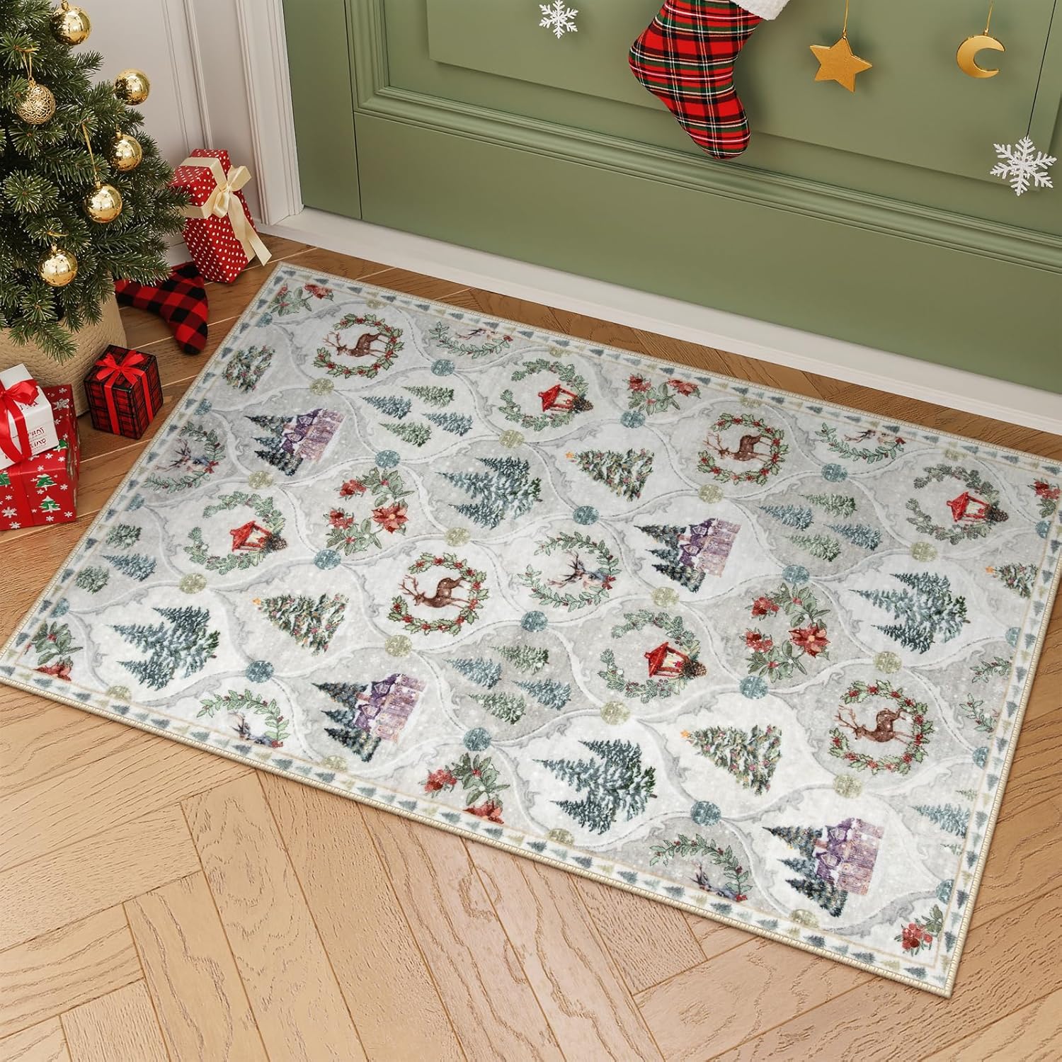 Lahome Alfombra de Navidad con diseño de enrejado marroquí, 2 x 3 pulgadas, para cocina, Navidad, ultrafina, lavable, para interiores, entrada, vacaciones, para entrada, dormitorio (2 x 3 pies, blanco