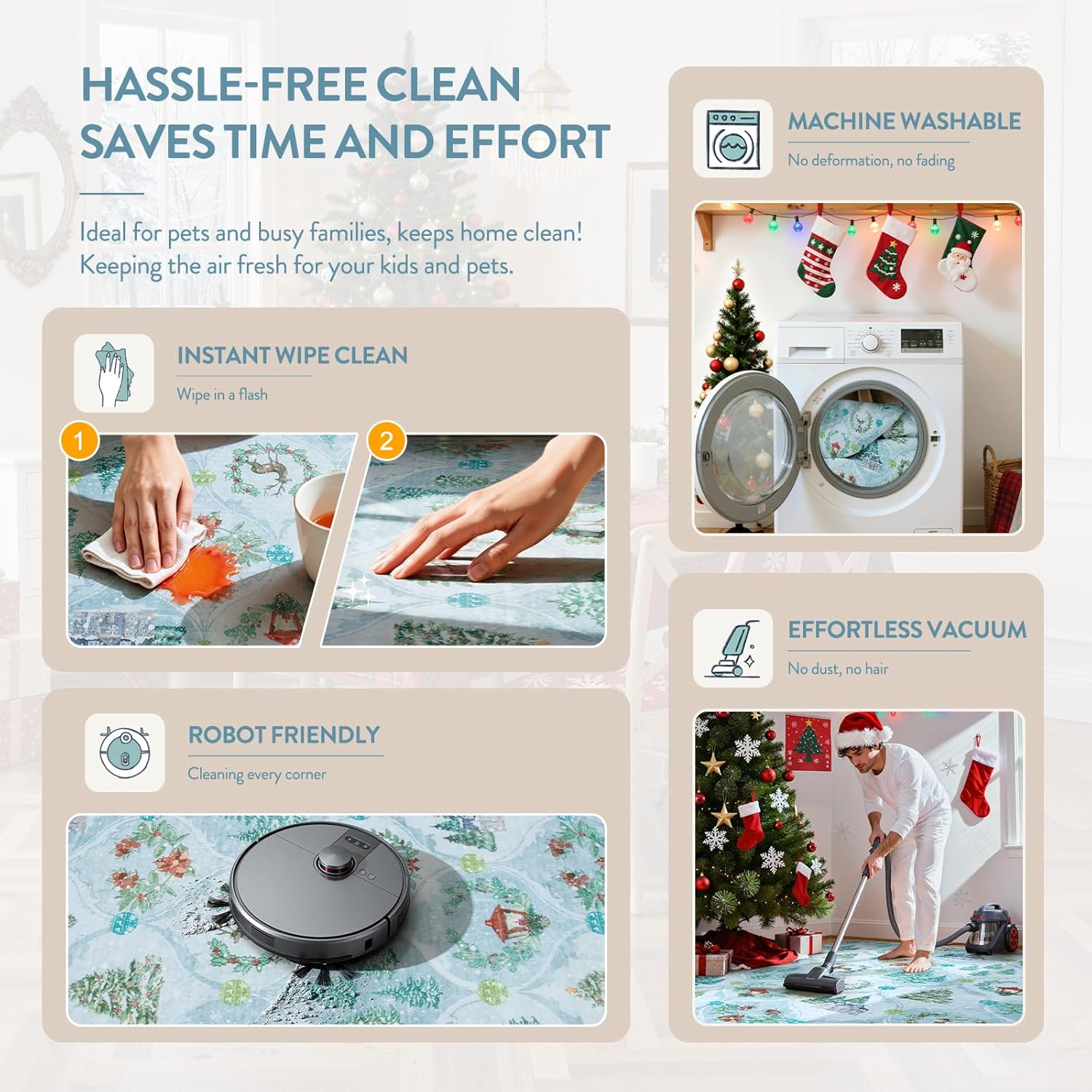 Apto para niños y mascotas: alfombra de pelo bajo de 0.16 (aprox. 0.4 cm), la caspa de mascotas y el pelo no quedarán atrapados en el interior, evita que las mascotas y los niños masticen o rayen. Las patas de las mascotas no se enganchan ni se atrapan en los bordes haciendo que rayen el suelo