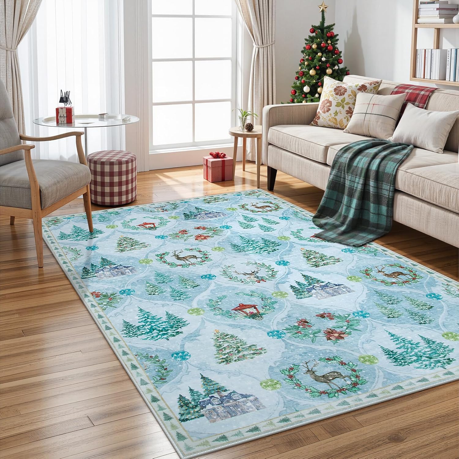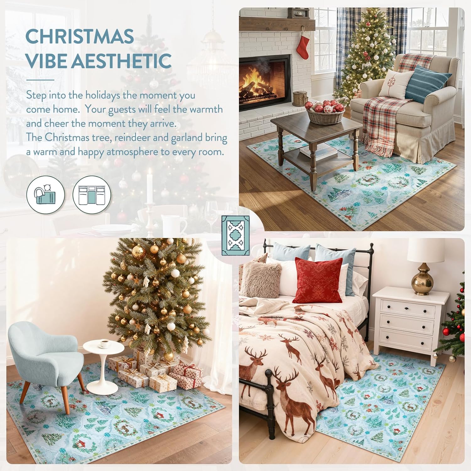 Respaldo antideslizante: la alfombra de la sala de estar está hecha de goma antideslizante TPE, que ayuda a mantener la alfombra en su lugar, evita que el tráfico pesado raye el suelo. Incluso si corre sobre él rápidamente, no se mueve y se desliza alrededor