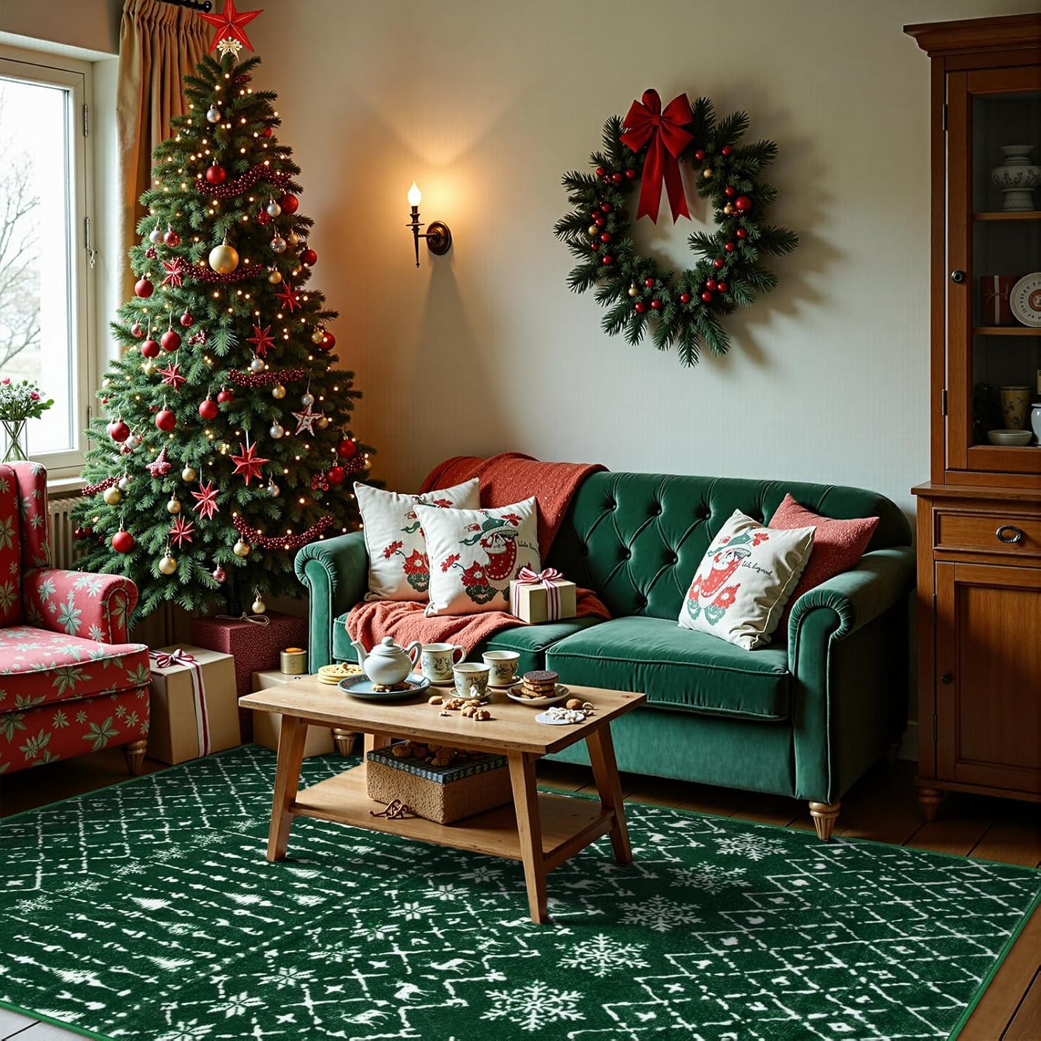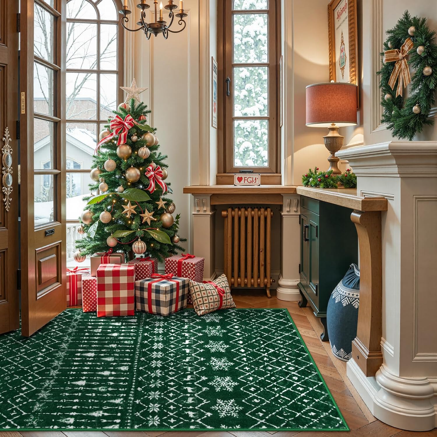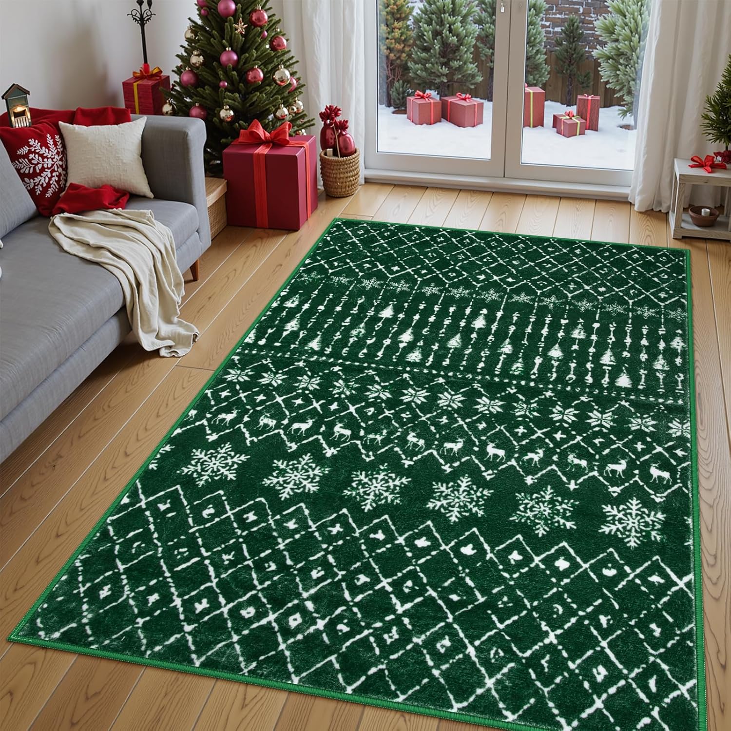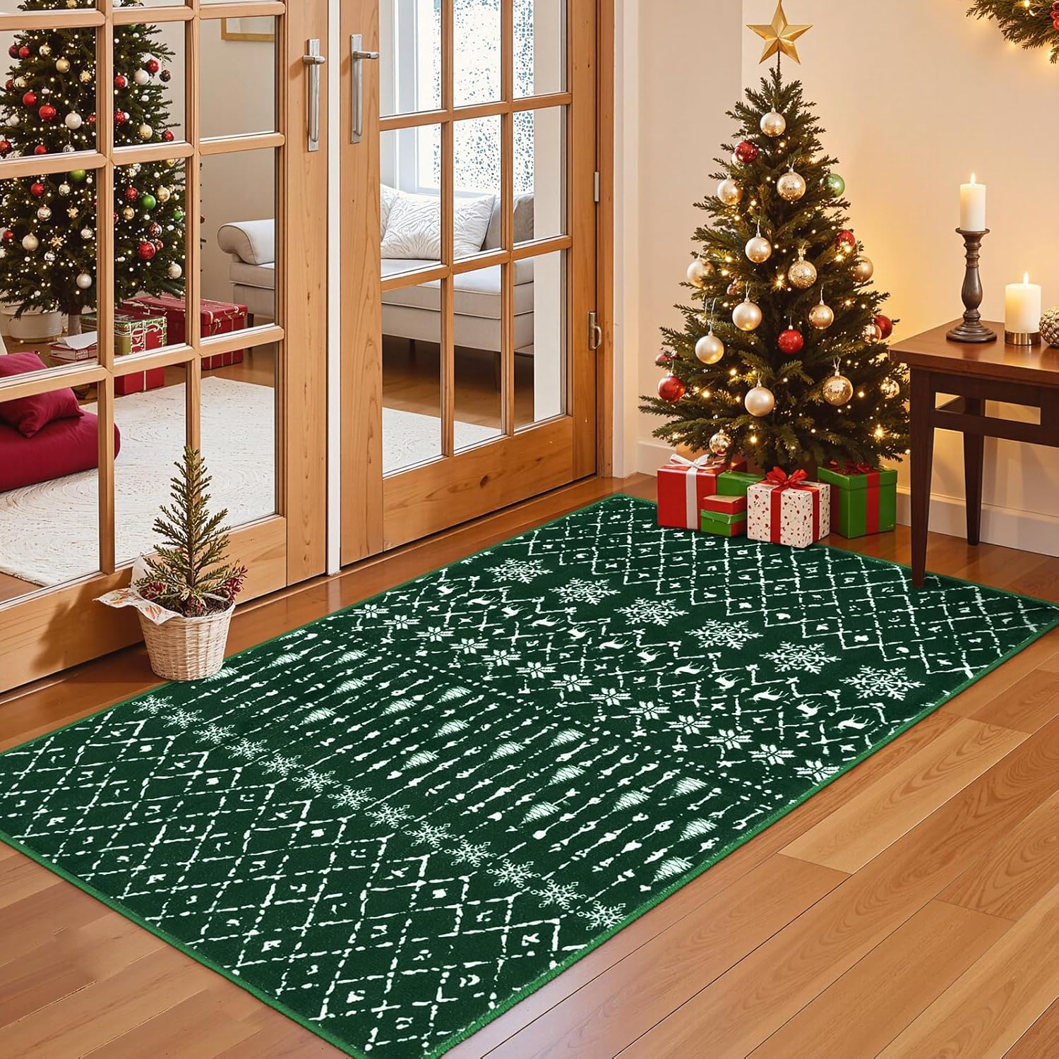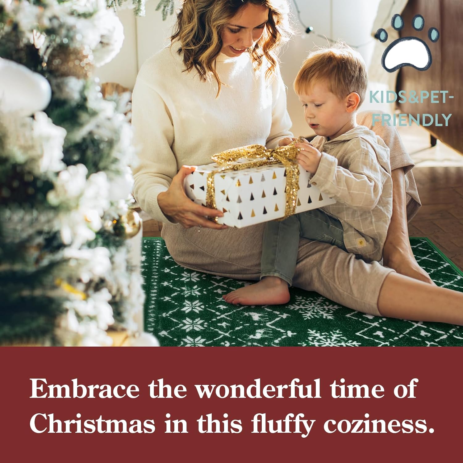 Superficie suave y cómoda: la tela se siente casi como tela de toalla y tiene una sensación aterciopelada. A las mascotas y los niños les encantará moverse por el tapete navideño. Los tapetes suaves son el complemento afelpado perfecto para tu espacio favorito.