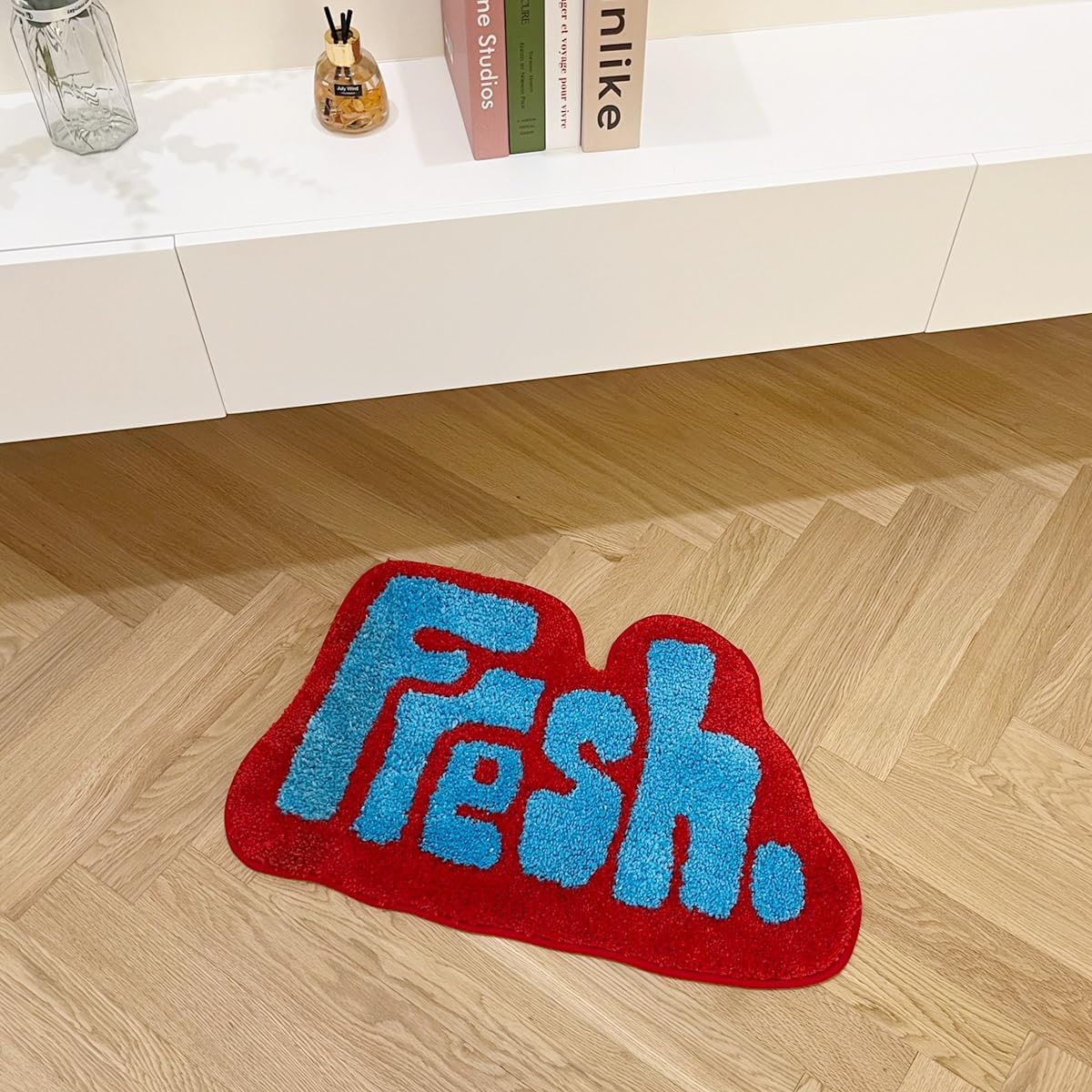 LAKEA Alfombra copetuda fresca para dormitorio grueso: La alfombra de baño única está diseñada con una forma especial y color naranja, amarillo y colorido, que se puede utilizar como gran decoración en su baño/baño/puerta/dormitorio o en cualquier lugar.
