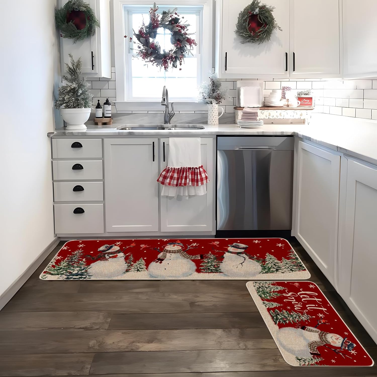 Material duradero: el felpudo de Navidad está hecho de poliéster y goma duraderos, que se siente grueso y suave. fuerte propiedad antideslizante.