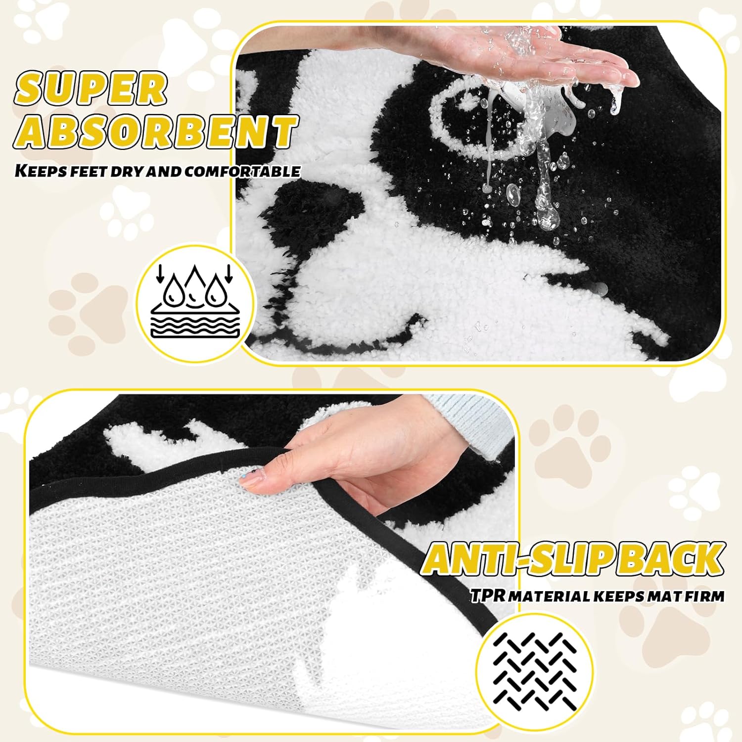 Súper absorbente: esta alfombra para perro tiene un excelente rendimiento de absorción de agua, que puede absorber eficazmente la humedad de tus pies y mantener tus pies y suelo secos. Ya sea en el baño, la cocina o el balcón, la alfombrilla de baño para perros puede hacer frente fácilmente, haciendo tu vida más fácil y cómoda.