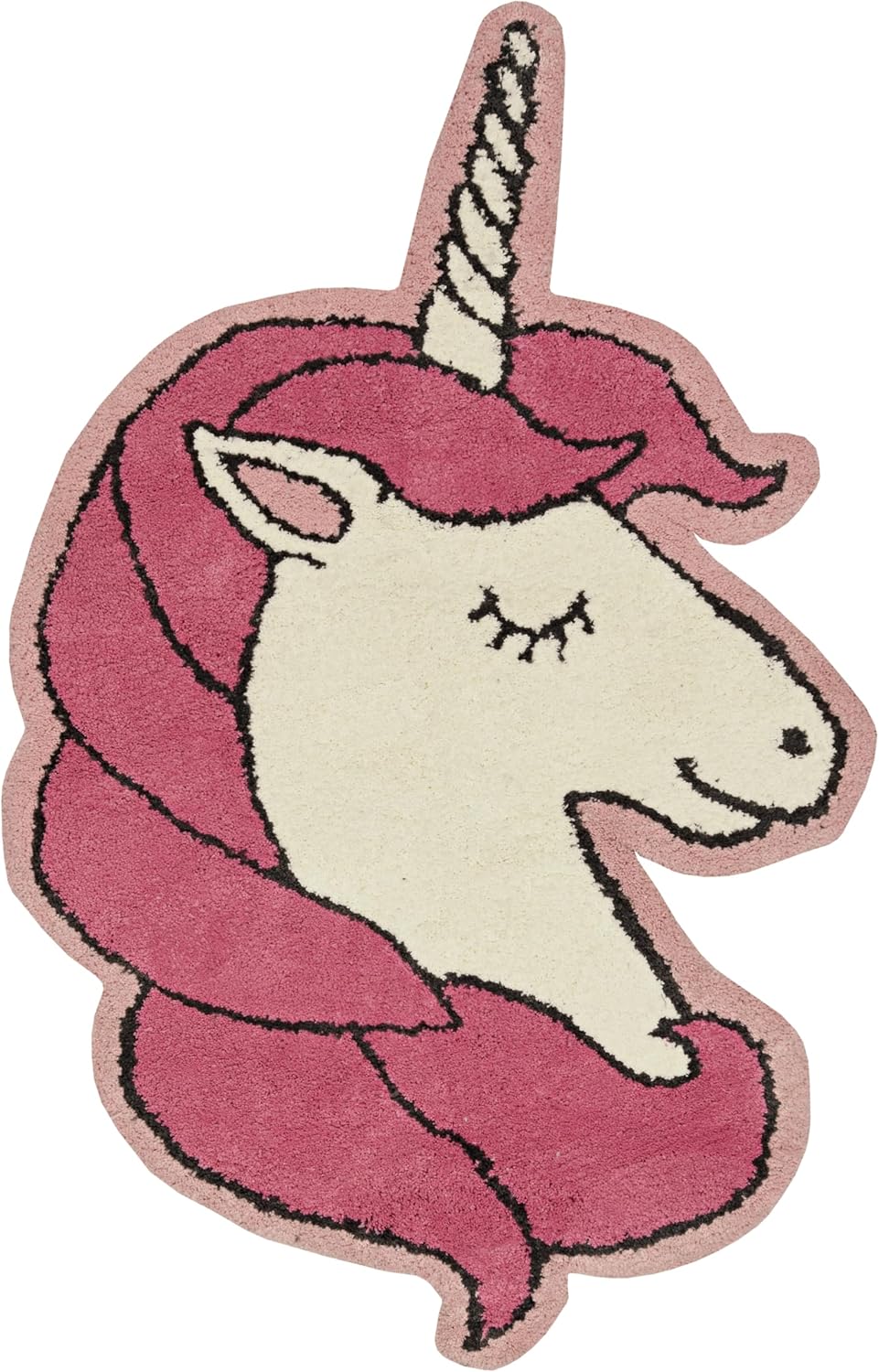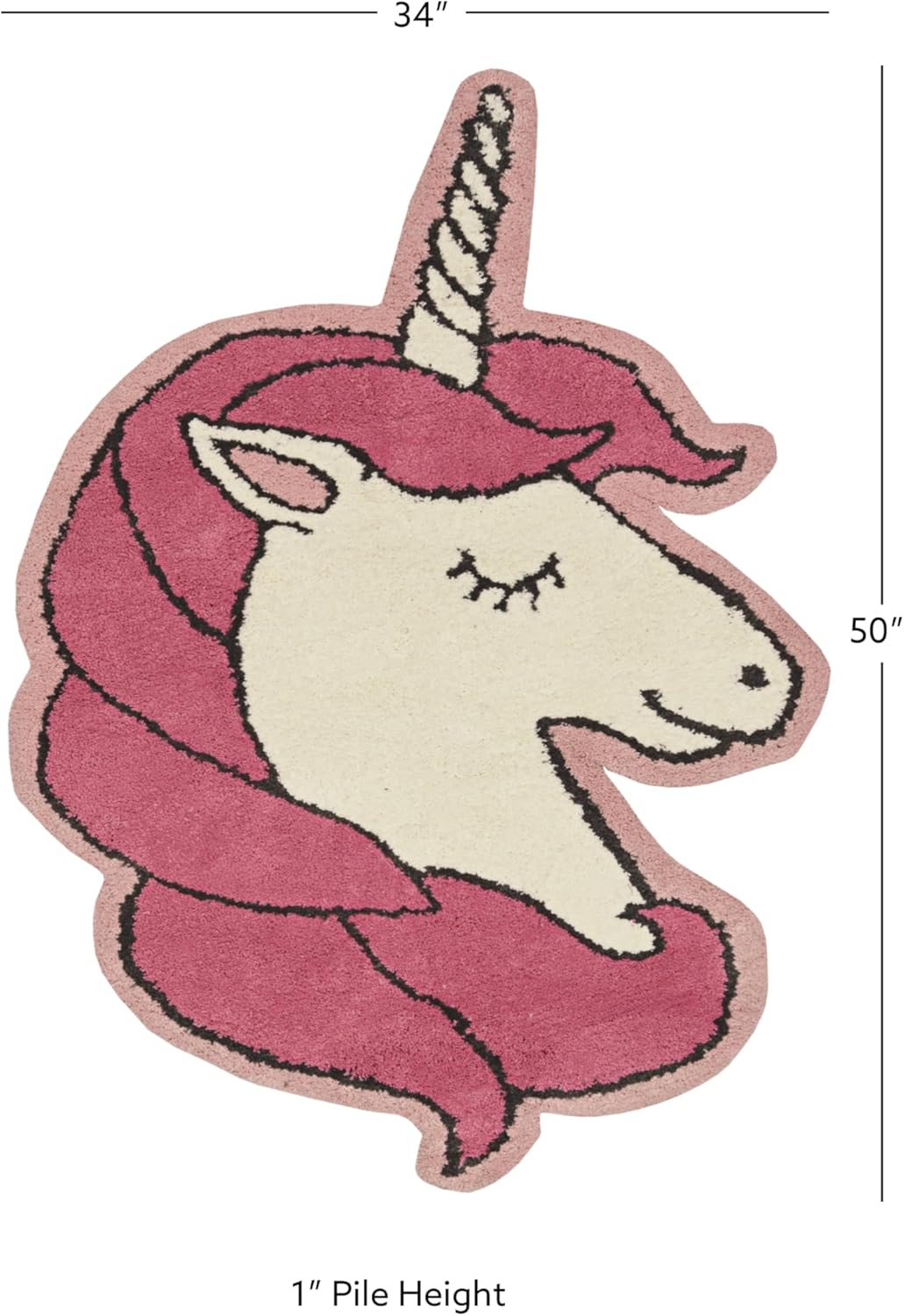 LINON Alfombra decorativa con forma de unicornio rosa y blanco de 3 x 5 pies