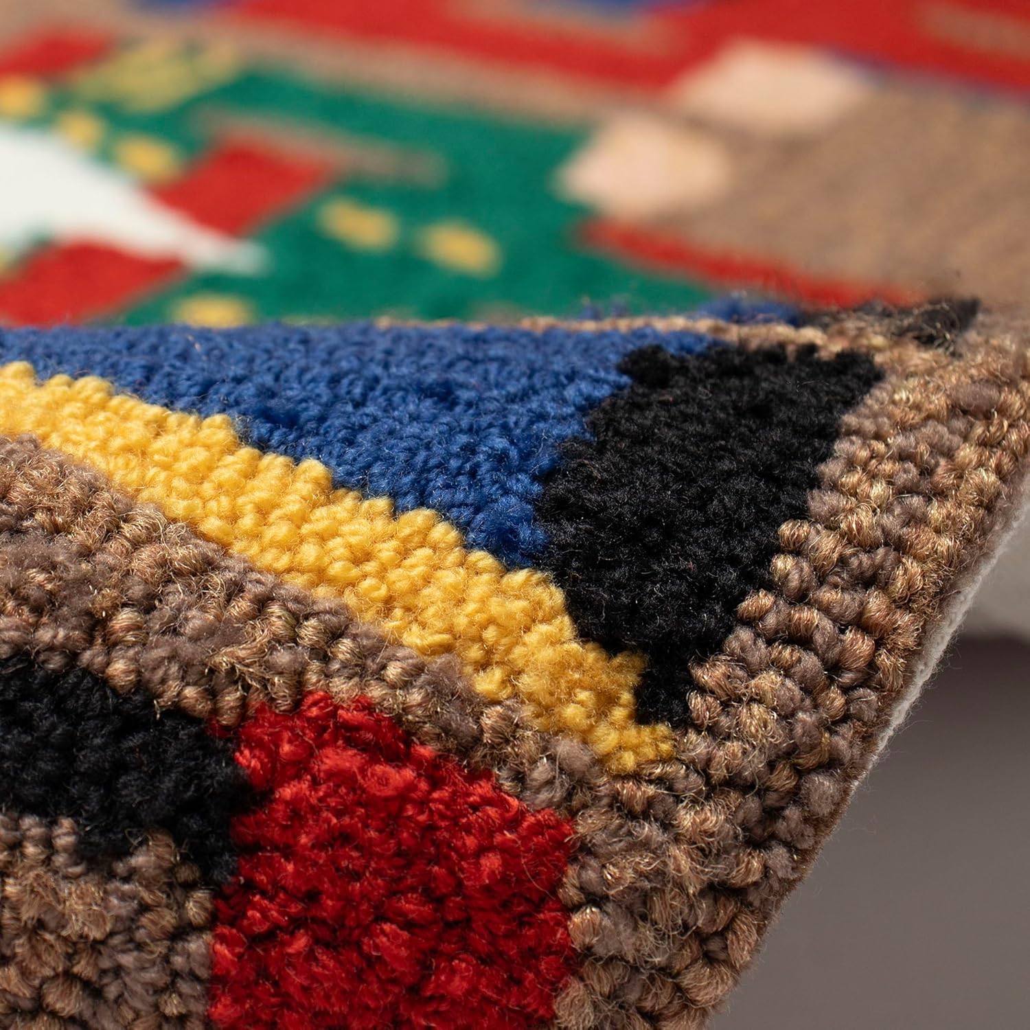 FÁCIL DE LIMPIAR: Simplemente aspira regularmente y esponja manchas para limpiar. Limitar la exposición a la lluvia, la humedad y el sol directo prolonga la vida útil de la alfombra aún más. Nota: no utilice cepillo batidor. Si aparecen extremos largos, no tire. Esta es una ocurrencia normal en alfombras con mechones a mano y se remedia fácilmente con tijeras para recortar la sección germinada para que quede uniforme con el resto de la alfombra.