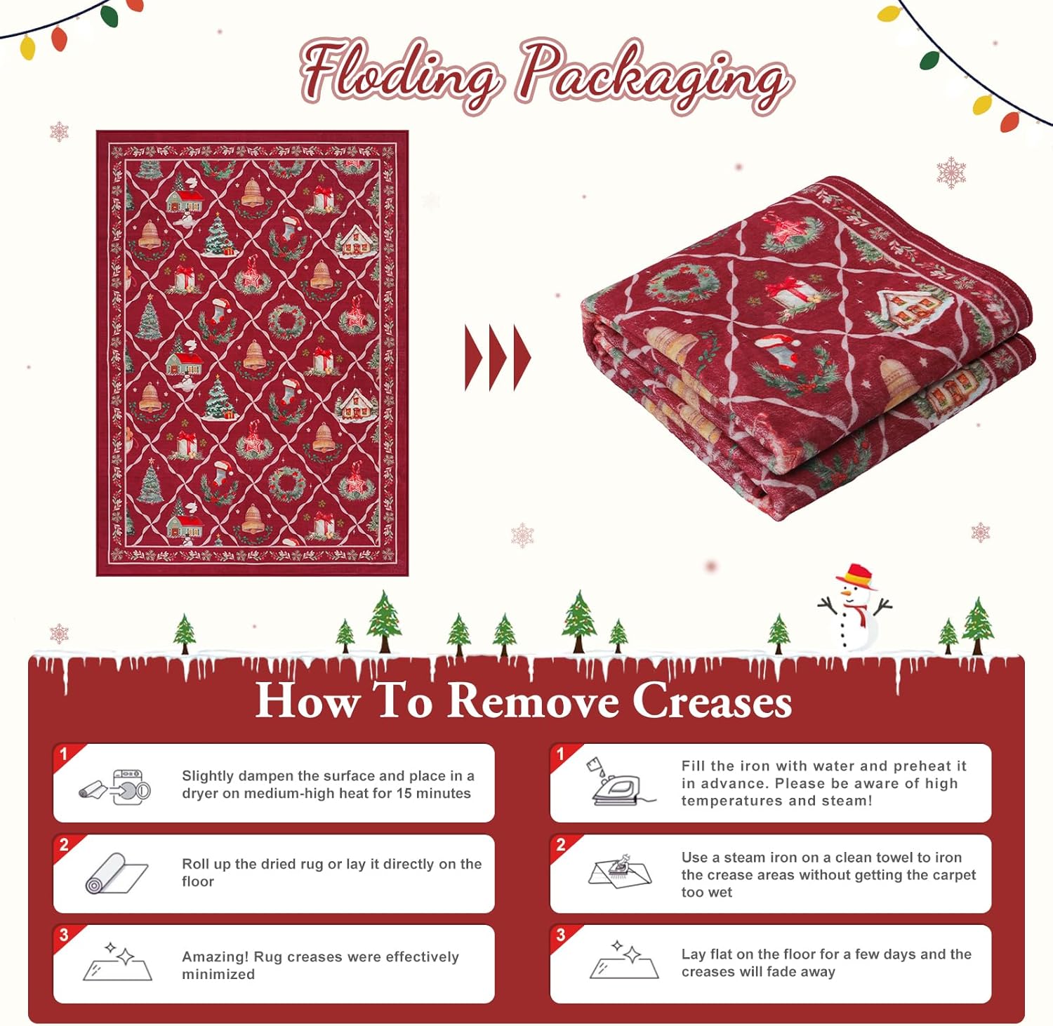 Múltiples ocasiones: ya sea que quieras añadir calidez a tu sala de estar, crear un ambiente acogedor en tu dormitorio o incluso mejorar la belleza del comedor, esta alfombra de Navidad es la elección perfecta.