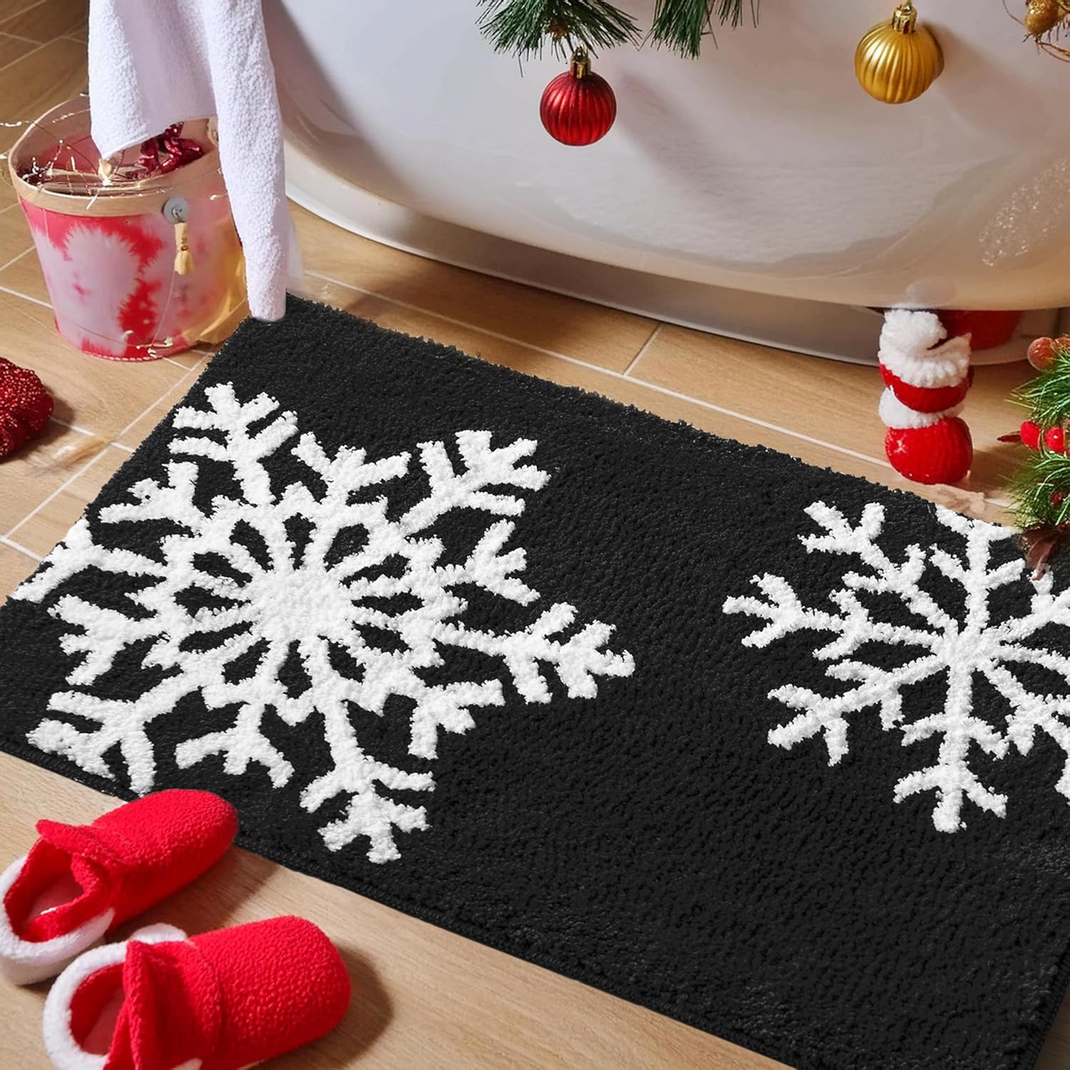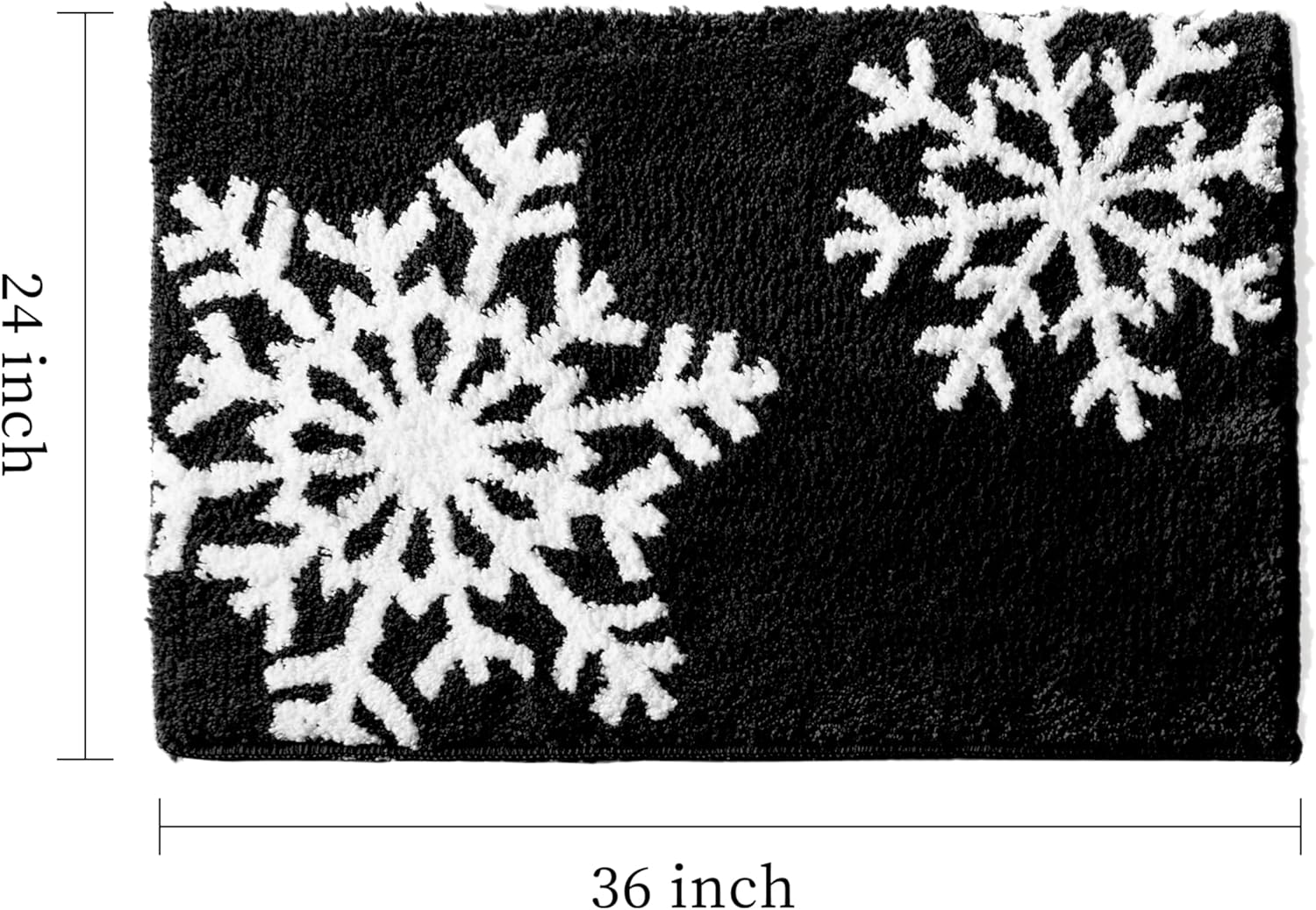 Lujoso tapete de baño de invierno con copos de nieve blanco y negro, 24 x 36 pulgadas, tapete de baño de microfibra extra suave y absorbente, parte trasera de TPR antideslizante, alfombra de