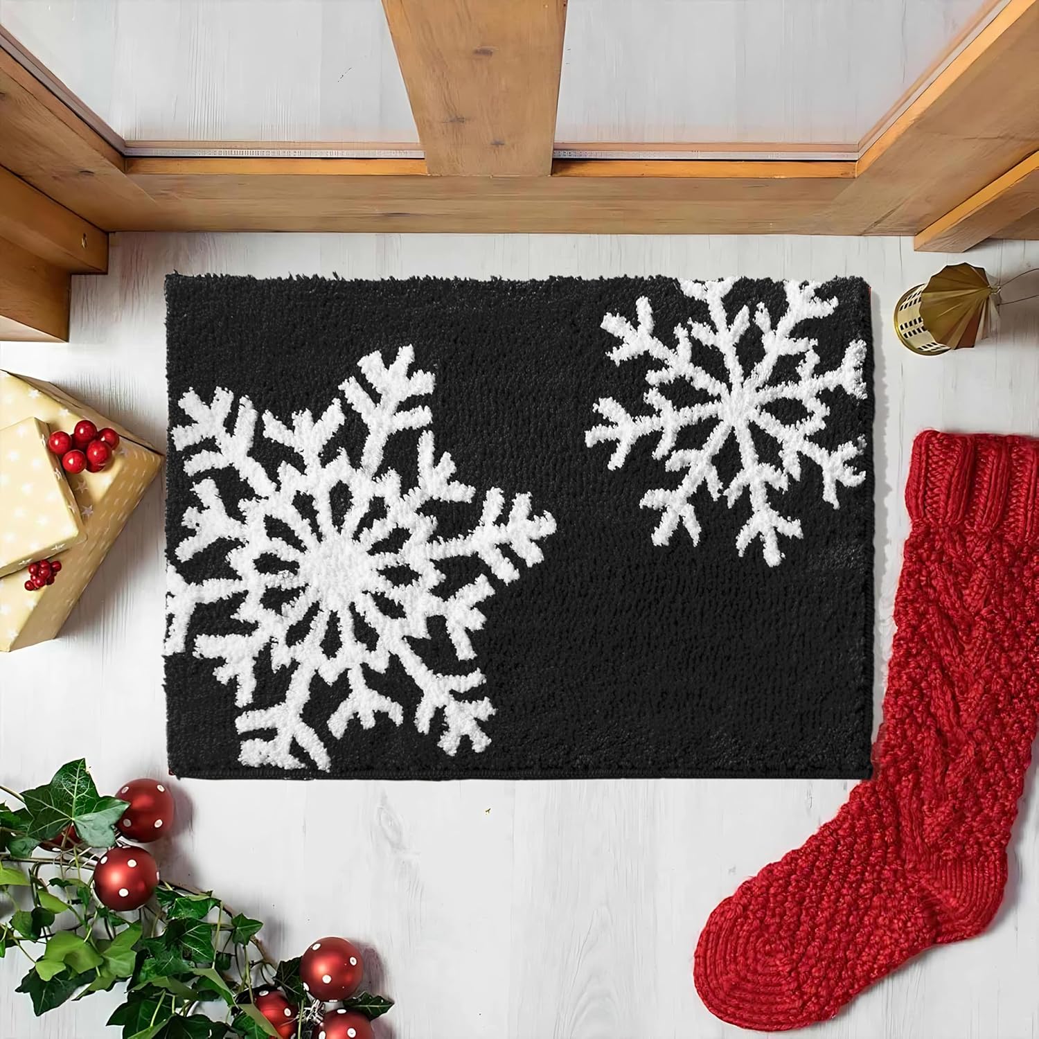 【Encanto festivo de copo de nieve】: abraza el espíritu navideño con esta alfombra de baño con temática de copo de nieve.
